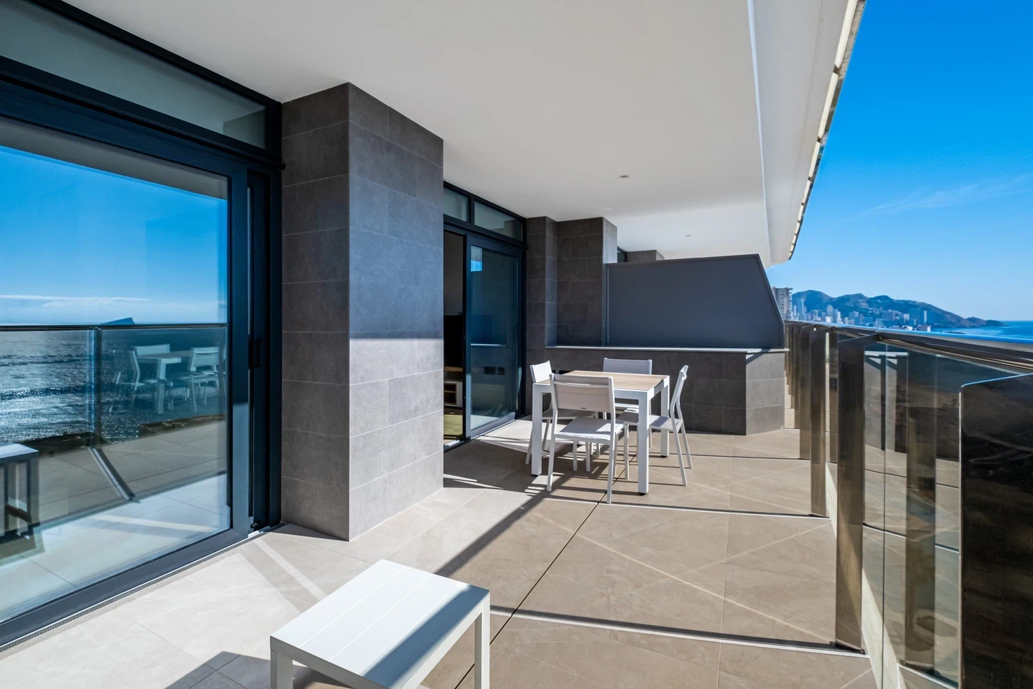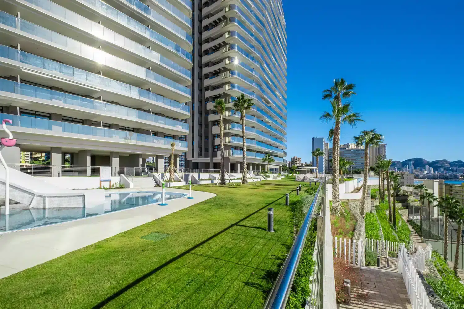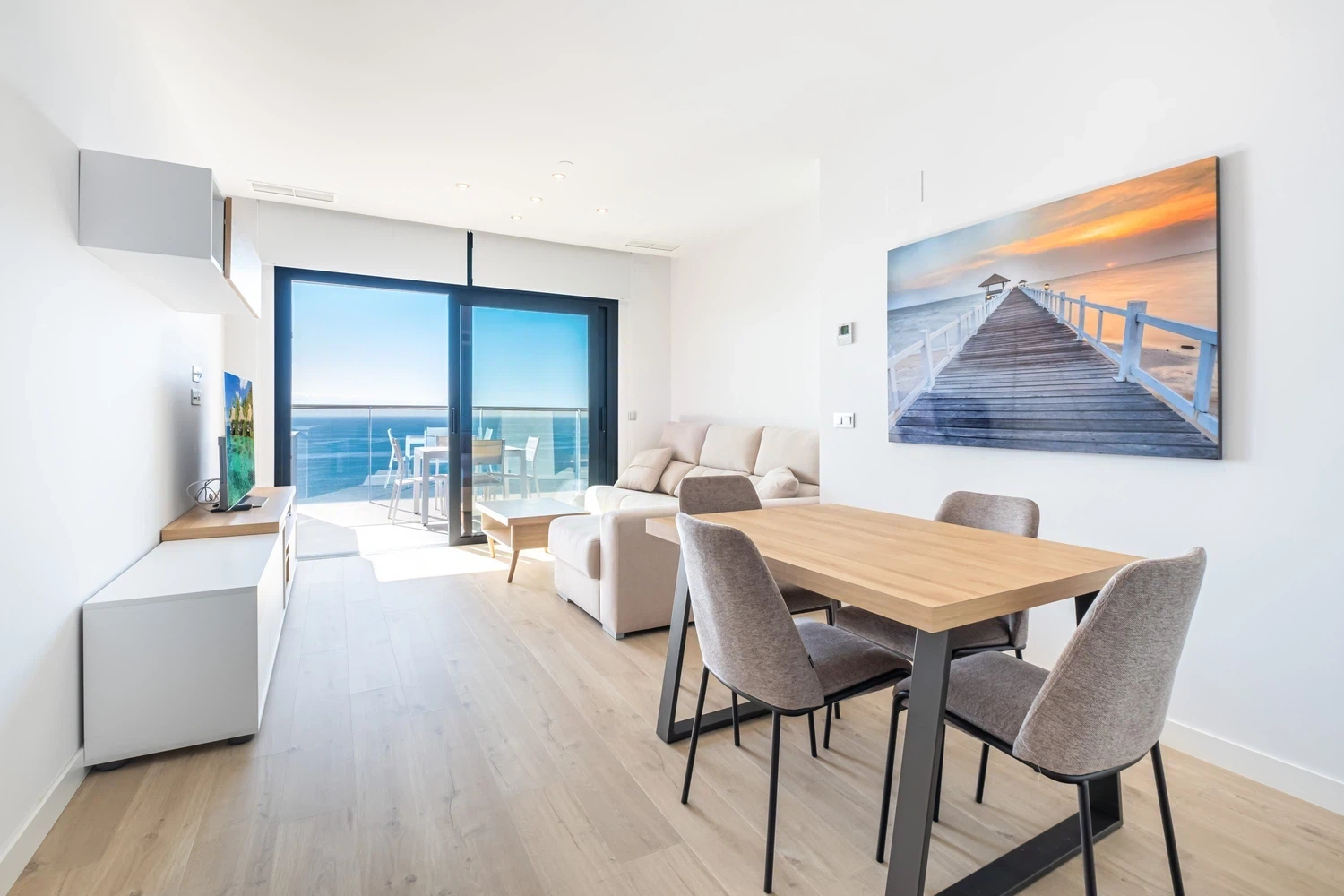 Apartamento ubicado en el complejo de lujo Sunset Cliffs tipo Resort, en la Playa de Poniente, Benidorm, con acceso directo a la misma desde el edificio. Posee 2 dormitorios y dos cuartos de baño con ducha, (principal en suite) y capacidad para 4 personas.