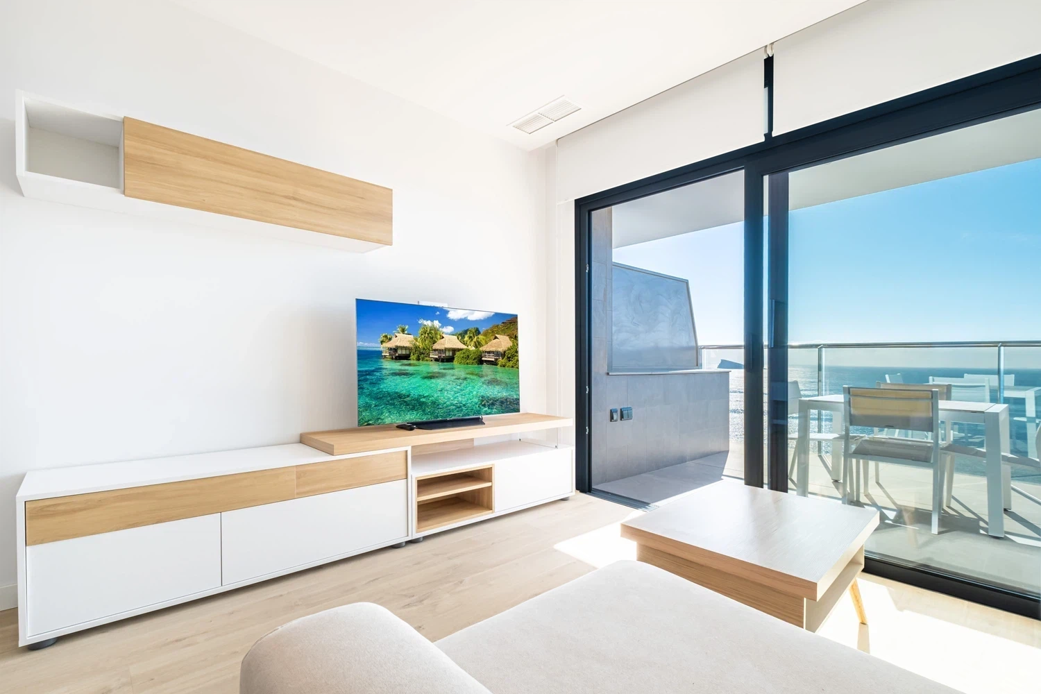 Dispone de ascensor (uno exterior con acceso a la playa), acceso internet (wifi) de alta velocidad por fibra, aire acondicionado en todo el alojamiento, calefacción bomba de calor, piscina comunitaria+infantil, piscina climatizada comunitaria, garaje privado en mismo edificio, 2 Televisores Smart T.V, plancha, secador de pelo.