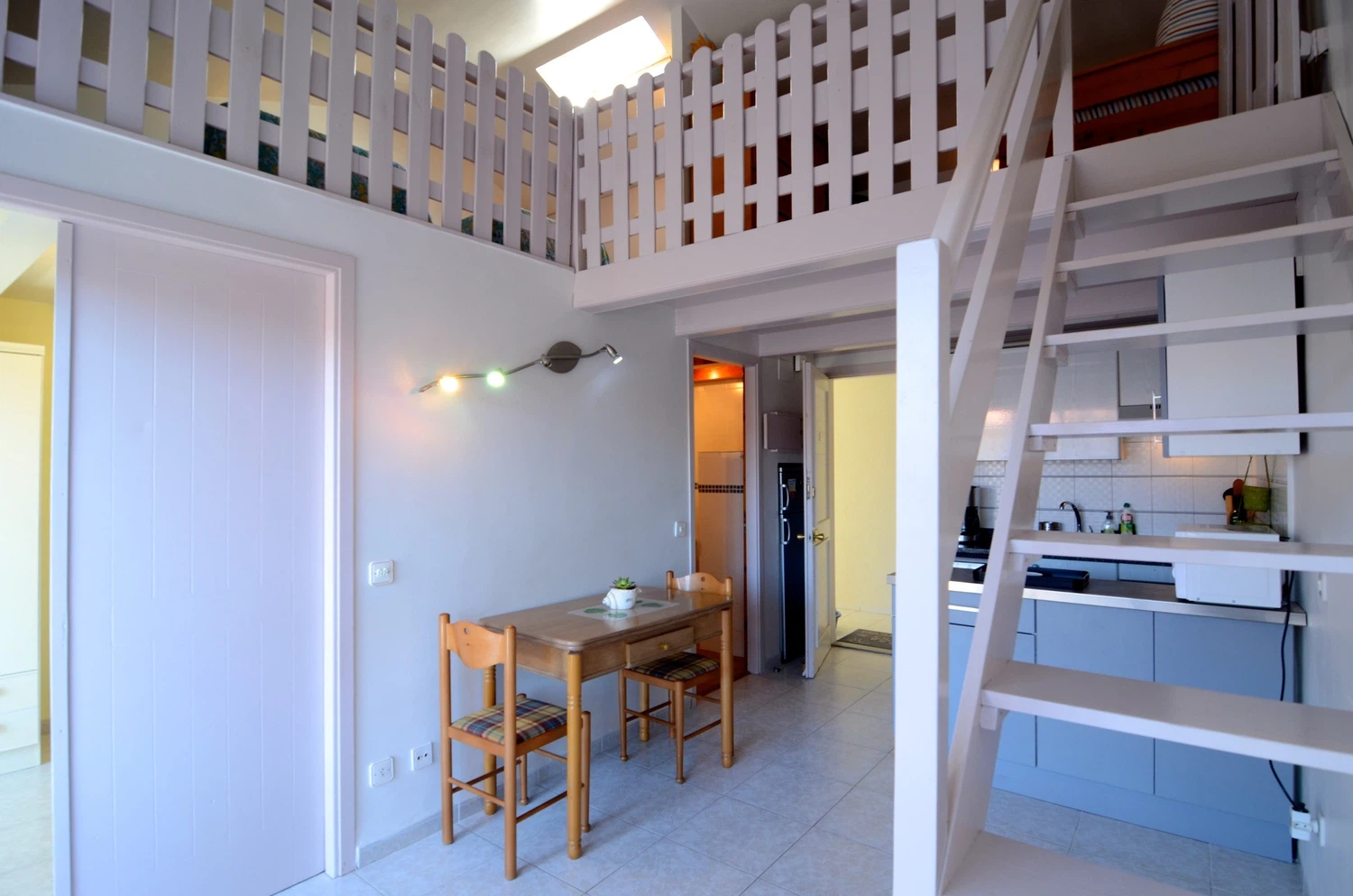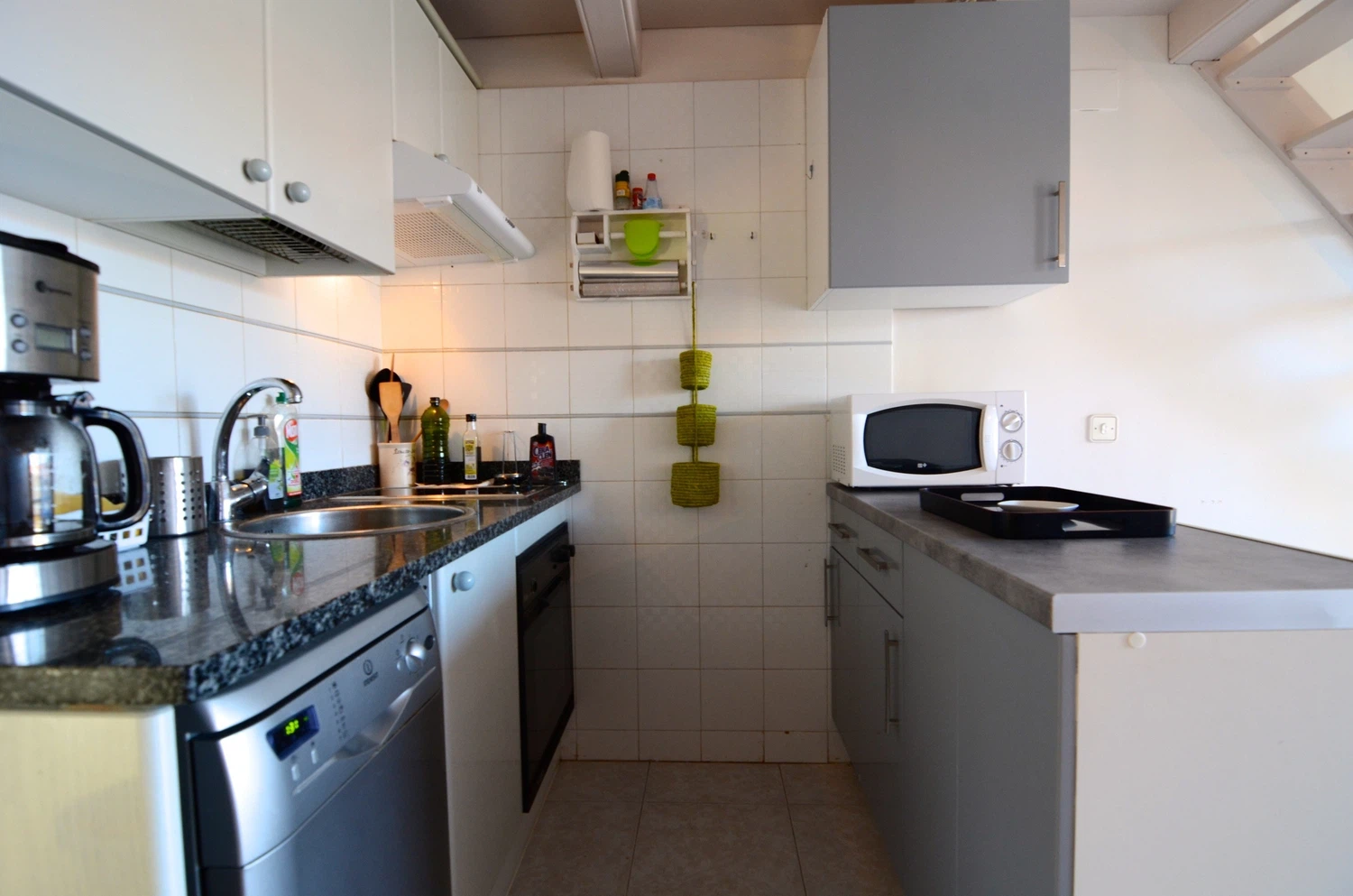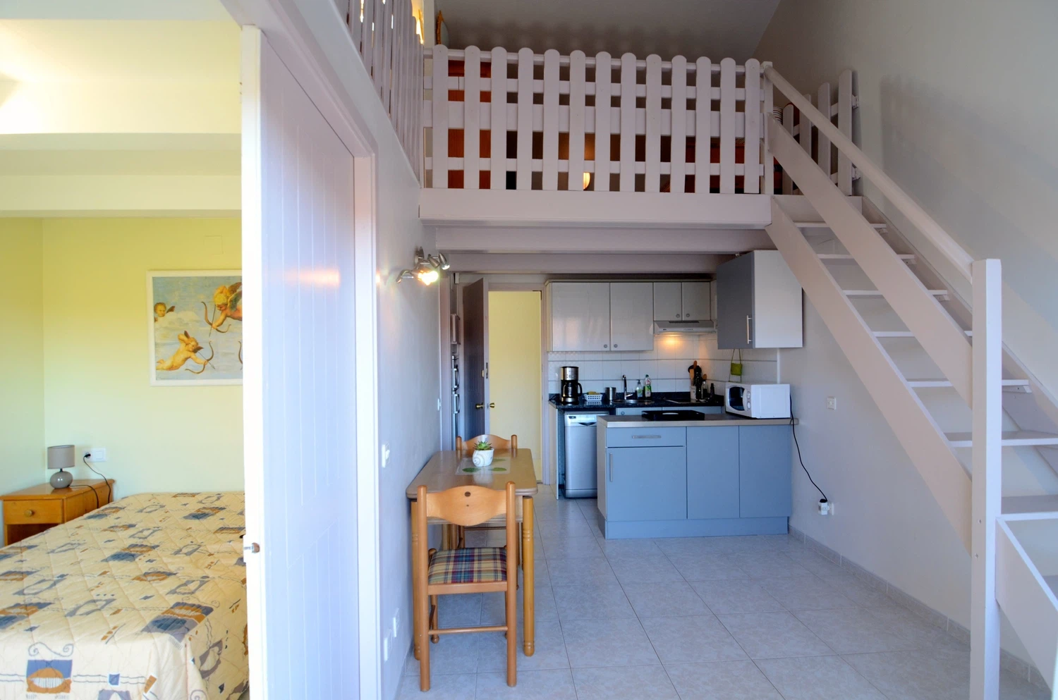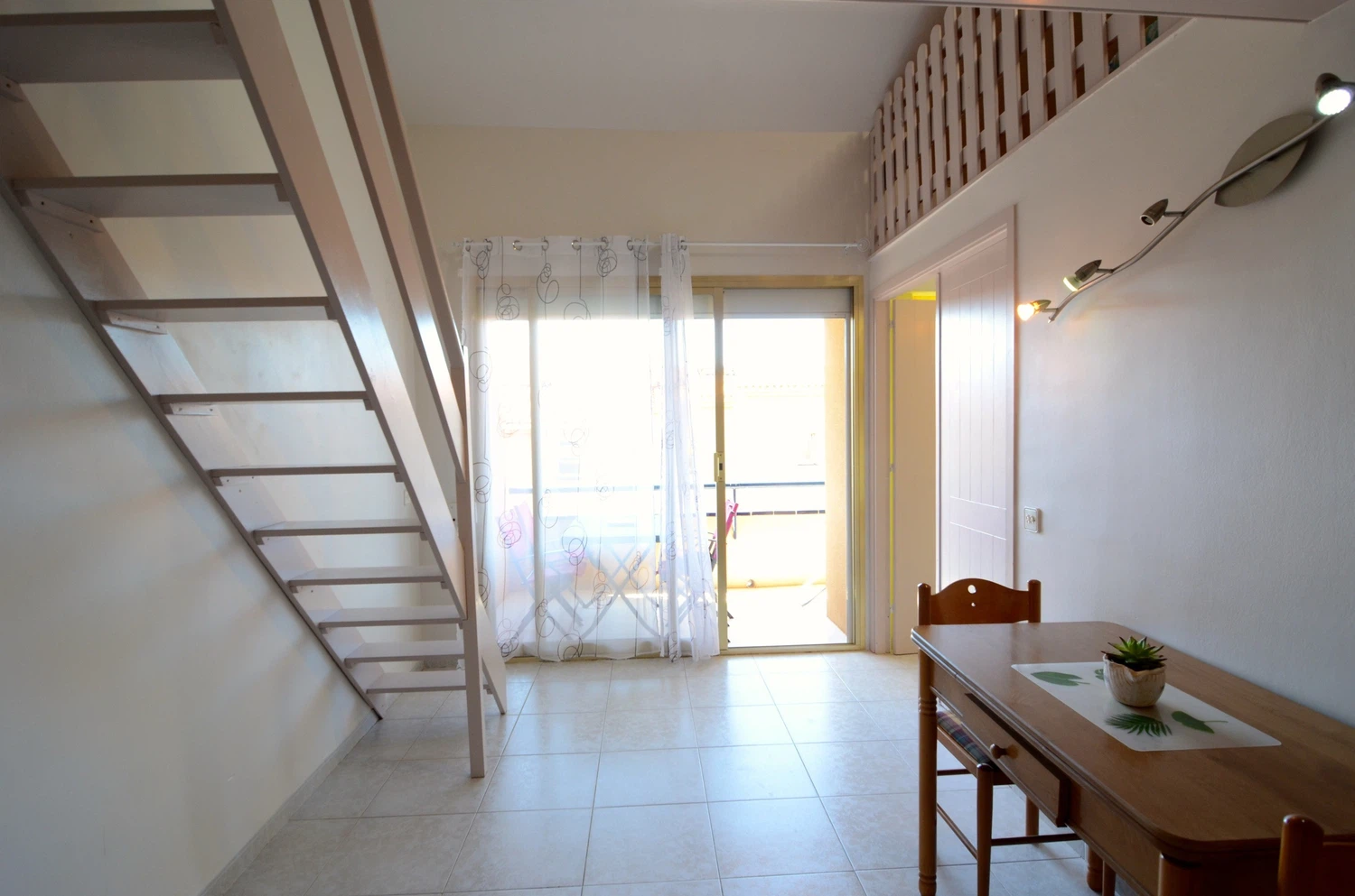 Este acogedor apartamento se distribuye en dos niveles para ofrecerte todo el espacio y comodidad que necesitas. En la planta baja, encontrarás una moderna cocina abierta, un luminoso salón comedor y una relajante terraza donde podrás disfrutar del clima mediterráneo. Además, cuenta con una acogedora habitación de matrimonio y un baño completo.