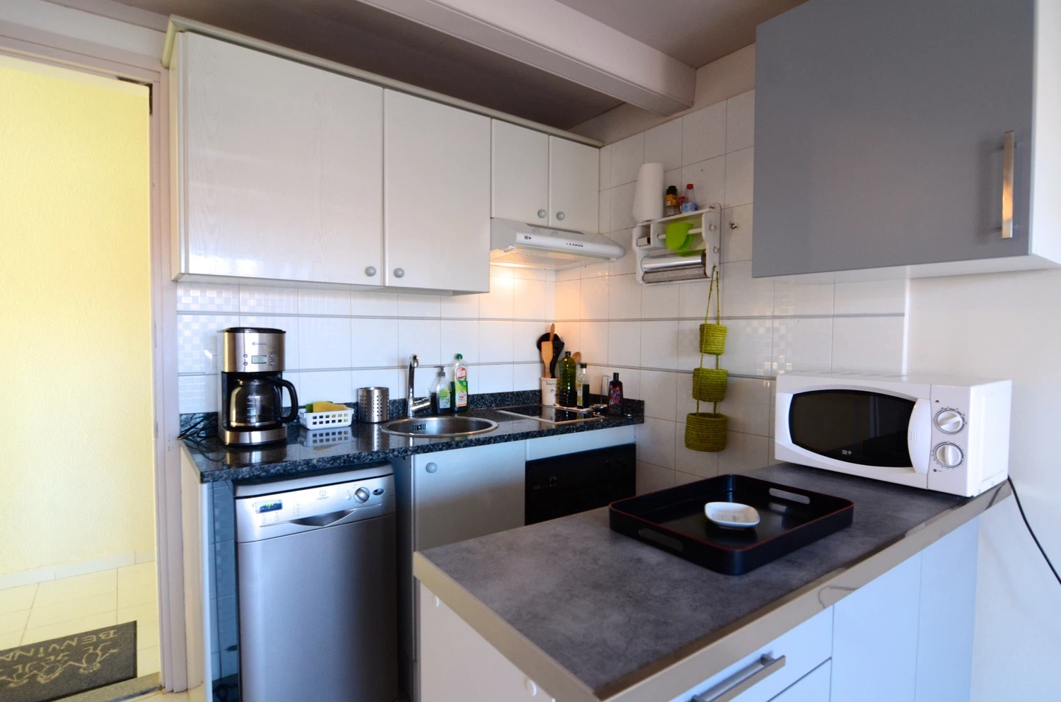 La residencia Tamarindos ofrece una encantadora zona común con jardín exuberante y una refrescante piscina, ideal para refrescarte y disfrutar del sol. Aunque el apartamento no tiene vistas directas a la piscina, su ubicación privilegiada a pocos metros de la playa y del espacio natural de la Platera te permitirá disfrutar al máximo de la belleza del entorno.