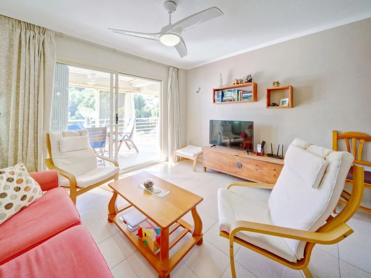 "Zeus", apartamento de 3 estancias 70 m2. Luminoso, con mobiliario funcional y confortable: salón-comedor con 1 sofá-cama doble, TV digital, aire acondicionado, ventilador y bomba de calor, caliente. Salida al balcón. 1 dorm. con 1 cama de matrimonio (135 cm, 190 cm de longitud), ventilador. 1 dorm. con 2 camas (90 cm, 190 cm de longitud), ventilador. Cocina (horno, 3 placas de vitrocerámica, microondas, cafetera eléctrica). Baño/WC. Balcón. Muebles de terraza, porche. Lateral al mar. El alojamiento dispone de: lavadora, plancha, trona, cuna hasta 2 años, secador de pelo. Internet (Wifi, gratis). Plaza de aparcamiento junto a la casa. Adecuado para familias. AT-464509-A