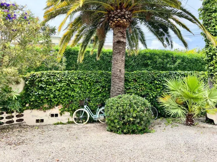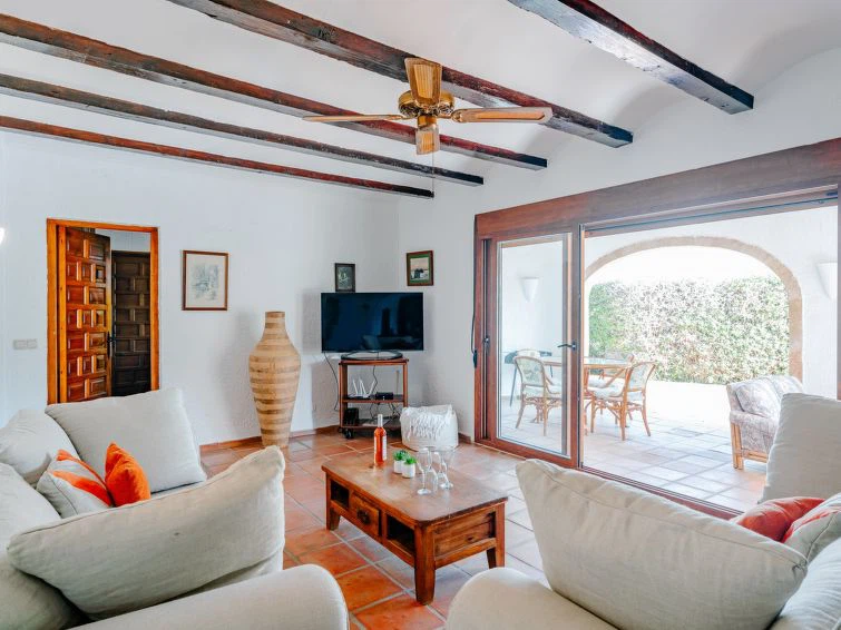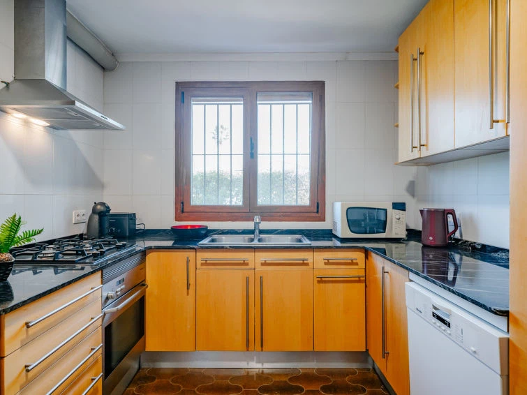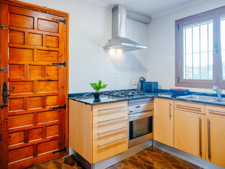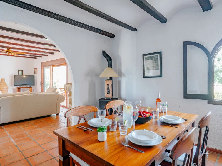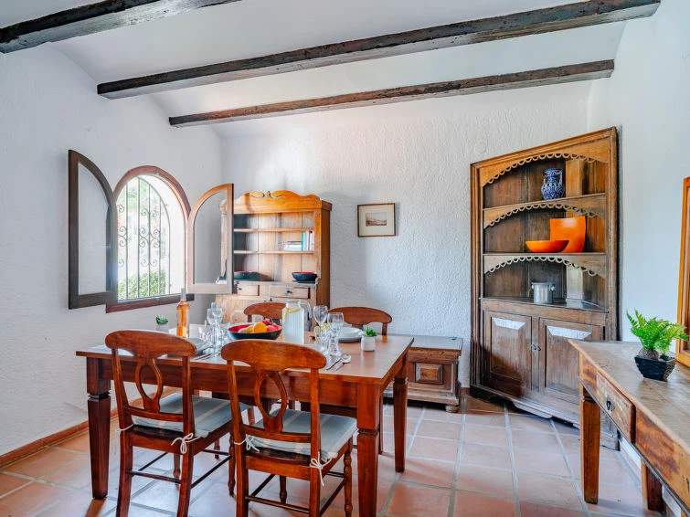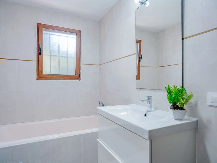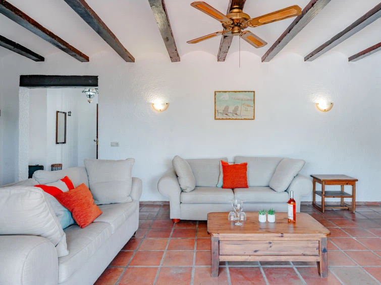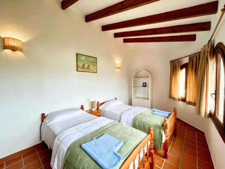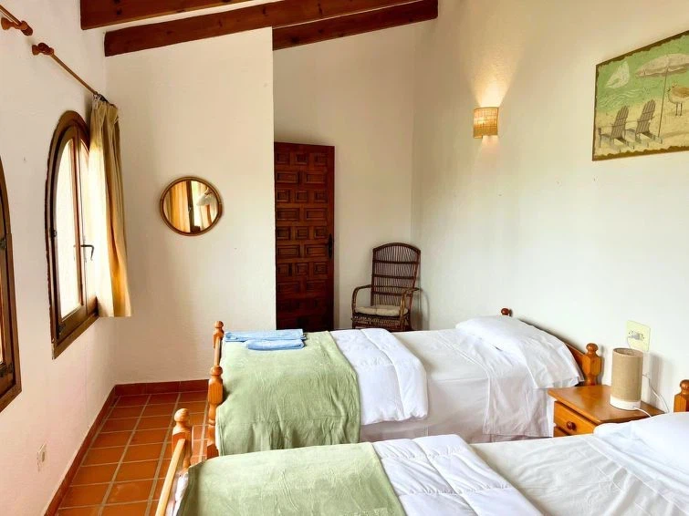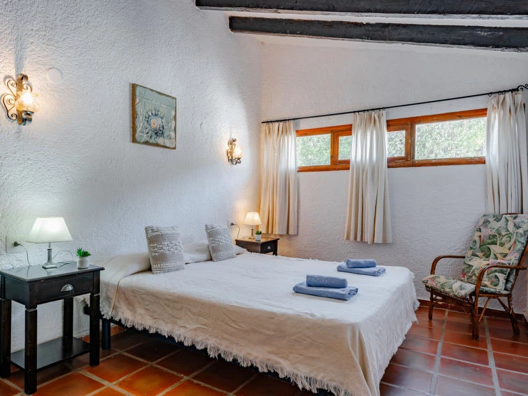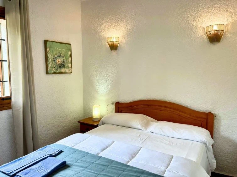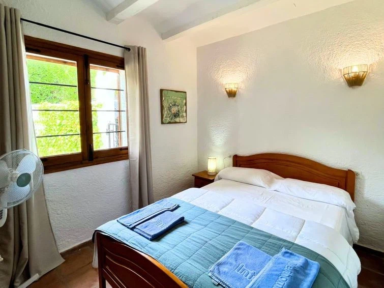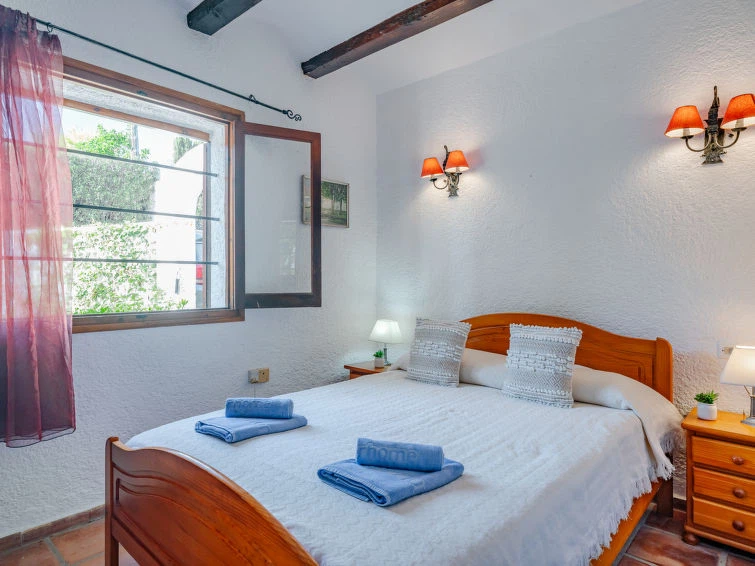 "Casa Bea", casa 4 estancias 120 m2 en 2 plantas. Espacioso y luminoso, con mobiliario funcional: salón-comedor con TV digital y ventilador. Salida a la terraza-jardín, a la piscina. 1 dorm. con 1 cama de matrimonio (140 cm, 200 cm de longitud), ventilador. 1 dorm. con 2 camas (90 cm, 200 cm de longitud), ventilador. Cocina (4 fogones, horno, lavavajillas, tostadora, microondas, congelador, cafetera eléctrica). Baño/WC, ducha/WC. Ningún tipo de calefacción. Planta superior: (escalera de caracol) 1 dorm. con 2 camas (90 cm, 200 cm de longitud). Terraza grande. Muebles de terraza, barbacoa, tumbonas (6). El alojamiento dispone de: lavadora, plancha, secador de pelo. Internet (Wifi, gratis). Plaza de aparcamiento. VT-487399-A