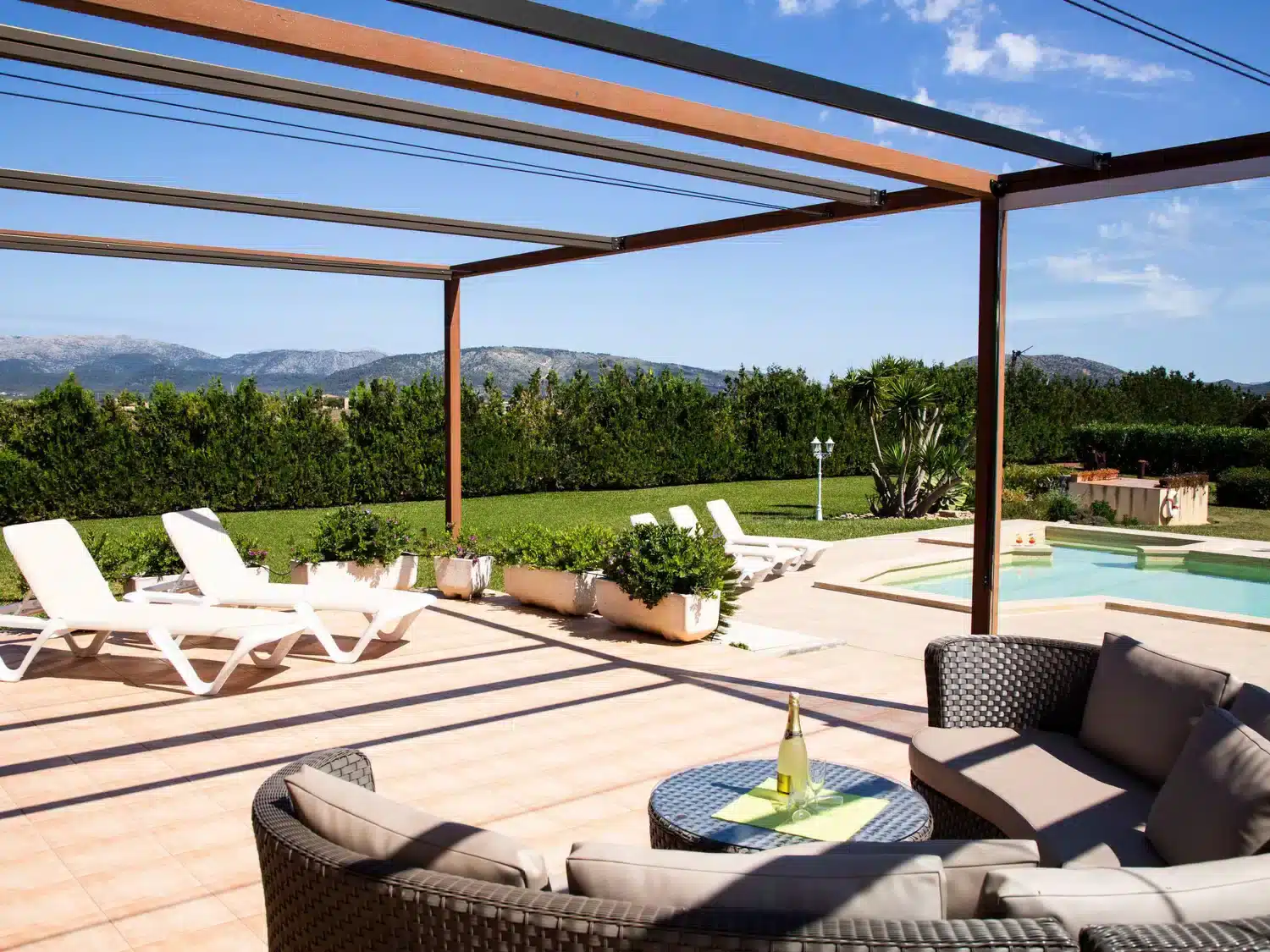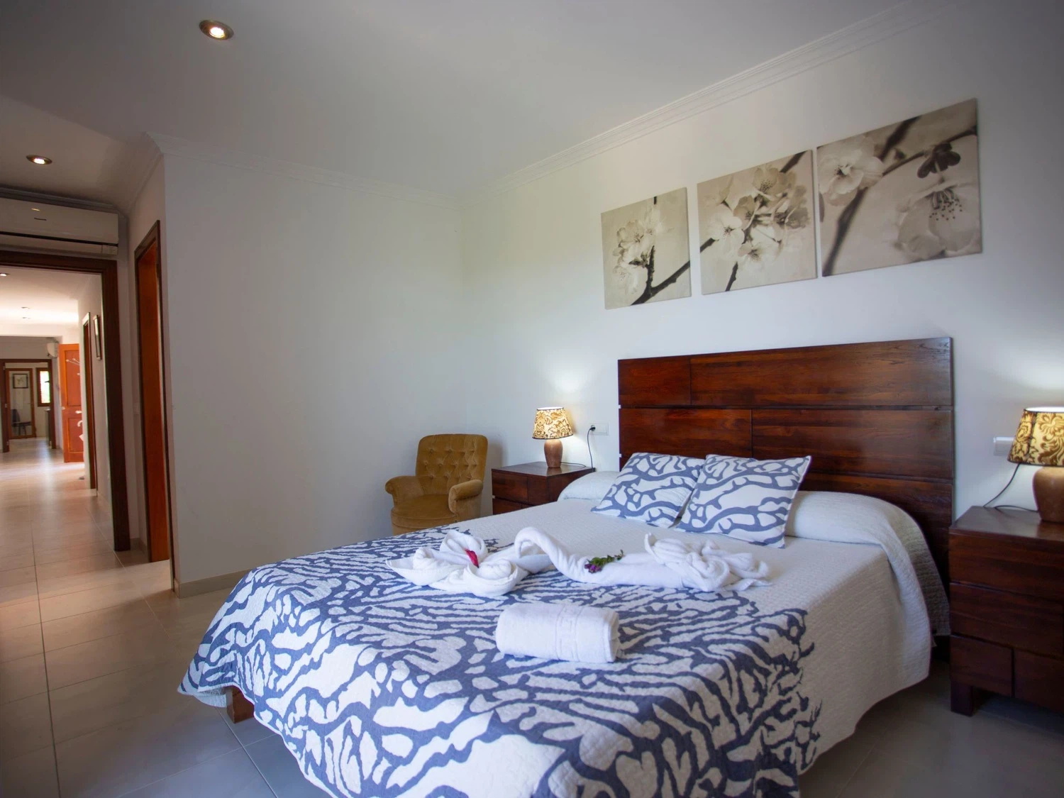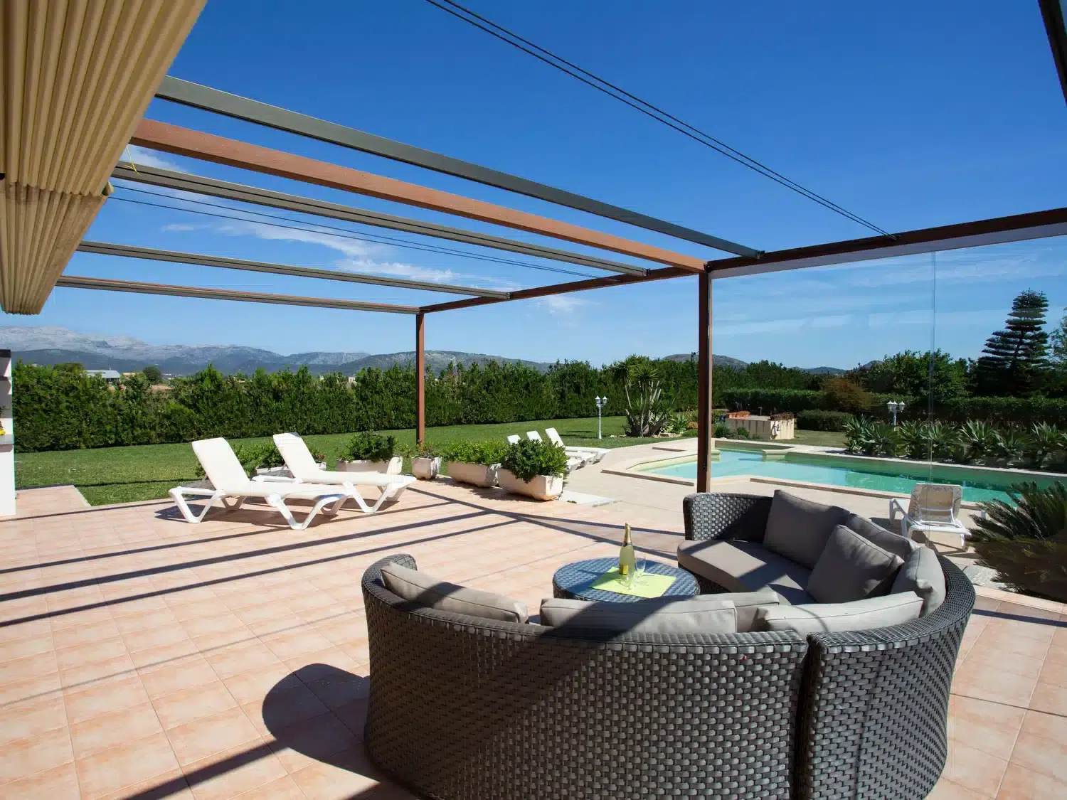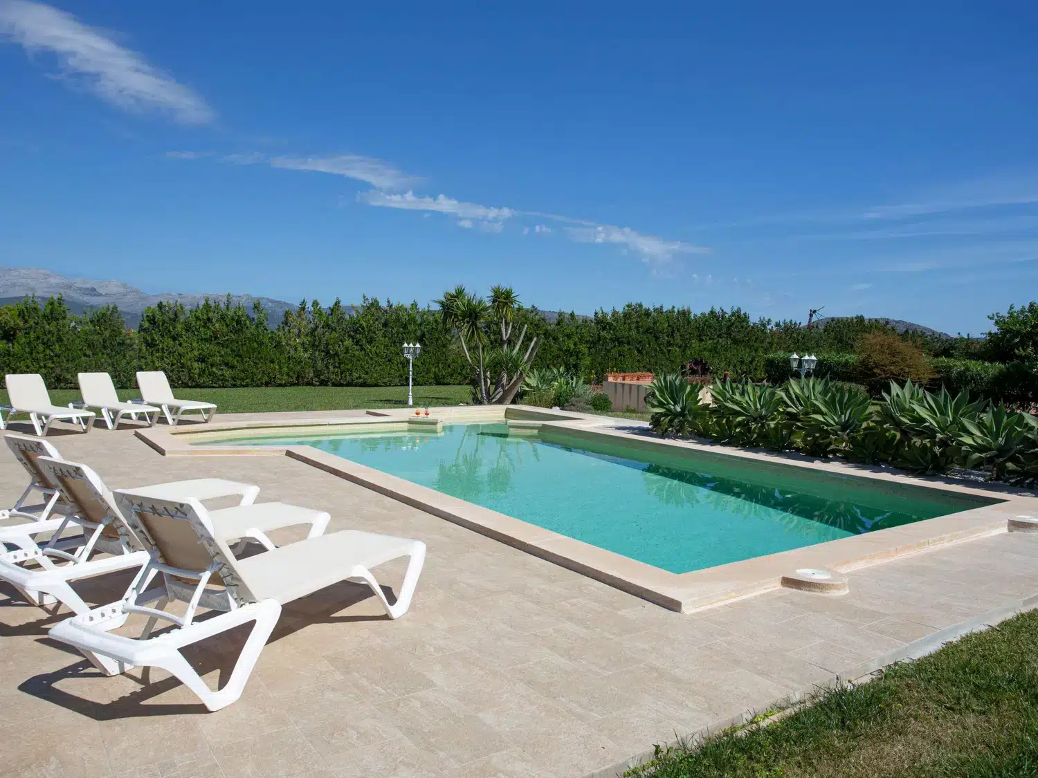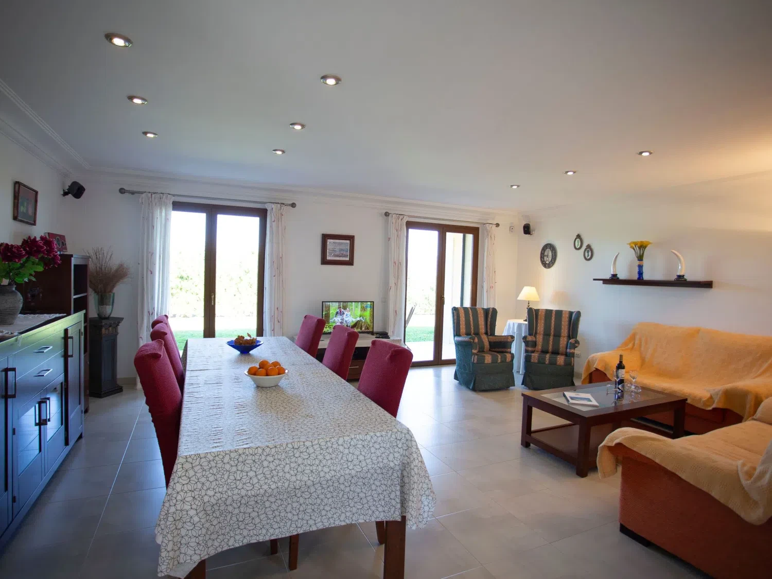 Descubra el encanto y el confort combinados en nuestra acogedora casa de vacaciones en Muro, Mallorca, diseñada especialmente para acoger hasta 9 personas. Esta residencia es el refugio ideal para familias o grupos de amigos que buscan una estancia inolvidable en una de las zonas más bellas de Mallorca. Con todas las comodidades necesarias para garantizar su confort, nuestra casa promete ser el punto de partida perfecto para explorar los alrededores o simplemente disfrutar de momentos de pura relajación. El interior de la casa está equipado pensando en su máxima comodidad, contando con un total de 5 dormitorios y 3 baños, asegurando así un espacio privado y confortable para cada uno de los huéspedes. La presencia de aire acondicionado en todas las estancias garantiza un ambiente fresco y agradable, incluso en los días más calurosos del verano mallorquín. Los baños están equipados con duchas, una tiene incluida una moderna ducha de lluvia, ideal para relajarse después de un día de aventura. El exterior de la casa no deja nada que desear. Una amplia terraza cubierta invita a los huéspedes a disfrutar de comidas al aire libre o sencillamente relajarse y disfrutar del entorno. El jardín, de uso exclusivo para los huéspedes, ofrece un espacio privado para tomar el sol, leer un libro o jugar con los niños, creando recuerdos imborrables en un entorno sereno y encantador. Situada en el entorno de Muro, nuestra casa de vacaciones ofrece el equilibrio perfecto entre la tranquilidad del campo mallorquín y la proximidad a algunas de las mejores playas y atracciones de la isla. La zona es ideal para quienes deseen explorar los pintorescos pueblos, la rica cultura y las impresionantes costas de Mallorca, ofreciendo una experiencia vacacional única y completa. Datos básicos - Mascotas permitidas: ninguno - Tipo de alojamiento: Casa de vacaciones - se encuentra en: nada aplicable - tipo de edificio: casa individual - Número de plantas en el edificio por encima de la planta baja: 1 - superficie del terreno: 14800 m² - año de construcción: 2011 - casa independiente - Número de dormitorios: 5 - Número de baños: 3 Características principales - Wi-Fi - aire acondicionado: en todas las estancias - calefacción: en todas las estancias - terraza - jardín: de uso exclusivo - totalmente cercado (con muro, valla o seto) - Nº total de estacionamientos privados para turismos: 4 - ㄴ éstos se dividen en plazas con porche: 4 Dormir dormitorio 12 - 2x cama individual dormitorio 15 - 2x cama individual dormitorio 3 - cama doble (de 1,51 m a 1,79 m de ancho) dormitorio 6 - cama doble (de 1,51 m a 1,79 m de ancho) dormitorio 9 - cama doble (de 1,51 m a 1,79 m de ancho) Baño cuarto de baño 3 - ducha - lavabo - servicio (WC) cuarto de baño 6 - ducha - lavabo - servicio (WC) cuarto de baño 9 - ducha de lluvia - 2x lavabo - servicio (WC) - bidé tipo de edificio: casa individual. superficie del terreno: 14800m². año de construcción: 2011.