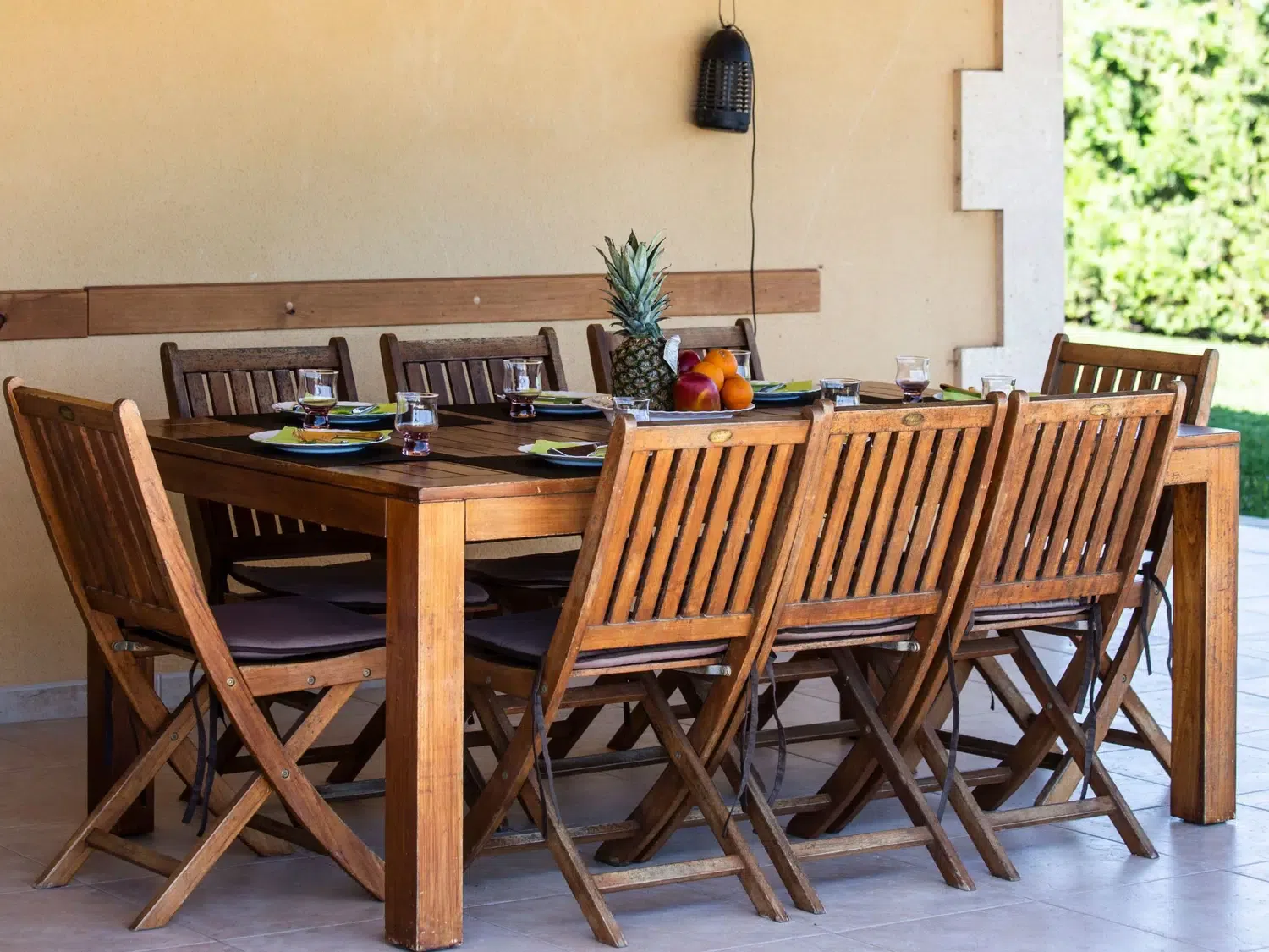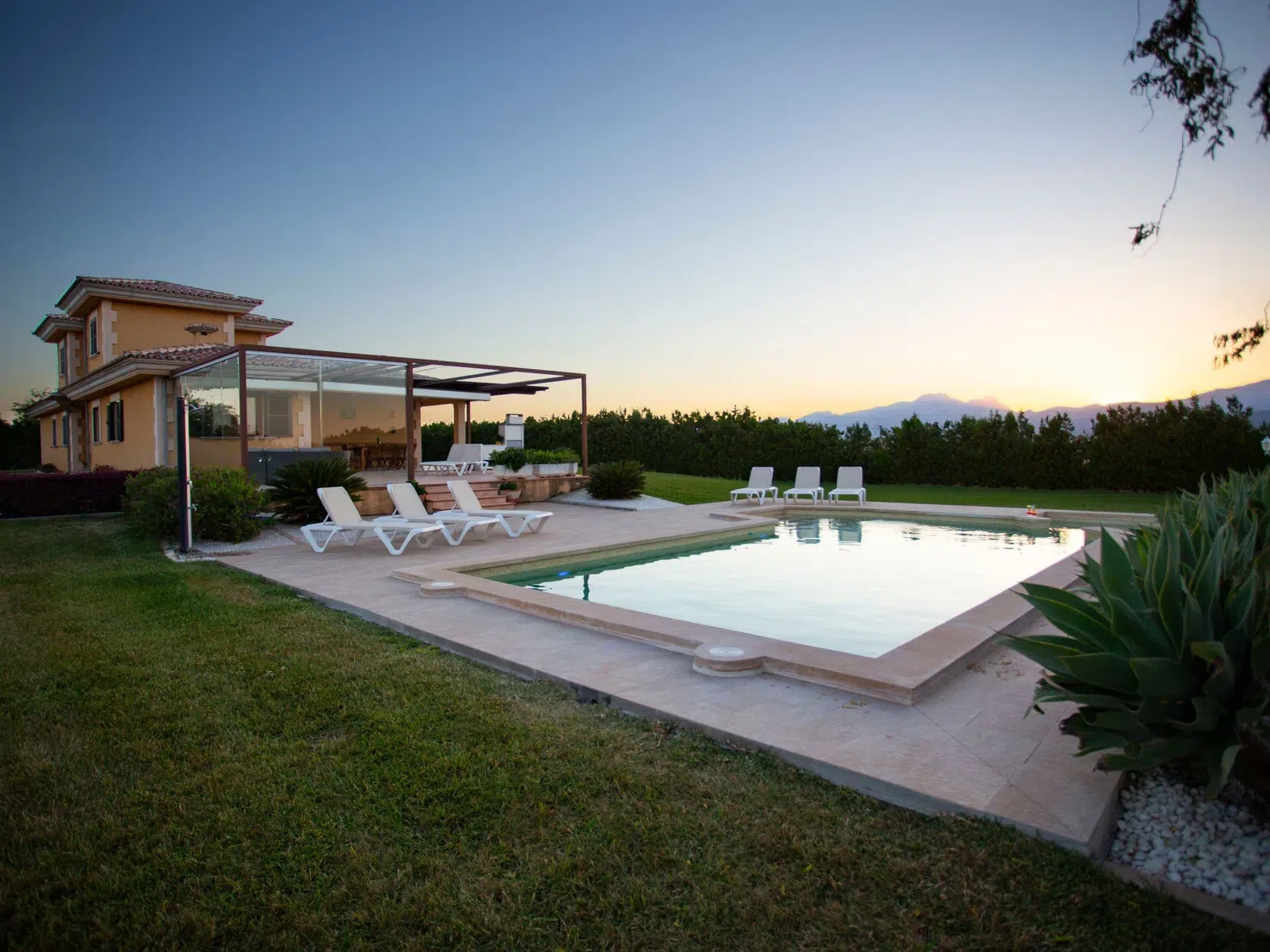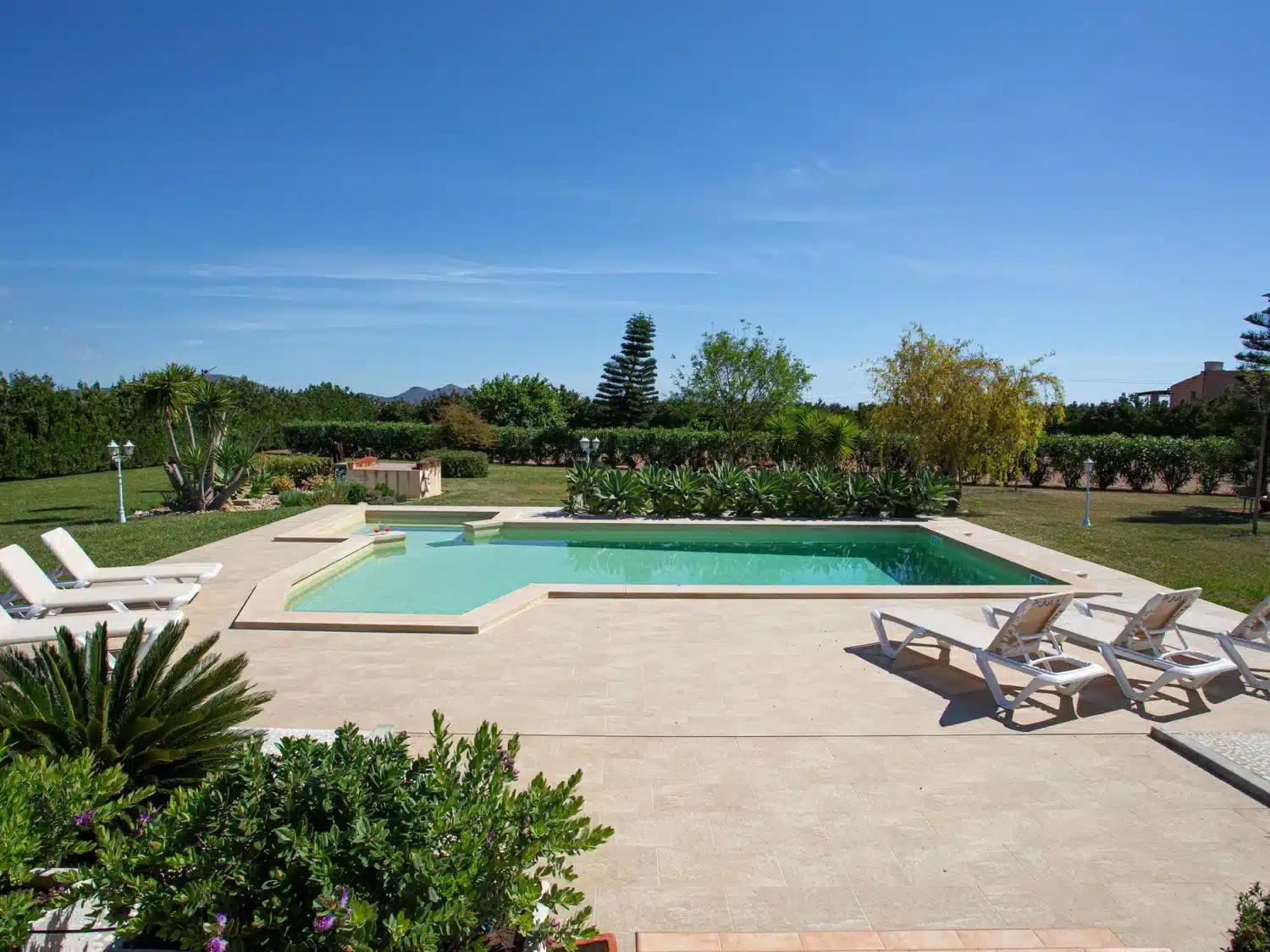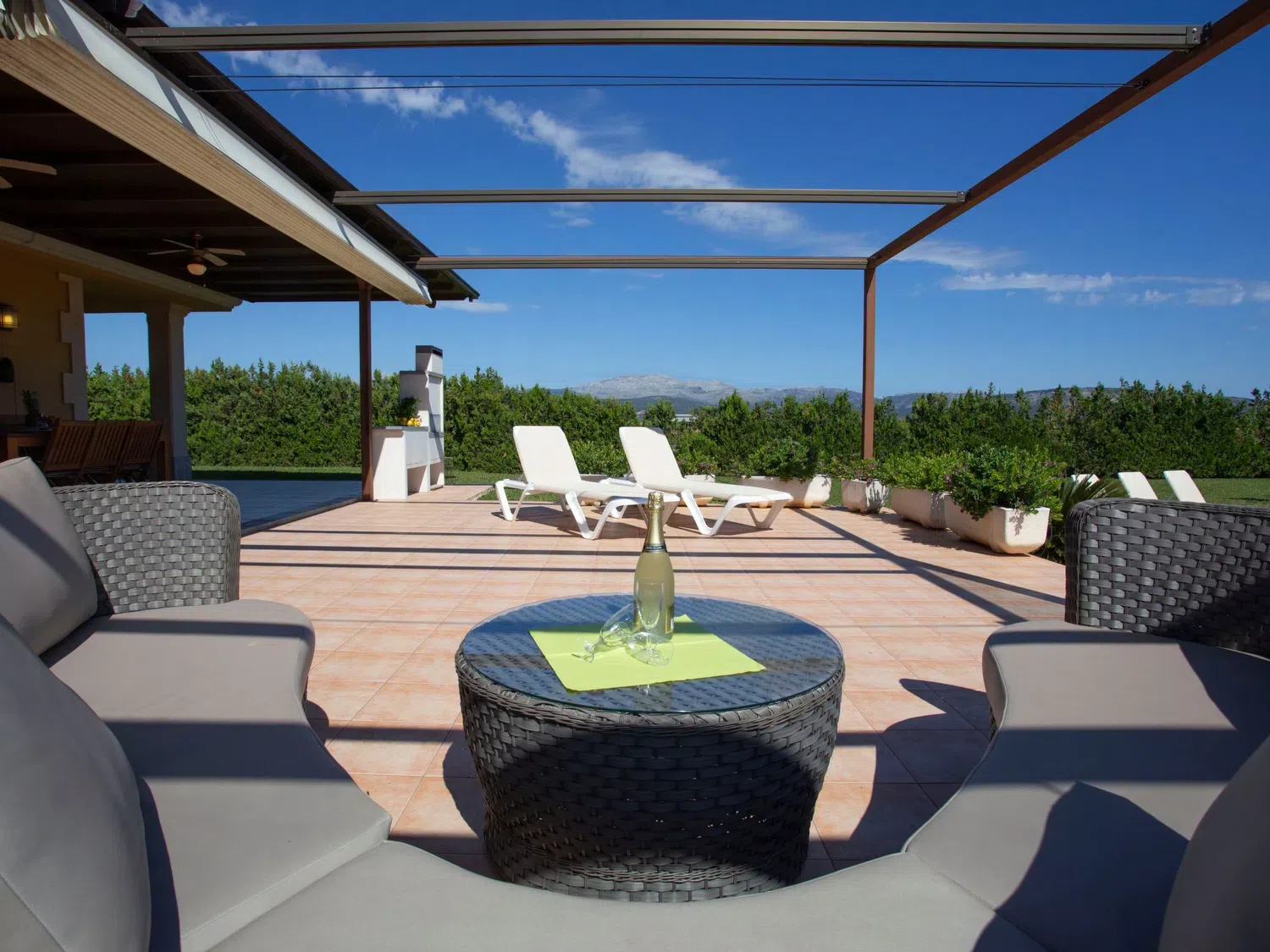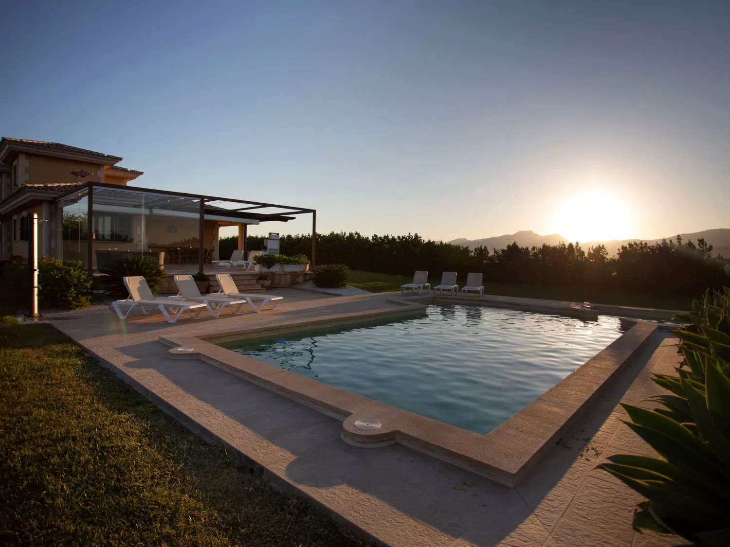Descubra el encanto y el confort combinados en nuestra acogedora casa de vacaciones en Muro, Mallorca, diseñada especialmente para acoger hasta 9 personas. Esta residencia es el refugio ideal para familias o grupos de amigos que buscan una estancia inolvidable en una de las zonas más bellas de Mallorca. Con todas las comodidades necesarias para garantizar su confort, nuestra casa promete ser el punto de partida perfecto para explorar los alrededores o simplemente disfrutar de momentos de pura relajación. El interior de la casa está equipado pensando en su máxima comodidad, contando con un total de 5 dormitorios y 3 baños, asegurando así un espacio privado y confortable para cada uno de los huéspedes. La presencia de aire acondicionado en todas las estancias garantiza un ambiente fresco y agradable, incluso en los días más calurosos del verano mallorquín. Los baños están equipados con duchas, una tiene incluida una moderna ducha de lluvia, ideal para relajarse después de un día de aventura. El exterior de la casa no deja nada que desear. Una amplia terraza cubierta invita a los huéspedes a disfrutar de comidas al aire libre o sencillamente relajarse y disfrutar del entorno. El jardín, de uso exclusivo para los huéspedes, ofrece un espacio privado para tomar el sol, leer un libro o jugar con los niños, creando recuerdos imborrables en un entorno sereno y encantador. Situada en el entorno de Muro, nuestra casa de vacaciones ofrece el equilibrio perfecto entre la tranquilidad del campo mallorquín y la proximidad a algunas de las mejores playas y atracciones de la isla. La zona es ideal para quienes deseen explorar los pintorescos pueblos, la rica cultura y las impresionantes costas de Mallorca, ofreciendo una experiencia vacacional única y completa. Datos básicos - Mascotas permitidas: ninguno - Tipo de alojamiento: Casa de vacaciones - se encuentra en: nada aplicable - tipo de edificio: casa individual - Número de plantas en el edificio por encima de la planta baja: 1 - superficie del terreno: 14800 m² - año de construcción: 2011 - casa independiente - Número de dormitorios: 5 - Número de baños: 3 Características principales - Wi-Fi - aire acondicionado: en todas las estancias - calefacción: en todas las estancias - terraza - jardín: de uso exclusivo - totalmente cercado (con muro, valla o seto) - Nº total de estacionamientos privados para turismos: 4 - ㄴ éstos se dividen en plazas con porche: 4 Dormir dormitorio 12 - 2x cama individual dormitorio 15 - 2x cama individual dormitorio 3 - cama doble (de 1,51 m a 1,79 m de ancho) dormitorio 6 - cama doble (de 1,51 m a 1,79 m de ancho) dormitorio 9 - cama doble (de 1,51 m a 1,79 m de ancho) Baño cuarto de baño 3 - ducha - lavabo - servicio (WC) cuarto de baño 6 - ducha - lavabo - servicio (WC) cuarto de baño 9 - ducha de lluvia - 2x lavabo - servicio (WC) - bidé tipo de edificio: casa individual. superficie del terreno: 14800m². año de construcción: 2011.