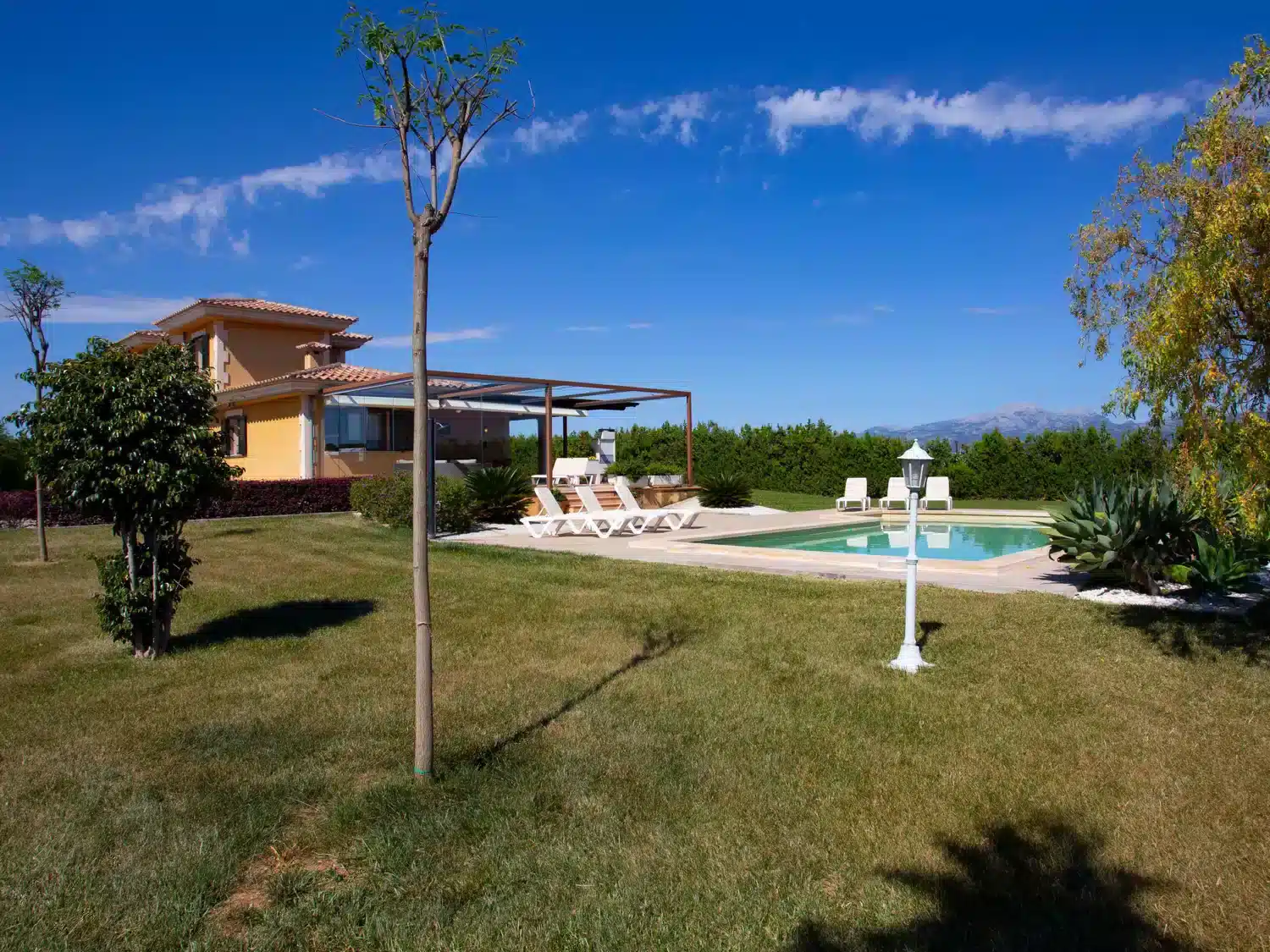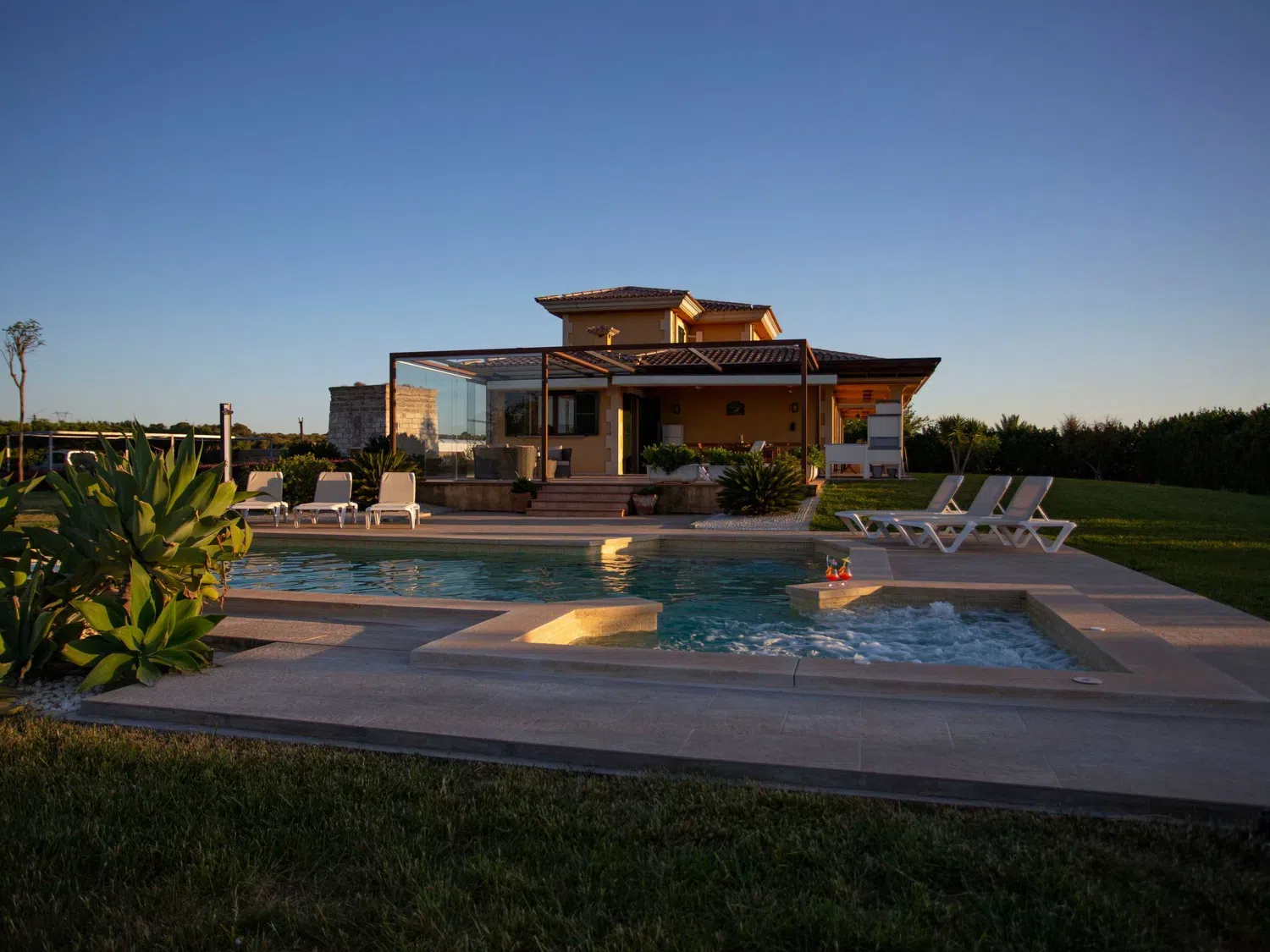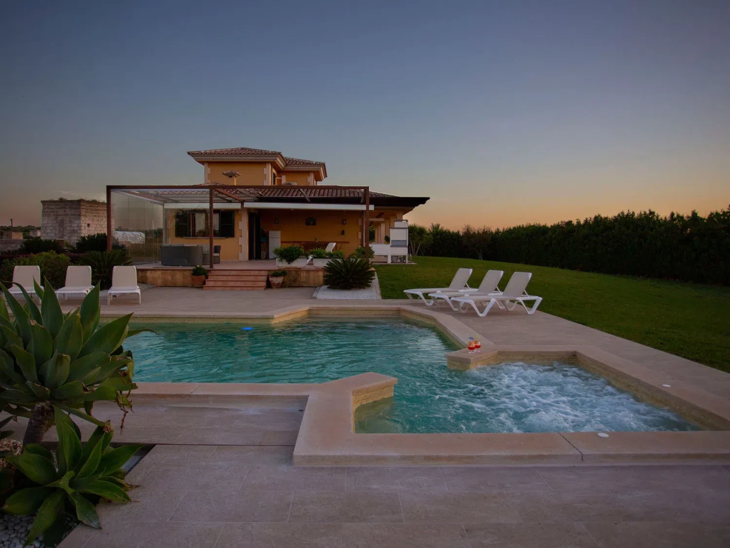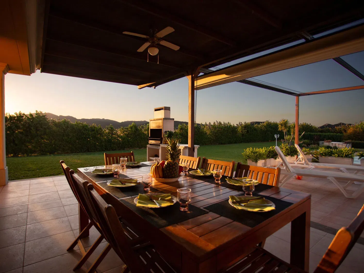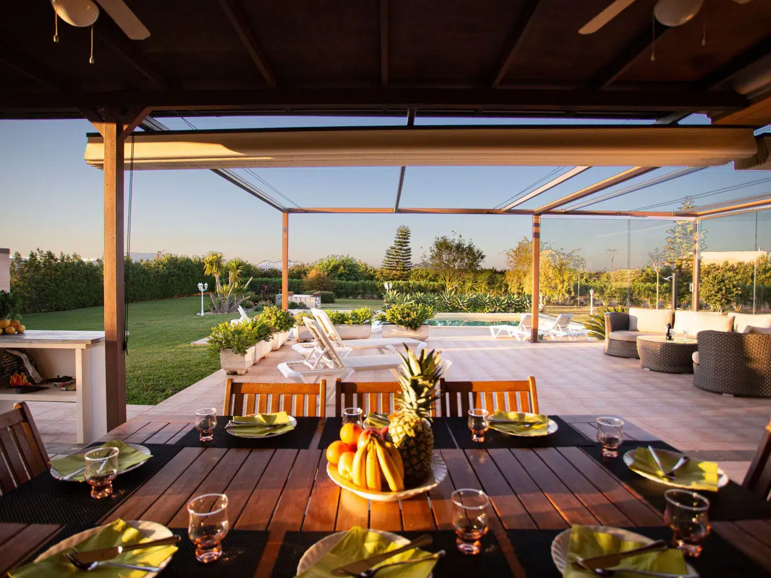 Descubra el encanto y el confort combinados en nuestra acogedora casa de vacaciones en Muro, Mallorca, diseñada especialmente para acoger hasta 9 personas. Esta residencia es el refugio ideal para familias o grupos de amigos que buscan una estancia inolvidable en una de las zonas más bellas de Mallorca. Con todas las comodidades necesarias para garantizar su confort, nuestra casa promete ser el punto de partida perfecto para explorar los alrededores o simplemente disfrutar de momentos de pura relajación. El interior de la casa está equipado pensando en su máxima comodidad, contando con un total de 5 dormitorios y 3 baños, asegurando así un espacio privado y confortable para cada uno de los huéspedes. La presencia de aire acondicionado en todas las estancias garantiza un ambiente fresco y agradable, incluso en los días más calurosos del verano mallorquín. Los baños están equipados con duchas, una tiene incluida una moderna ducha de lluvia, ideal para relajarse después de un día de aventura. El exterior de la casa no deja nada que desear. Una amplia terraza cubierta invita a los huéspedes a disfrutar de comidas al aire libre o sencillamente relajarse y disfrutar del entorno. El jardín, de uso exclusivo para los huéspedes, ofrece un espacio privado para tomar el sol, leer un libro o jugar con los niños, creando recuerdos imborrables en un entorno sereno y encantador. Situada en el entorno de Muro, nuestra casa de vacaciones ofrece el equilibrio perfecto entre la tranquilidad del campo mallorquín y la proximidad a algunas de las mejores playas y atracciones de la isla. La zona es ideal para quienes deseen explorar los pintorescos pueblos, la rica cultura y las impresionantes costas de Mallorca, ofreciendo una experiencia vacacional única y completa. Datos básicos - Mascotas permitidas: ninguno - Tipo de alojamiento: Casa de vacaciones - se encuentra en: nada aplicable - tipo de edificio: casa individual - Número de plantas en el edificio por encima de la planta baja: 1 - superficie del terreno: 14800 m² - año de construcción: 2011 - casa independiente - Número de dormitorios: 5 - Número de baños: 3 Características principales - Wi-Fi - aire acondicionado: en todas las estancias - calefacción: en todas las estancias - terraza - jardín: de uso exclusivo - totalmente cercado (con muro, valla o seto) - Nº total de estacionamientos privados para turismos: 4 - ㄴ éstos se dividen en plazas con porche: 4 Dormir dormitorio 12 - 2x cama individual dormitorio 15 - 2x cama individual dormitorio 3 - cama doble (de 1,51 m a 1,79 m de ancho) dormitorio 6 - cama doble (de 1,51 m a 1,79 m de ancho) dormitorio 9 - cama doble (de 1,51 m a 1,79 m de ancho) Baño cuarto de baño 3 - ducha - lavabo - servicio (WC) cuarto de baño 6 - ducha - lavabo - servicio (WC) cuarto de baño 9 - ducha de lluvia - 2x lavabo - servicio (WC) - bidé tipo de edificio: casa individual. superficie del terreno: 14800m². año de construcción: 2011.