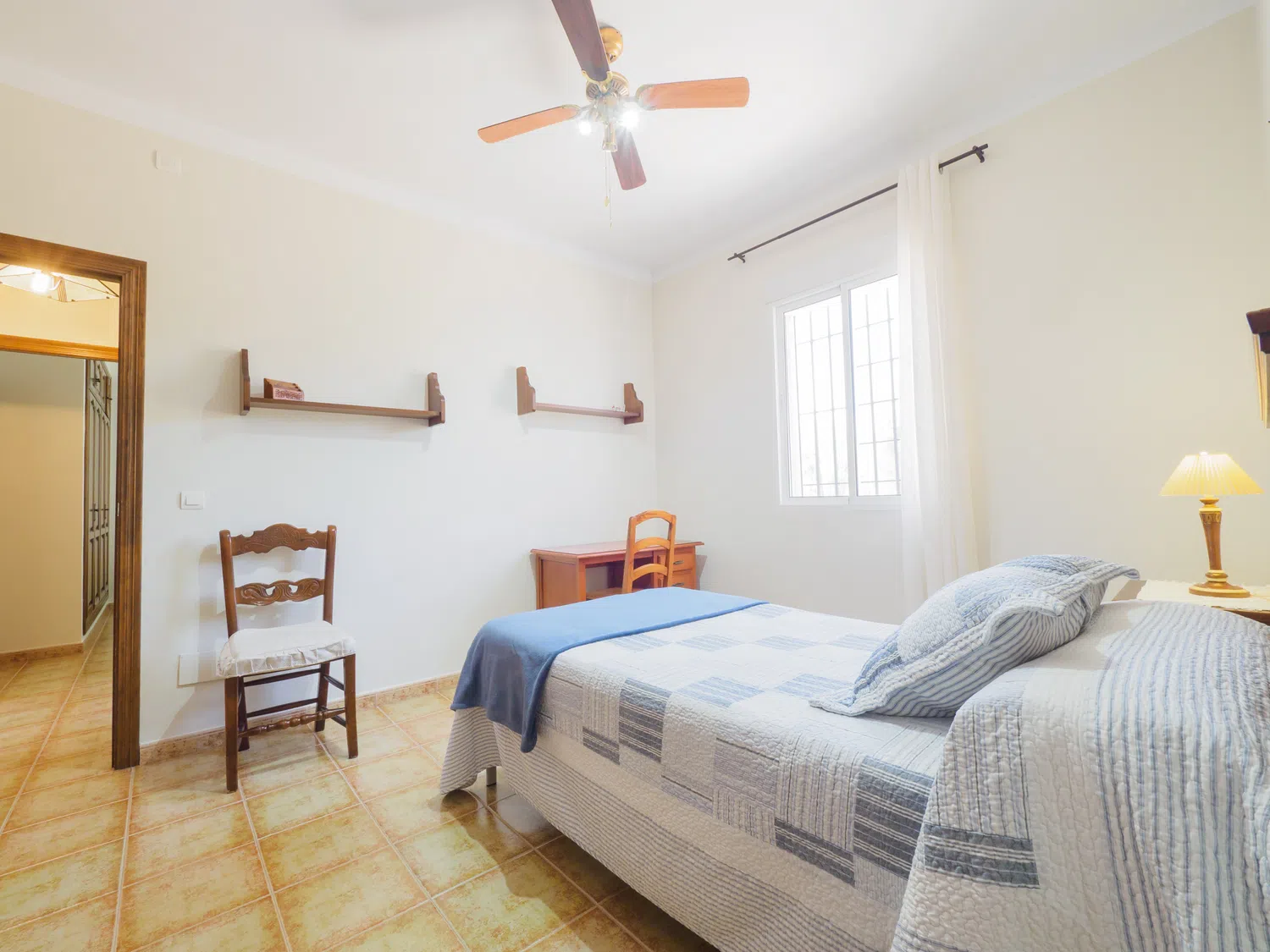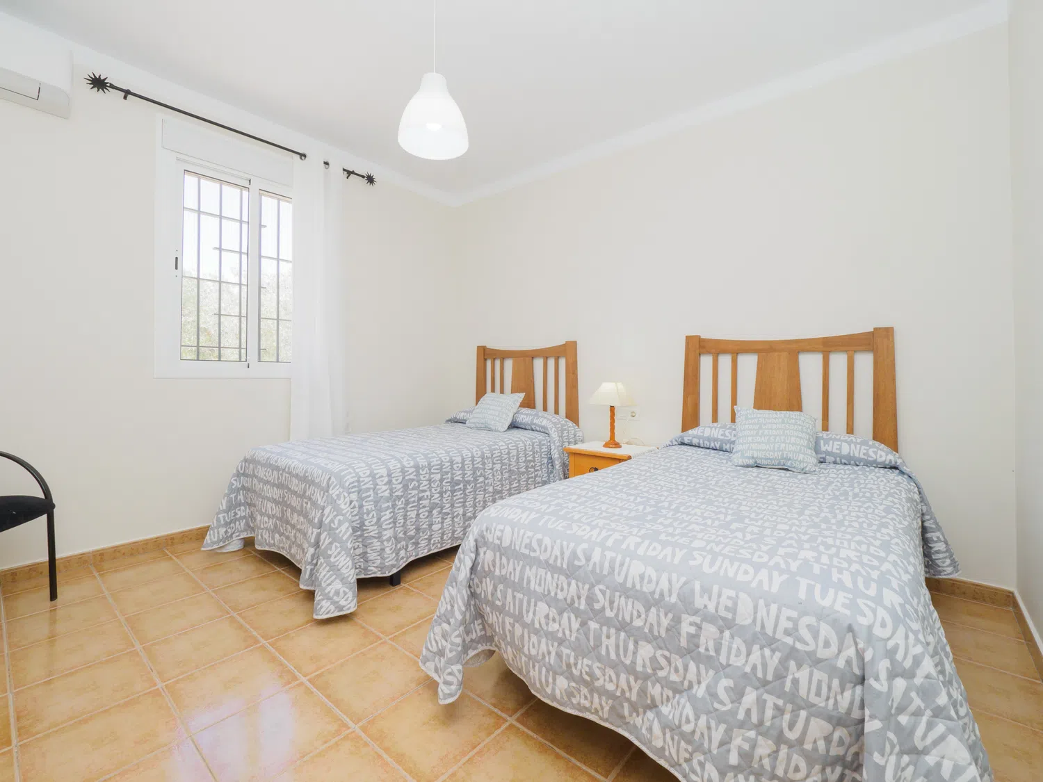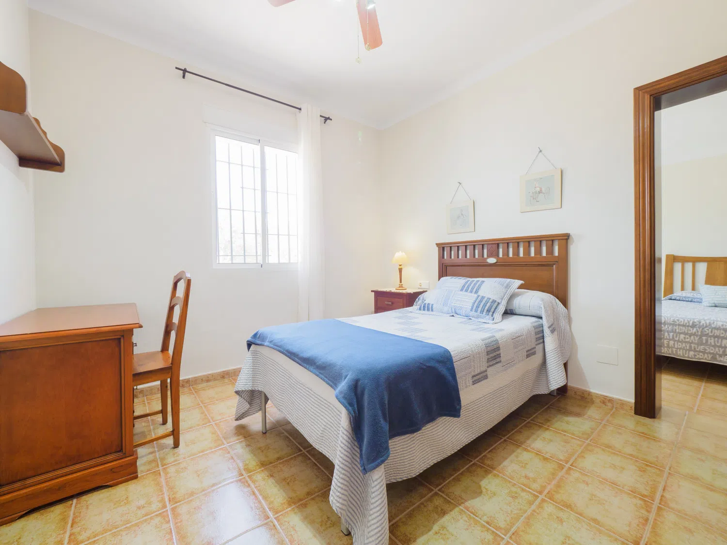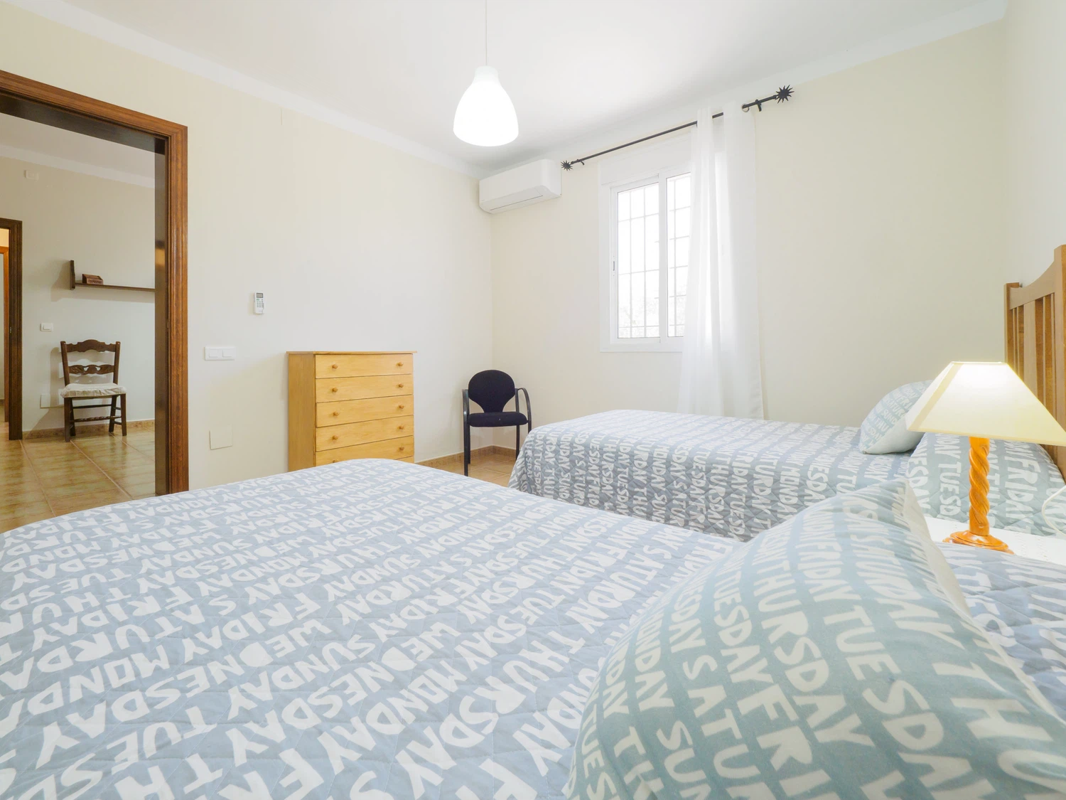 La casa dispone de tres dormitorios para hasta 6 personas: un dormitorio con cama matrimonial de 1,35 cm, y dos dormitorios con camas individuales (3 camas de 1,05 cm y una cama supletoria de 90 cm). Uno de los dormitorios con camas individuales está comunicado a través de otro dormitorio, por lo que su acceso es a través de este. Todos los dormitorios tienen ventanas al exterior y espacio para guardar equipaje ordenadamente. Entre ellos se encuentra un baño completo con bañera para mayor comodidad 🛏️🛁.
