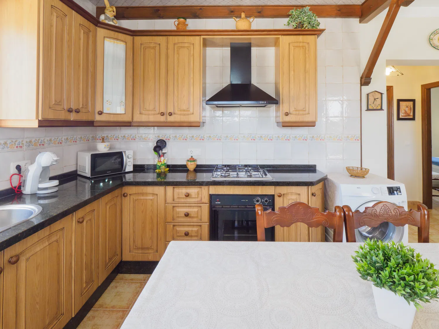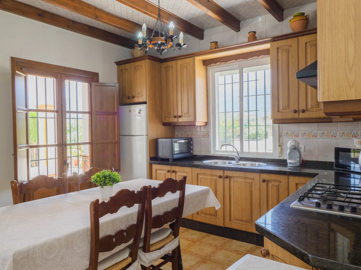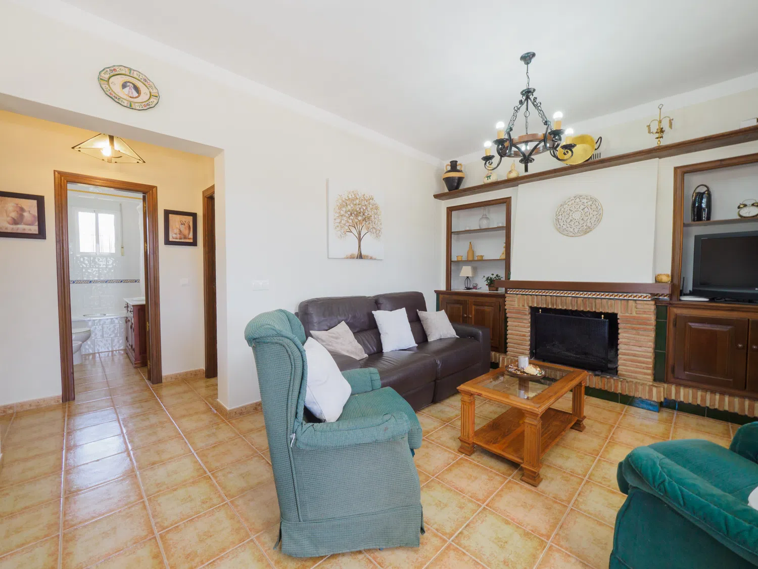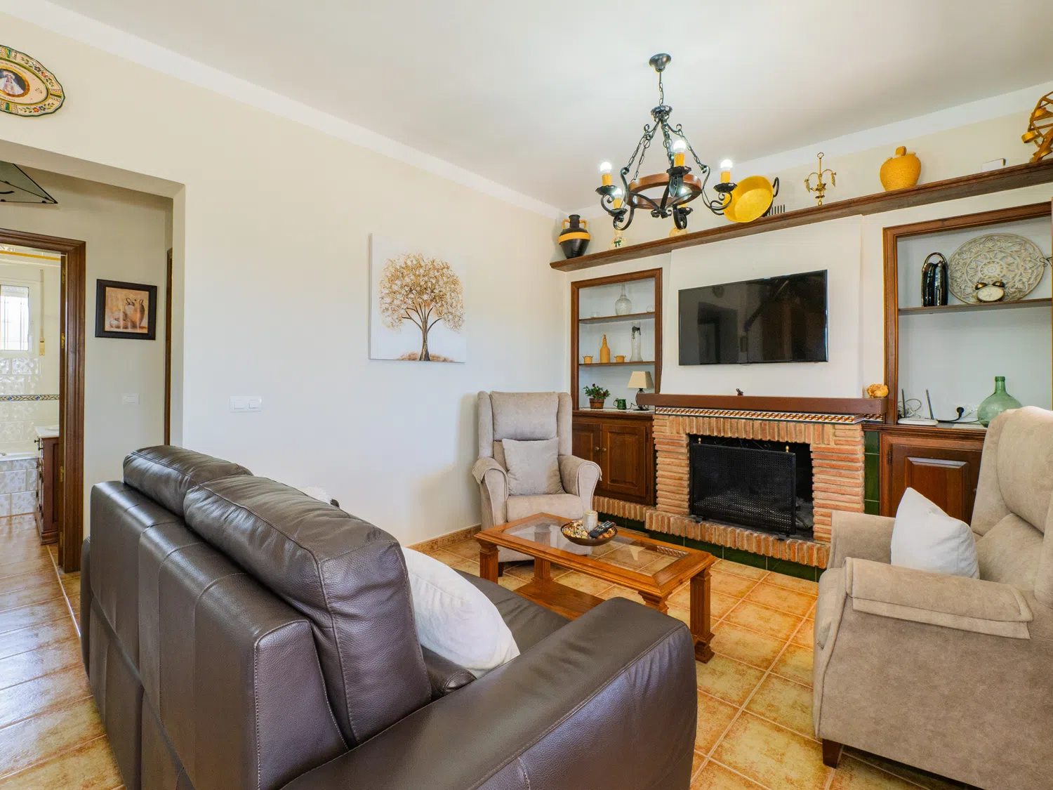 En el interior, encontrará un salón comedor con cocina americana bien diferenciados, creando un espacio acogedor y funcional. Relájese en cómodos sofás viendo la televisión o conectándose al wifi para seguir sus series favoritas 📺. La cocina está equipada con placa vitrocerámica y lavavajillas, facilitando la preparación de comidas. Además, la ubicación cercana a Alhaurín el Grande le permite hacer compras fácilmente para complementar sus ingredientes frescos y apoyar a los negocios locales 🛒.
