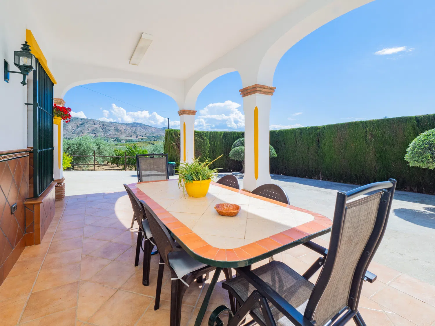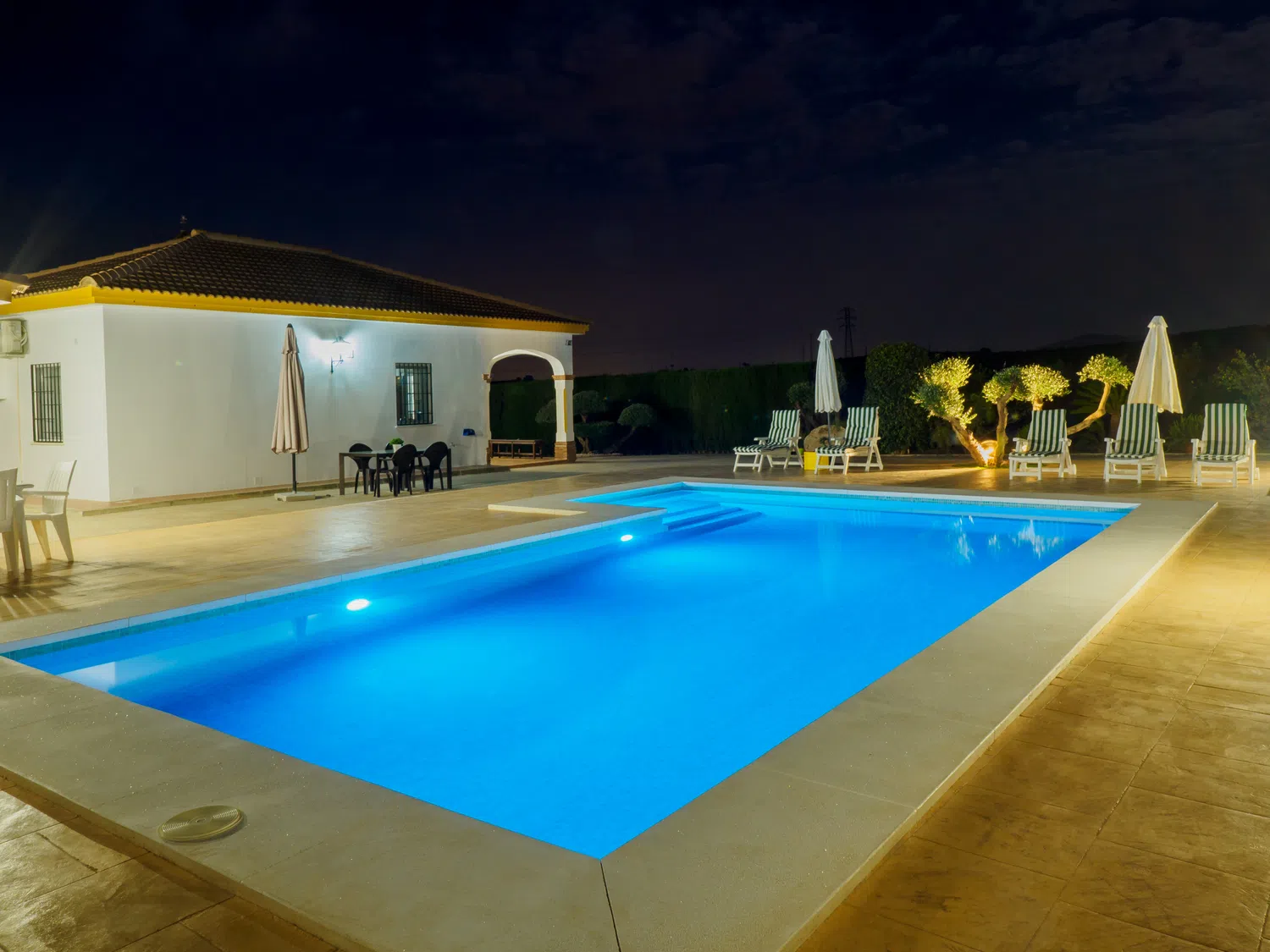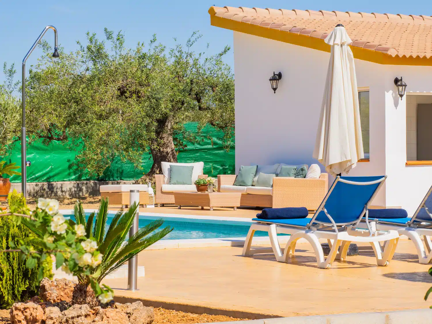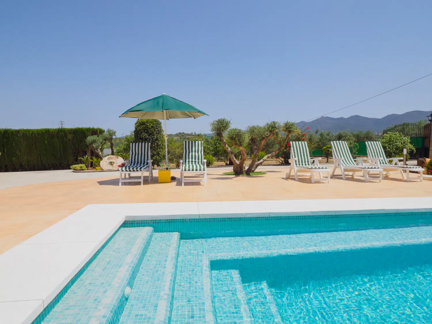 Este encantador alojamiento ofrece un ambiente íntimo y privado con amplios exteriores que incluyen una piscina perfecta para aprovechar el sol de la Costa del Sol durante todo el día y contemplar atardeceres inolvidables 🌅. El porche techado en la entrada es ideal para almorzar o relajarse disfrutando del paisaje natural que rodea la finca. Además, cuenta con un baño exterior completo con ducha, ubicado junto a una pequeña construcción que no está habilitada para uso adicional.