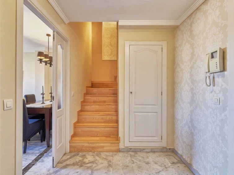 Nagüeles: Casa de apartamentos "Duplex Milla de Oro". En la localidad, a 1.5 km del centro de Marbella, lugar tranquilo, soleado, a 900 m del mar. Comunitario: jardín con césped, 2 piscinas (120 - 150 cm de profundidad, Disponible por temporada: 15.Jun. - 15.Sep.). Ducha exterior. En el inmueble: ascensor. Garaje comunitario. Parada de autobús "Montebello" 400 m. Campo de golf (9 hoyos) 950 m, tenis 1 km, centro ecuestre 15 km. Atracciones en los alrededores: Puerto Banus 6 km. Vecindario muy sensible a ruidos. Se ruega respetar la tranquilidad y normas de buen comportamiento.
