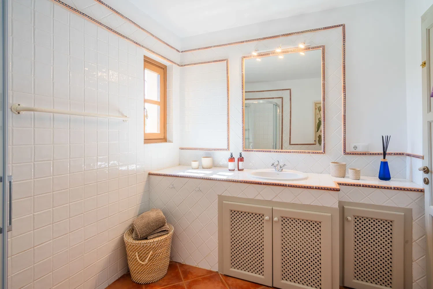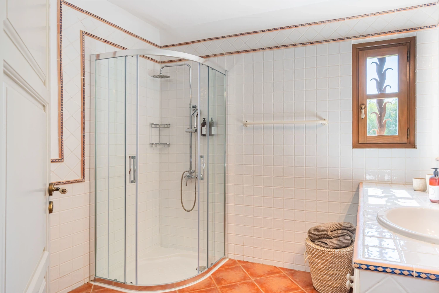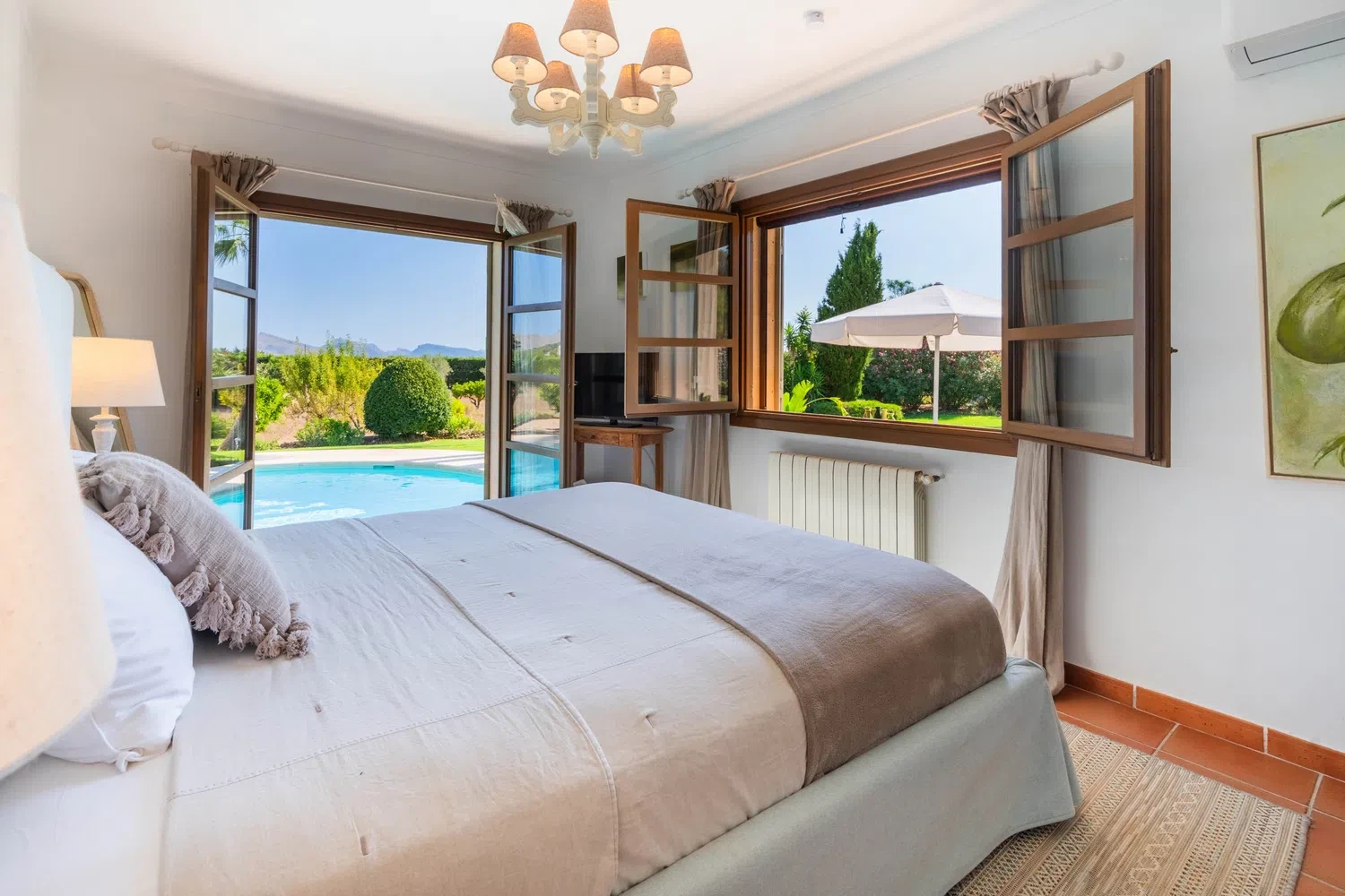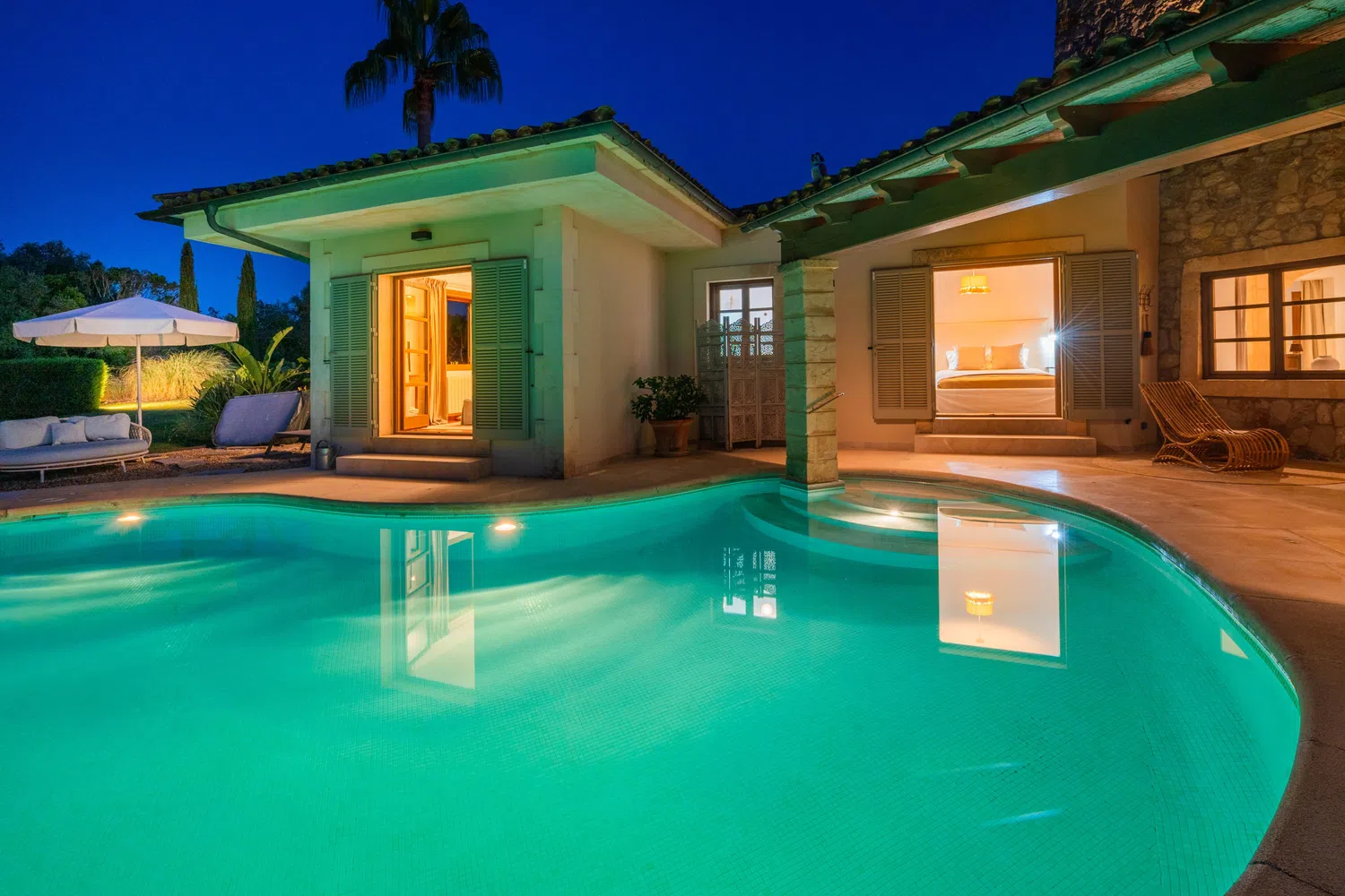 La casa principal dispone de 4 habitaciones (con 2 baños en suite) ademas de un baño completo y 1 aseo para mayor comodidad. La cocina americana está completamente equipada con electrodomésticos, lo que hace que preparar deliciosas comidas sea un placer. En el exterior, los huéspedes pueden disfrutar de una bonita piscina privada de agua salada rodeada de un jardín, con muebles de jardín para relajarse al sol. Además, el jacuzzi, la sauna y el gimnasio privado añaden un toque extra de lujo para aquellos que buscan una estancia relajante. La finca también cuenta con una acogedora terraza, ideal para cenas al aire libre, y una zona de barbacoa para disfrutar de comidas bajo el cielo estrellado de Mallorca.