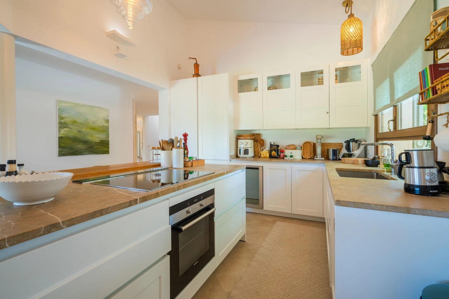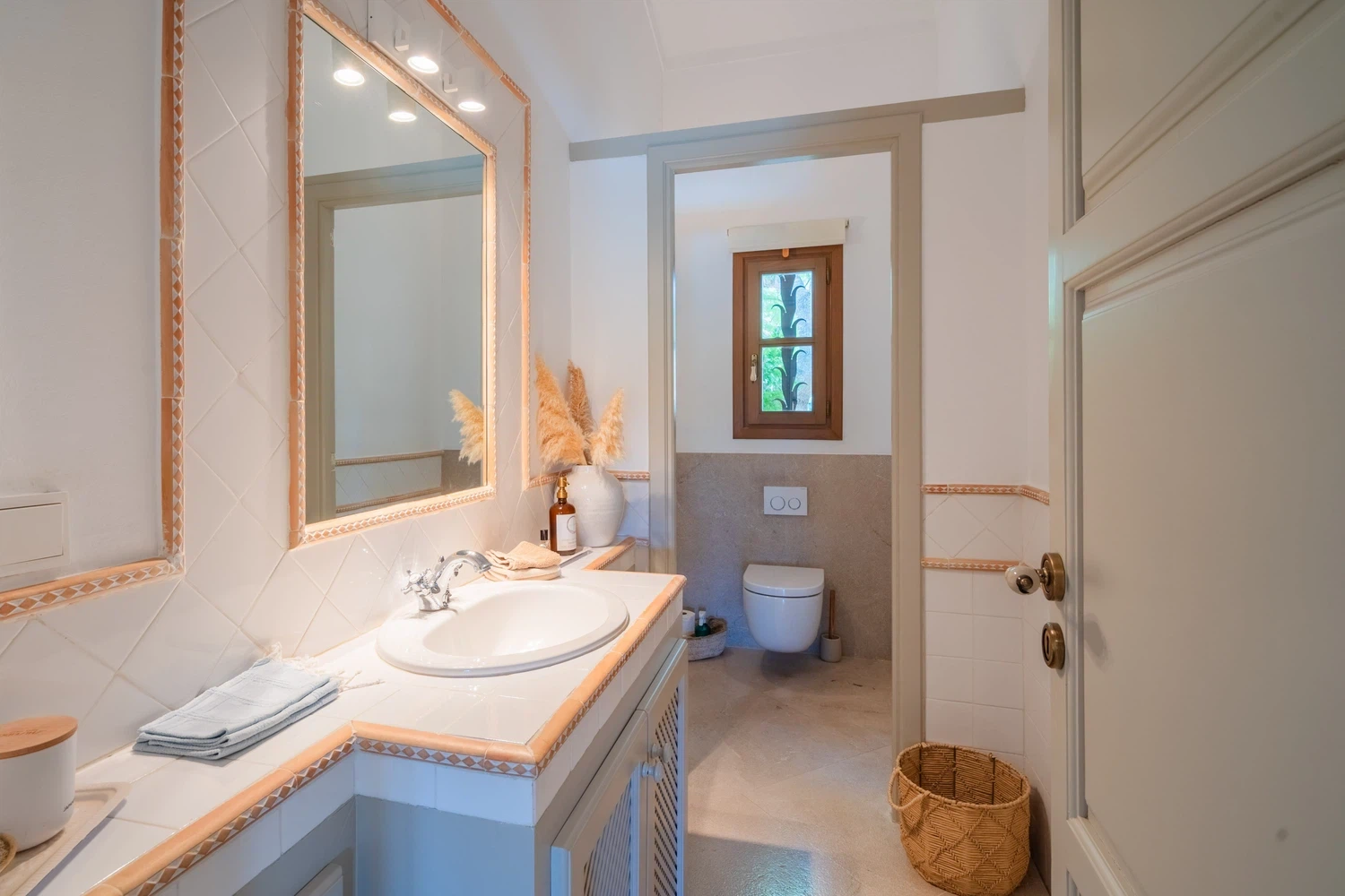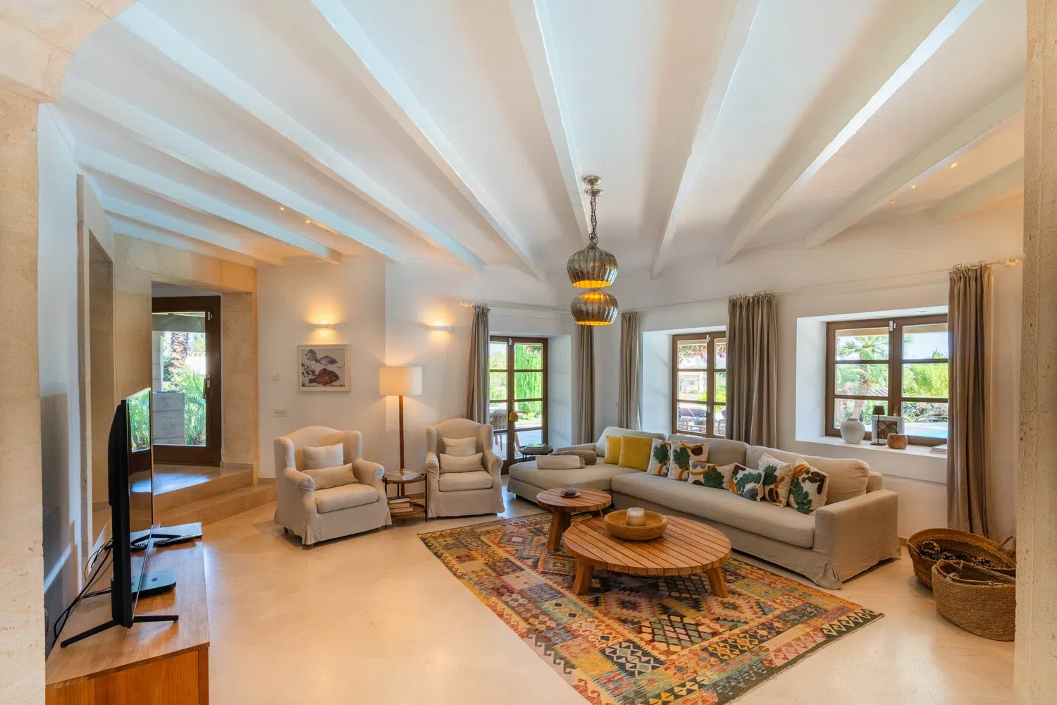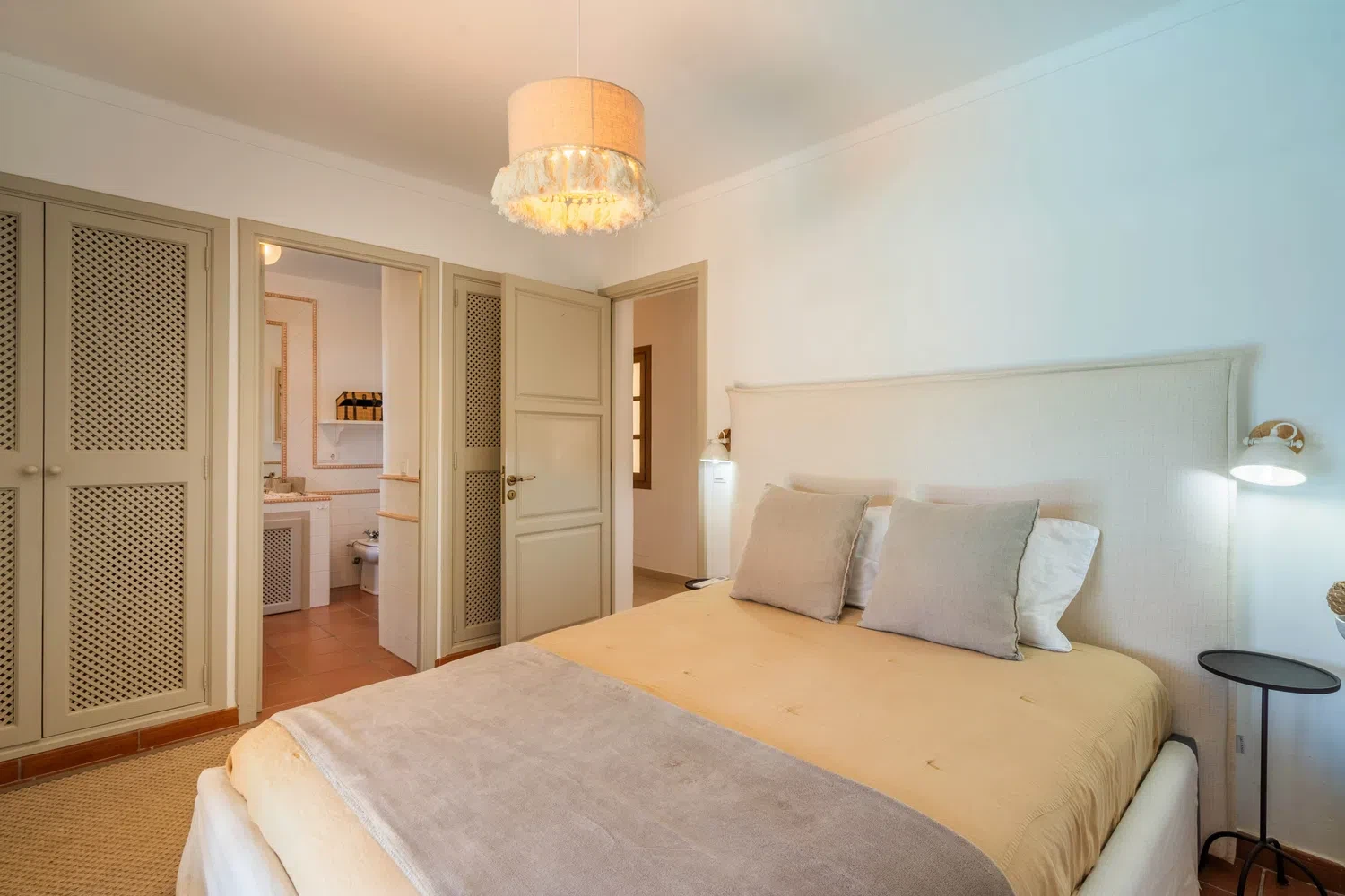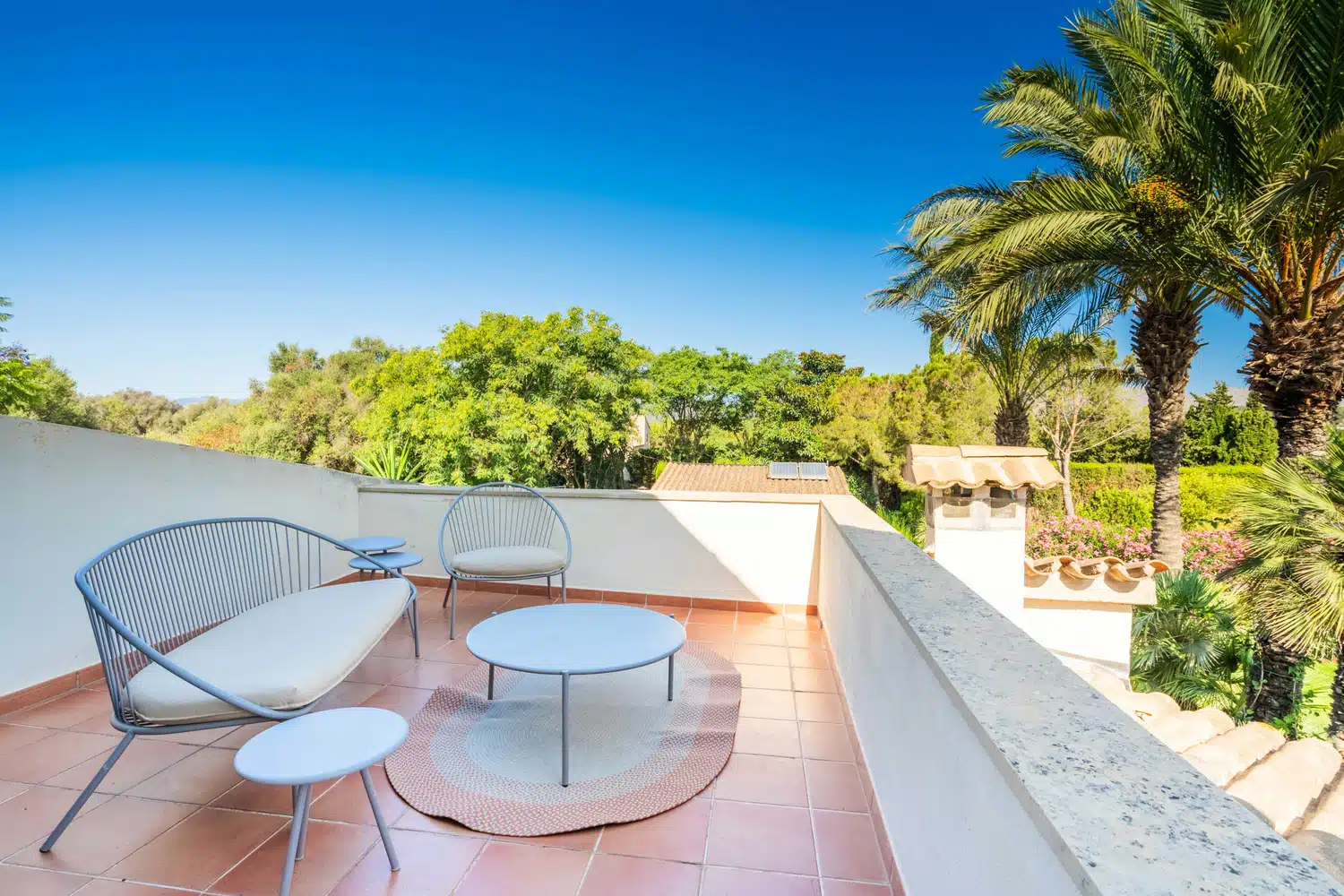 La casa principal dispone de 4 habitaciones (con 2 baños en suite) ademas de un baño completo y 1 aseo para mayor comodidad. La cocina americana está completamente equipada con electrodomésticos, lo que hace que preparar deliciosas comidas sea un placer. En el exterior, los huéspedes pueden disfrutar de una bonita piscina privada de agua salada rodeada de un jardín, con muebles de jardín para relajarse al sol. Además, el jacuzzi, la sauna y el gimnasio privado añaden un toque extra de lujo para aquellos que buscan una estancia relajante. La finca también cuenta con una acogedora terraza, ideal para cenas al aire libre, y una zona de barbacoa para disfrutar de comidas bajo el cielo estrellado de Mallorca.