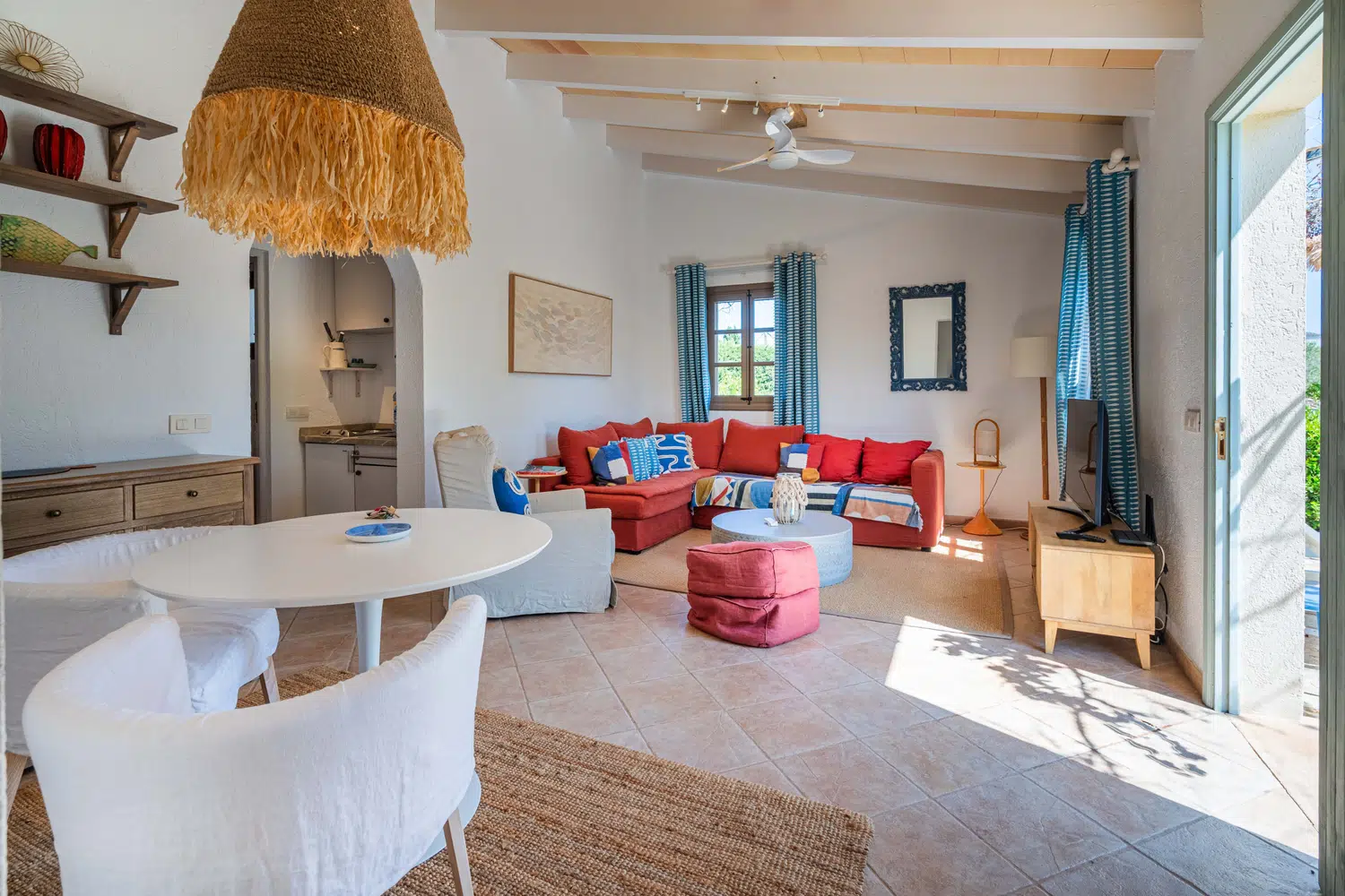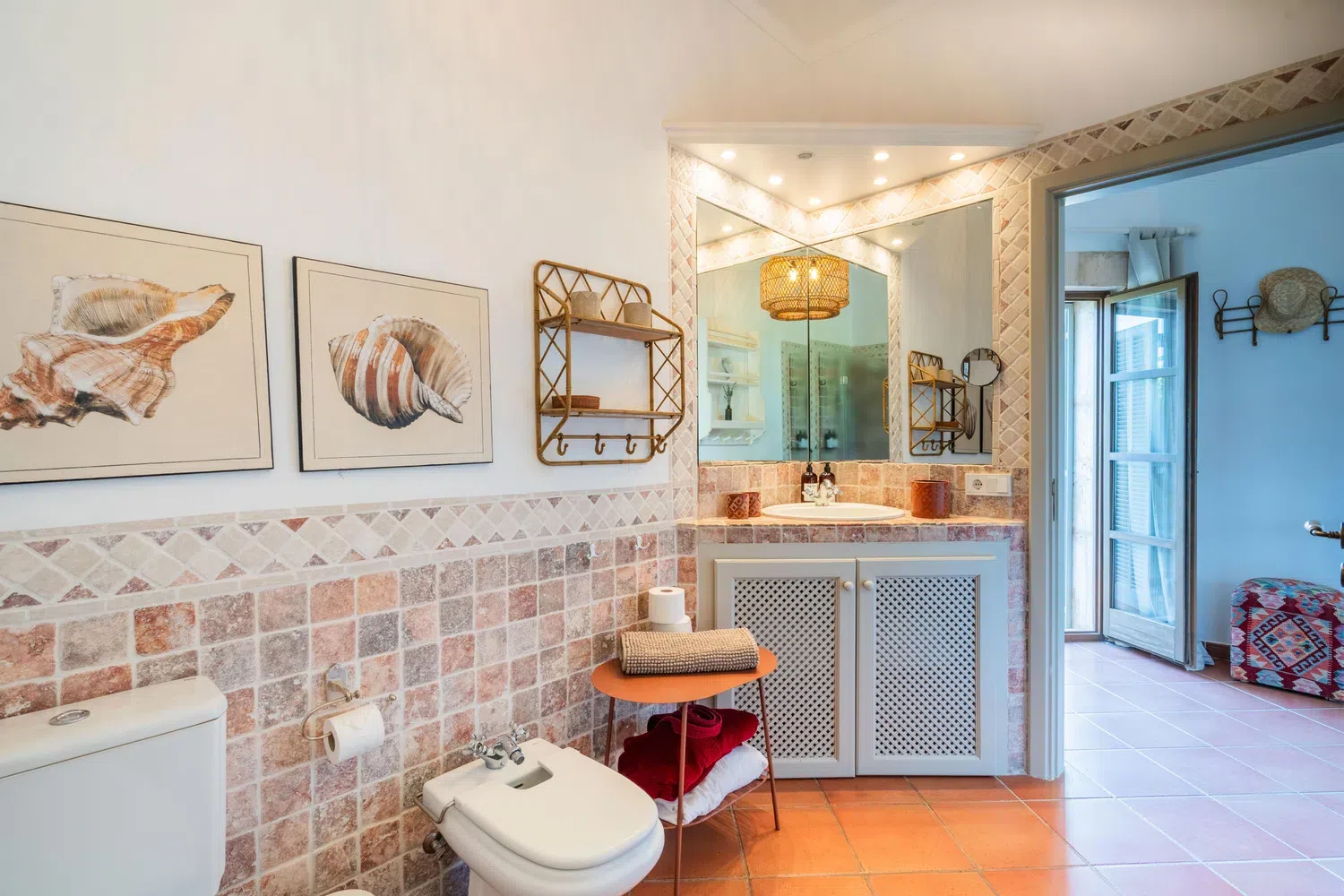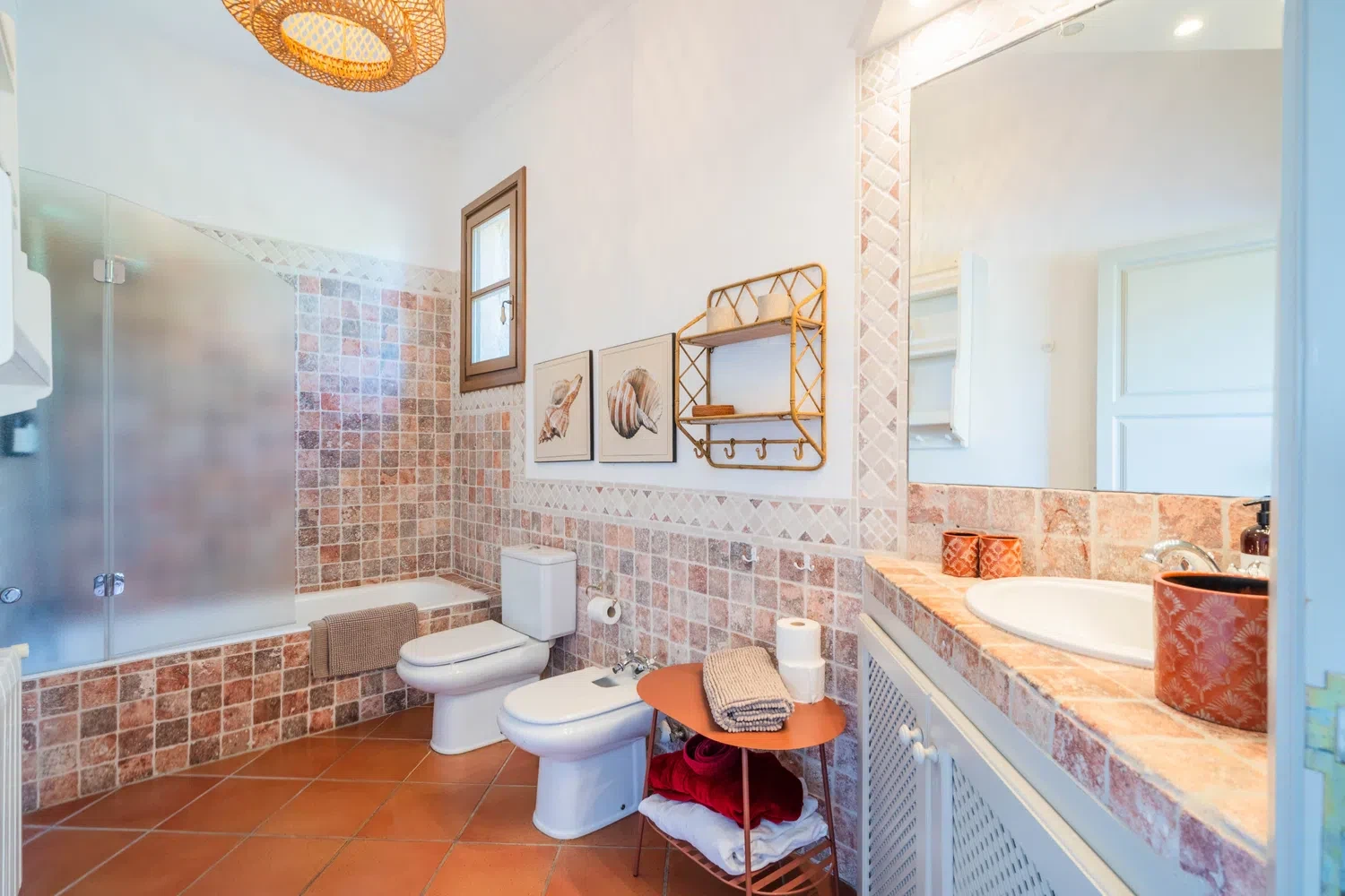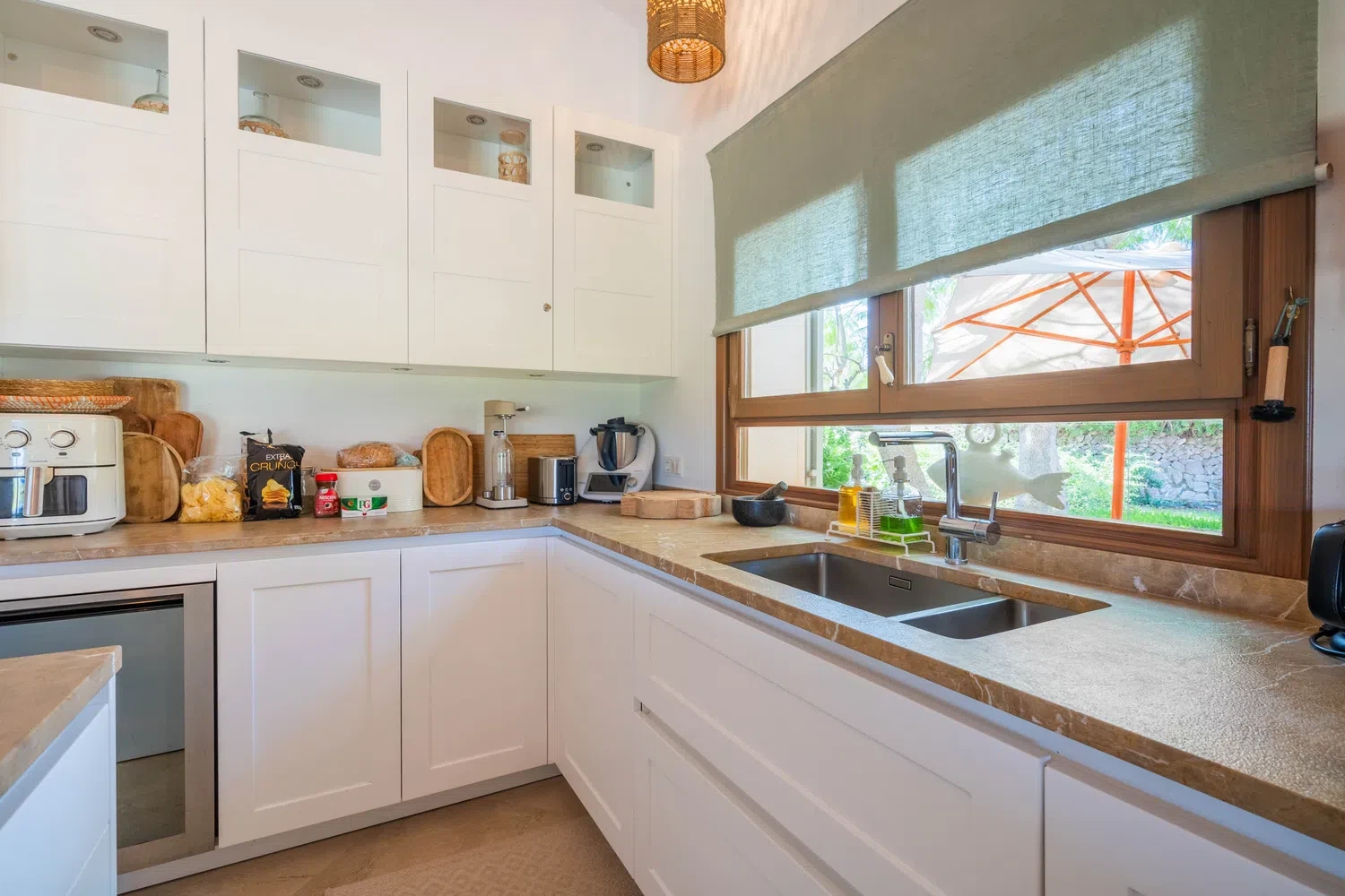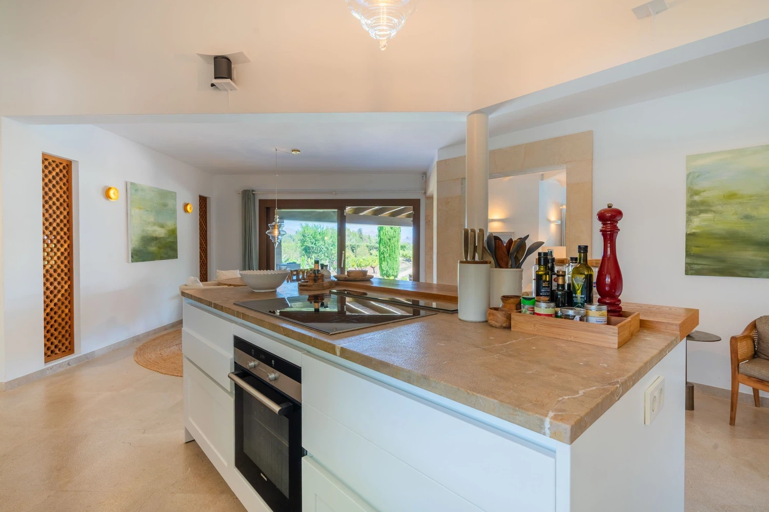 La casa principal dispone de 4 habitaciones (con 2 baños en suite) ademas de un baño completo y 1 aseo para mayor comodidad. La cocina americana está completamente equipada con electrodomésticos, lo que hace que preparar deliciosas comidas sea un placer. En el exterior, los huéspedes pueden disfrutar de una bonita piscina privada de agua salada rodeada de un jardín, con muebles de jardín para relajarse al sol. Además, el jacuzzi, la sauna y el gimnasio privado añaden un toque extra de lujo para aquellos que buscan una estancia relajante. La finca también cuenta con una acogedora terraza, ideal para cenas al aire libre, y una zona de barbacoa para disfrutar de comidas bajo el cielo estrellado de Mallorca.