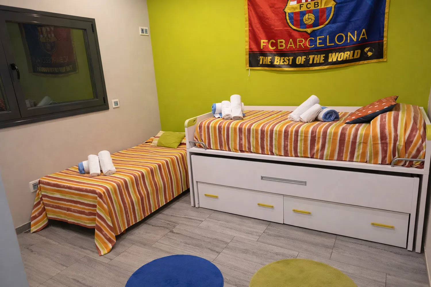 - Dormitorio 3: con capacidad para 3 personas, la habitación está equipada con una cama doble y una cama individual.