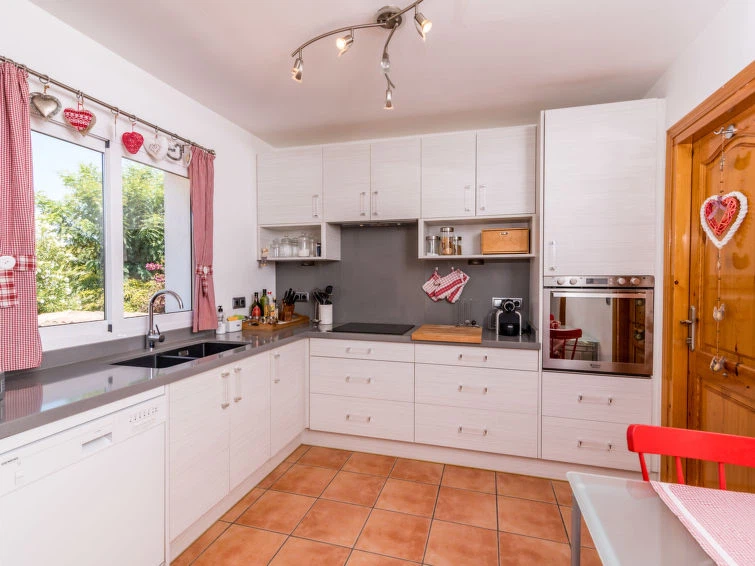 "Villa Mariposa", casa 4 estancias 140 m2. Con mobiliario confortable y bonito: salón-comedor con chimenea, TV satélite y ventilador. Salida al balcón acristalado. 1 dorm. con 2 camas (90 cm, 190 cm de longitud), ventilador. 1 dorm. con 1 cama de matrimonio (135 cm, 190 cm de longitud), aire acondicionado y ventilador. Salida a la terraza. 1 dorm. con 1 cama de matrimonio (180 cm, 200 cm de longitud), aire acondicionado y ventilador. Cocina (lavavajillas, 3 placas de vitrocerámica, tostadora, hervidor de agua eléctrico, microondas, congelador, cafetera eléctrica). 2 ducha/WC, WC separado. Muebles de terraza, barbacoa, tumbonas (5). El alojamiento dispone de: lavadora, plancha, secador de pelo. Internet (Wifi, gratis). Plaza de aparcamiento (vallada) junto a la casa. Adecuado para familias. AT-469987-A