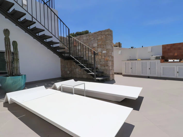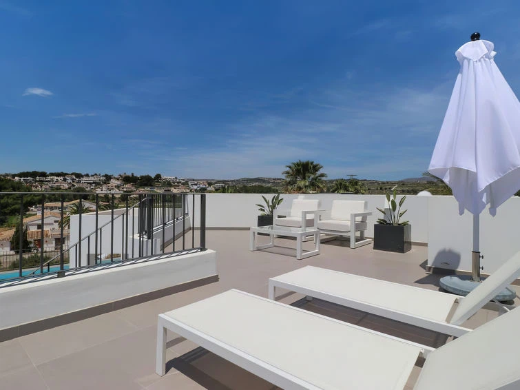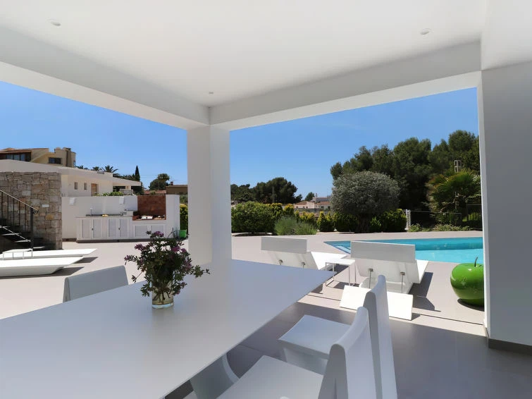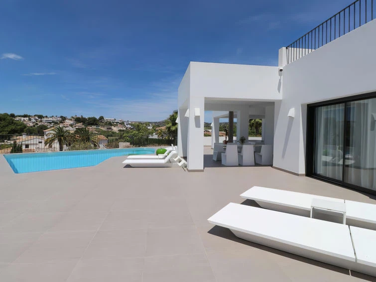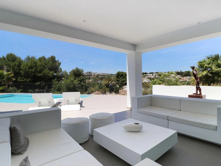 Villa "Out of the Blue", moderna, bonita. A 2.5 km del centro de Moraira, lugar soleado, a 2.5 km del mar, a 2.5 km de la playa. Privado: terreno 1'000 m2 (vallada), jardín (vallado) flores y árboles, piscina (8 x 5 m, Disponible por temporada: 01.Ene. - 31.Dic.). Ducha exterior, barbacoa. En el inmueble: calefacción central, lavadora, secadora. Aparcamiento. Supermercado 1.6 km, restaurante 1.4 km, parada de autobús "Moraira" 2.3 km, estación de tren "Teulada" 5.5 km, ferry "Denia", playa de arena "Playa l'Ampolla" 3 km. Puerto deportivo 3 km, puerto para yates 3 km, campo de golf (18 hoyos) 5.5 km. Atracciones en los alrededores: Aqualandia, Mundomar, Terra Mítica, Terra Natura, Benidorm Palace (Benidorm), Castillo de Guadalest. A tener en cuenta: adecuado para familias. El propietario no acepta grupos de adolescentes/jóvenes.
