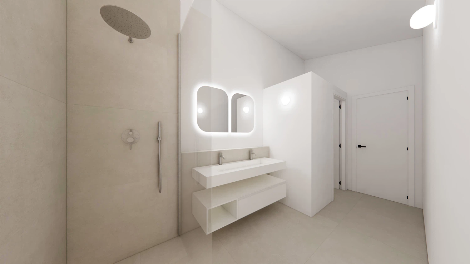 El interior de la villa es luminoso y espacioso. Encontrarás un cuarto-despensa con lavadora, una cocina parcialmente abierta que está totalmente equipada con cocina de gas y lavavajillas, lo que hace que la preparación de comidas sea muy conveniente. El salón-comedor tiene techos altos a doble altura y está equipado con TV Sat. Desde el salón-comedor, puedes acceder a la terraza exterior cubierta, que a su vez te lleva a la zona de la piscina. También desde el salón-comedor, tendrás acceso a un dormitorio matrimonial con aire acondicionado, baño en suite con ducha y bañera, y una zona de terraza independiente que te conecta con la piscina. La villa también cuenta con otro dormitorio matrimonial con aire acondicionado, un tercer dormitorio con dos camas individuales y un baño independiente con ducha.