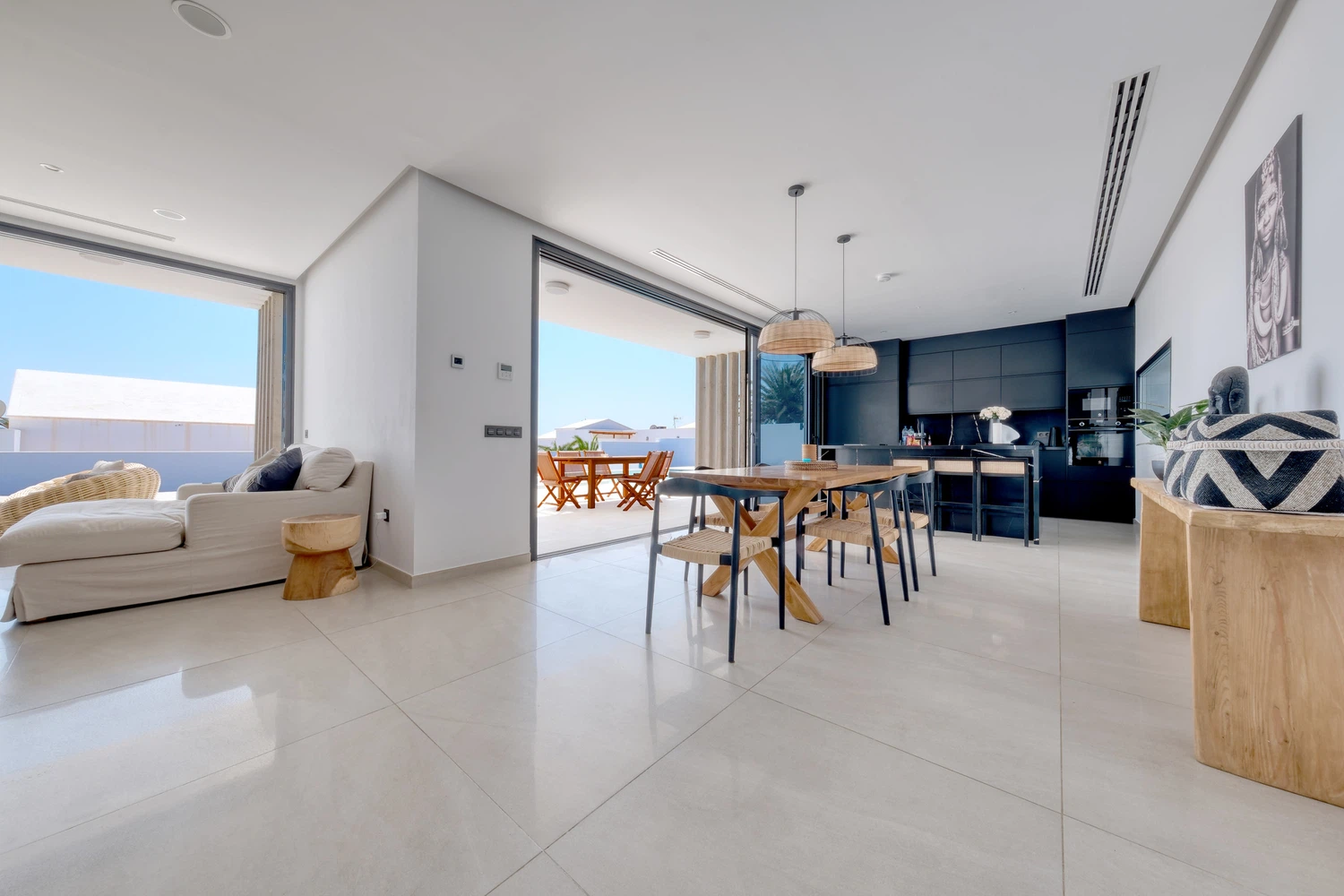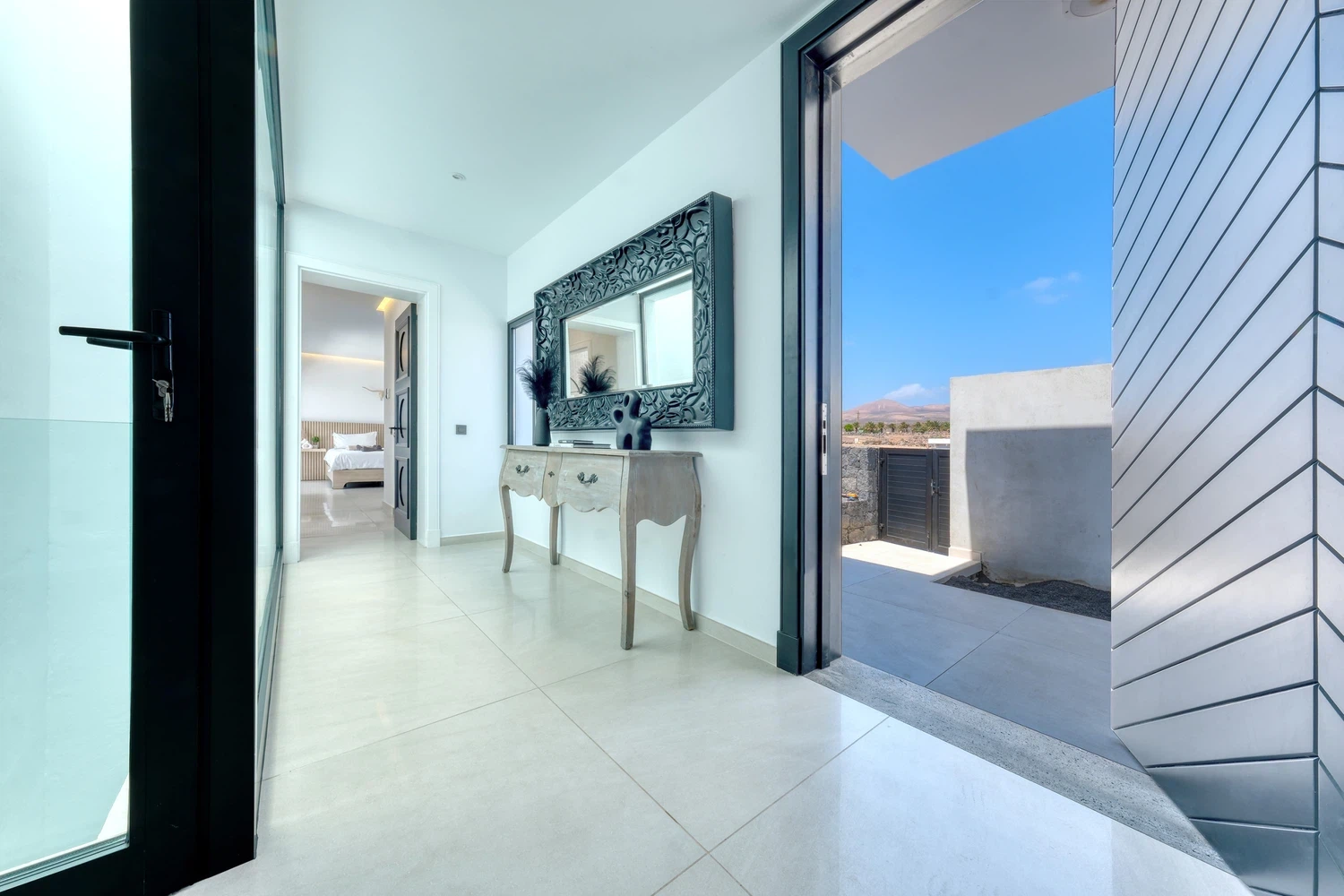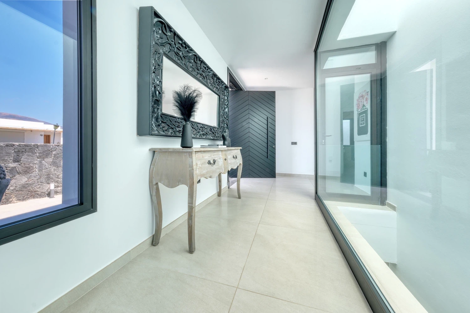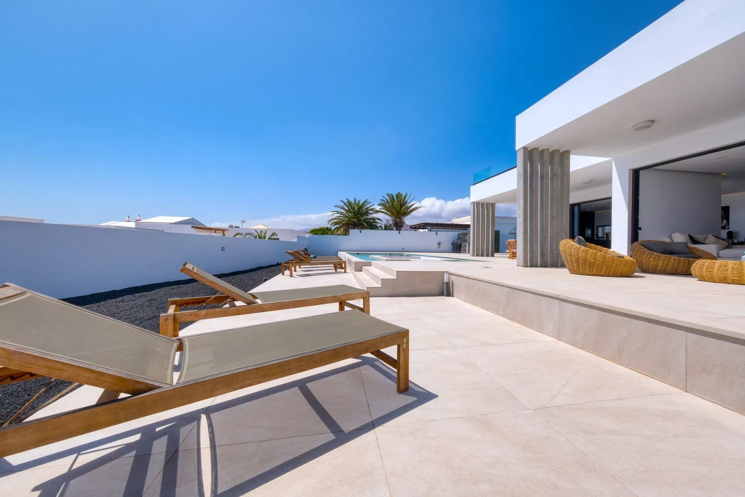 Descubre White House Villa, un refugio de diseño contemporáneo ubicado en Puerto Calero, uno de los enclaves más sofisticados y exclusivos de Lanzarote. Una villa pensada para quienes buscan una experiencia de lujo, privacidad absoluta y una conexión única con el entorno natural de la isla. Con una arquitectura moderna y líneas puras, esta propiedad ha sido diseñada para seducir desde el primer instante. Sus espacios interiores se abren al exterior, integrando luz, mar y naturaleza en cada estancia. Descubre un elegante salón donde el confort y el estilo se encuentran, y con aire acondicionado centralizado para los días calurosos. Los cómodos sofás y chaise longues invitan al descanso, mientras que los detalles en diseño moderno completan una atmósfera relajante y acogedora. Con una amplia zona de estar abierta al exterior, este espacio se baña en luz natural gracias a sus puertas correderas de cristal que conectan perfectamente con una terraza privada y una espectacular piscina. Como detalle especial, bajo la televisión de pantalla plana se encuentra una elegante hoguera artificial, perfecta para aportar un toque acogedor en las noches más frescas o simplemente para ambientar con estilo. La villa dispone de cuatro elegantes habitaciones dobles con camas de matrimonio y tres baños completos con ducha. Uno de ellos cuenta además con una bañera con vistas al exterior, donde cada detalle ha sido cuidadosamente seleccionado. La cocina, totalmente equipada con todo lo necesario, transmite un ambiente de lujo relajado, comodidad y practicidad, ideal para disfrutar de unas vacaciones sin renunciar al estilo y al buen gusto. Es un espacio pensado tanto para cocinar como para socializar y compartir momentos en un entorno sofisticado. El corazón de White House Villa es su espectacular zona exterior: un impresionante solárium rodea la piscina climatizada, cuya singularidad reside en la hoguera central creando un ambiente mágico al caer la noche. La zona chill out completa este espacio pensado para el relax y el disfrute de los sentidos. La piscina cuenta además con una cubierta automática que garantiza la temperatura ideal y mayor seguridad. En la planta alta, un segundo solárium ofrece espectaculares vistas al mar, a la isla de Fuerteventura y a las montañas de Lanzarote. Esta terraza superior se convierte en el rincón perfecto para contemplar el amanecer o despedir el día con una copa al atardecer, rodeado de belleza natural en todas direcciones. Para una experiencia aún más completa, la villa está equipada con un sistema de sonido envolvente tanto en el interior como en el área exterior de la piscina, con conectividad Bluetooth para disfrutar de tu música favorita en todo momento. Además, esta espectacular Villa, cuenta con un apartamento extra en la planta baja. Está compuesto de un salón con cocina estilo americana totalmente equipada con todo lo necesario, un baño extra y dos dormitorios aumentando así la capacidad de la villa a 12 personas. La reserva de este apartamento está sujeta a un suplemento extra. Desde cualquier rincón de la villa se puede contemplar uno de los mayores privilegios de esta propiedad: unas vistas incomparables al horizonte y atardeceres de ensueño, donde el cielo se tiñe de colores cálidos sobre el Atlántico. Puerto Calero, con su exclusivo puerto deportivo, restaurantes gourmet y boutiques selectas, se encuentra a tan solo unos minutos, ofreciendo lo mejor de la vida costera con la tranquilidad de un entorno reservado y sofisticado. White House Villa no es solo un lugar donde alojarse, es un estilo de vida. Un oasis moderno en Lanzarote diseñado para quienes entienden que el lujo reside en los pequeños grandes detalles. La piscina es climatizada y está incluida. Ropa de cama y toallas de piscina incluidas.