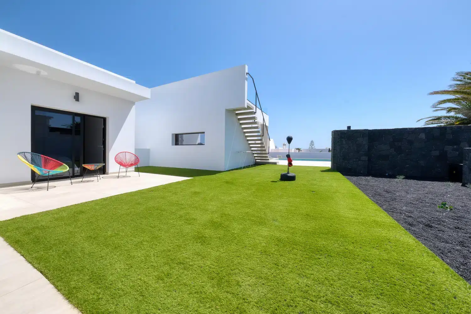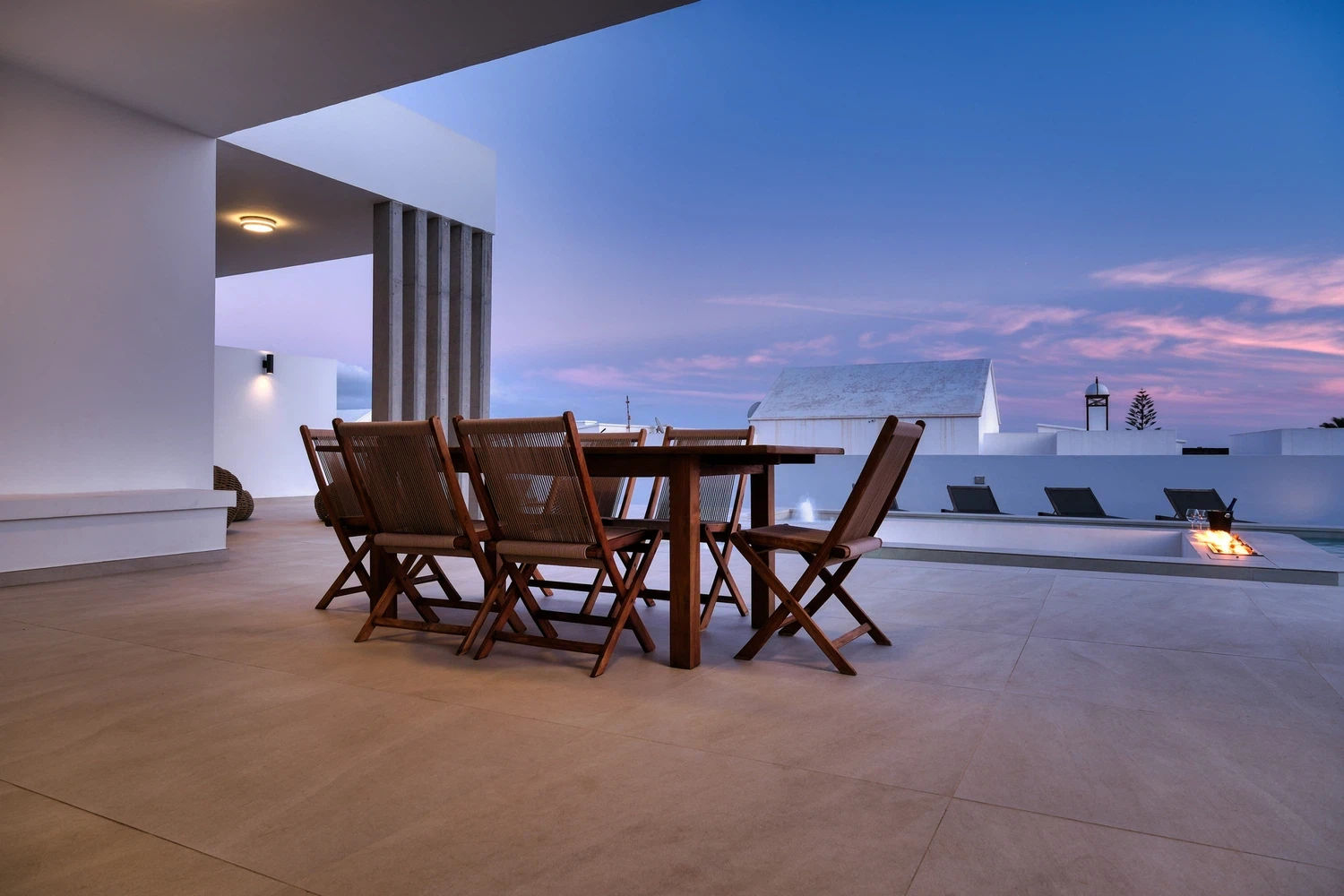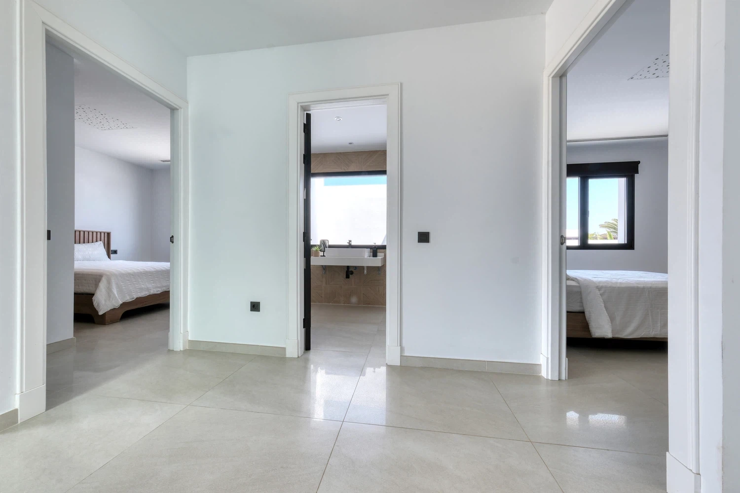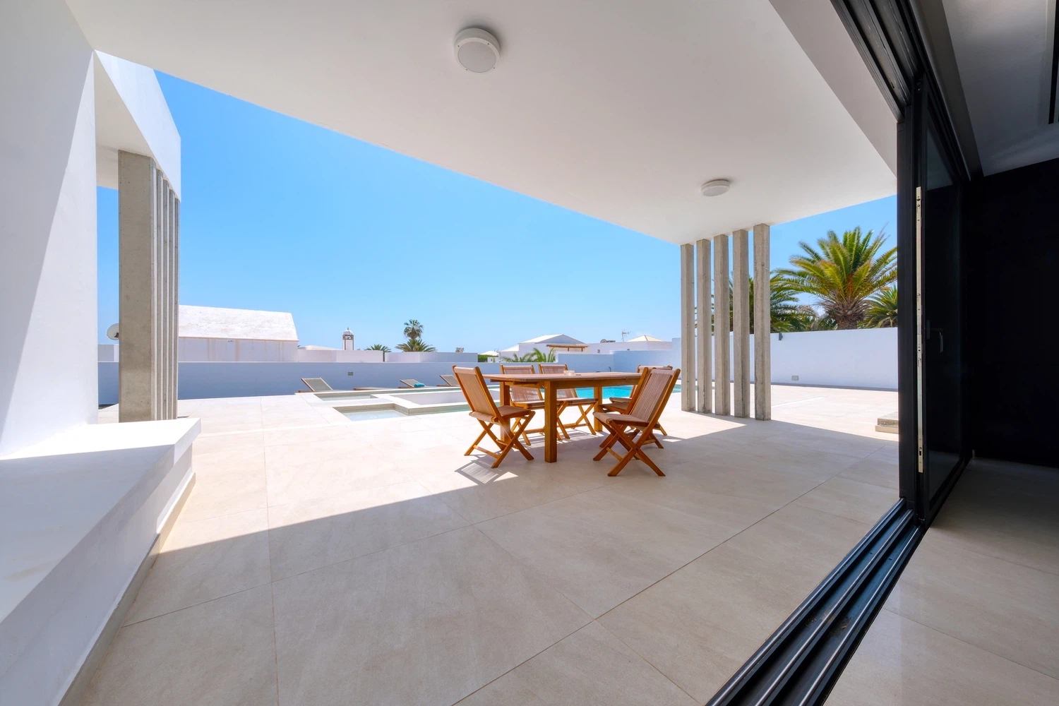 Descubre White House Villa, un refugio de diseño contemporáneo ubicado en Puerto Calero, uno de los enclaves más sofisticados y exclusivos de Lanzarote. Una villa pensada para quienes buscan una experiencia de lujo, privacidad absoluta y una conexión única con el entorno natural de la isla. Con una arquitectura moderna y líneas puras, esta propiedad ha sido diseñada para seducir desde el primer instante. Sus espacios interiores se abren al exterior, integrando luz, mar y naturaleza en cada estancia. Descubre un elegante salón donde el confort y el estilo se encuentran, y con aire acondicionado centralizado para los días calurosos. Los cómodos sofás y chaise longues invitan al descanso, mientras que los detalles en diseño moderno completan una atmósfera relajante y acogedora. Con una amplia zona de estar abierta al exterior, este espacio se baña en luz natural gracias a sus puertas correderas de cristal que conectan perfectamente con una terraza privada y una espectacular piscina. Como detalle especial, bajo la televisión de pantalla plana se encuentra una elegante hoguera artificial, perfecta para aportar un toque acogedor en las noches más frescas o simplemente para ambientar con estilo. La villa dispone de cuatro elegantes habitaciones dobles con camas de matrimonio y tres baños completos con ducha. Uno de ellos cuenta además con una bañera con vistas al exterior, donde cada detalle ha sido cuidadosamente seleccionado. La cocina, totalmente equipada con todo lo necesario, transmite un ambiente de lujo relajado, comodidad y practicidad, ideal para disfrutar de unas vacaciones sin renunciar al estilo y al buen gusto. Es un espacio pensado tanto para cocinar como para socializar y compartir momentos en un entorno sofisticado. El corazón de White House Villa es su espectacular zona exterior: un impresionante solárium rodea la piscina climatizada, cuya singularidad reside en la hoguera central creando un ambiente mágico al caer la noche. La zona chill out completa este espacio pensado para el relax y el disfrute de los sentidos. La piscina cuenta además con una cubierta automática que garantiza la temperatura ideal y mayor seguridad. En la planta alta, un segundo solárium ofrece espectaculares vistas al mar, a la isla de Fuerteventura y a las montañas de Lanzarote. Esta terraza superior se convierte en el rincón perfecto para contemplar el amanecer o despedir el día con una copa al atardecer, rodeado de belleza natural en todas direcciones. Para una experiencia aún más completa, la villa está equipada con un sistema de sonido envolvente tanto en el interior como en el área exterior de la piscina, con conectividad Bluetooth para disfrutar de tu música favorita en todo momento. Además, esta espectacular Villa, cuenta con un apartamento extra en la planta baja. Está compuesto de un salón con cocina estilo americana totalmente equipada con todo lo necesario, un baño extra y dos dormitorios aumentando así la capacidad de la villa a 12 personas. La reserva de este apartamento está sujeta a un suplemento extra. Desde cualquier rincón de la villa se puede contemplar uno de los mayores privilegios de esta propiedad: unas vistas incomparables al horizonte y atardeceres de ensueño, donde el cielo se tiñe de colores cálidos sobre el Atlántico. Puerto Calero, con su exclusivo puerto deportivo, restaurantes gourmet y boutiques selectas, se encuentra a tan solo unos minutos, ofreciendo lo mejor de la vida costera con la tranquilidad de un entorno reservado y sofisticado. White House Villa no es solo un lugar donde alojarse, es un estilo de vida. Un oasis moderno en Lanzarote diseñado para quienes entienden que el lujo reside en los pequeños grandes detalles. La piscina es climatizada y está incluida. Ropa de cama y toallas de piscina incluidas.
