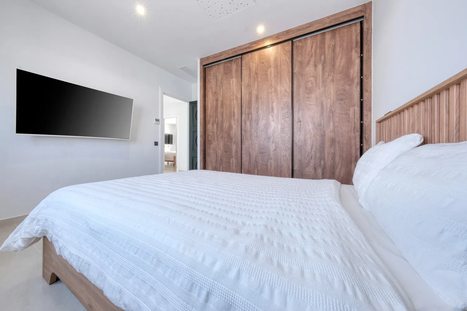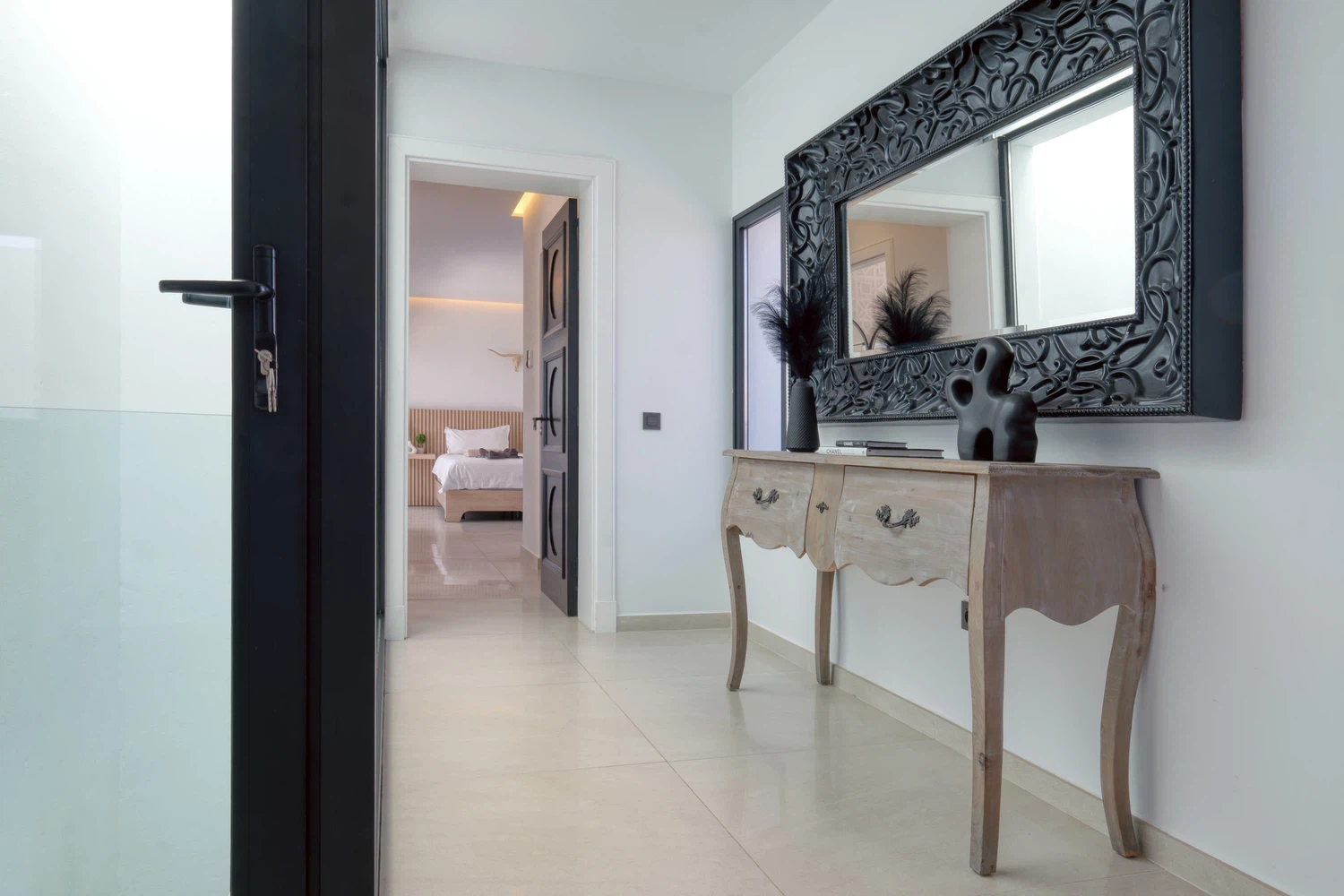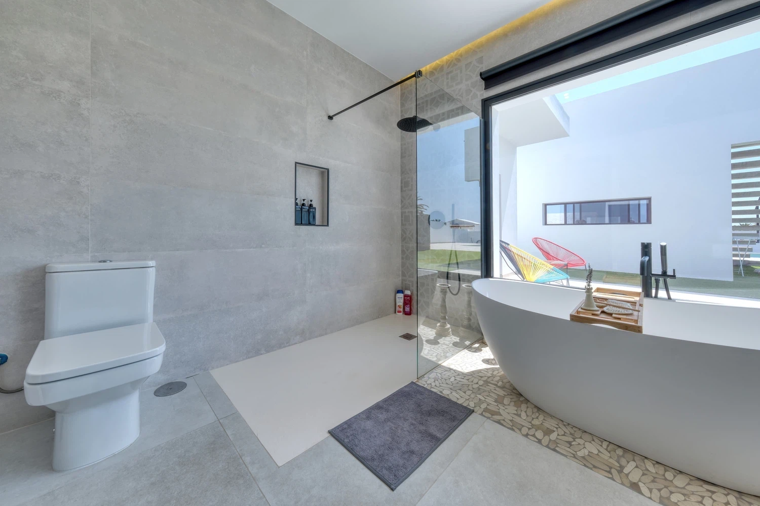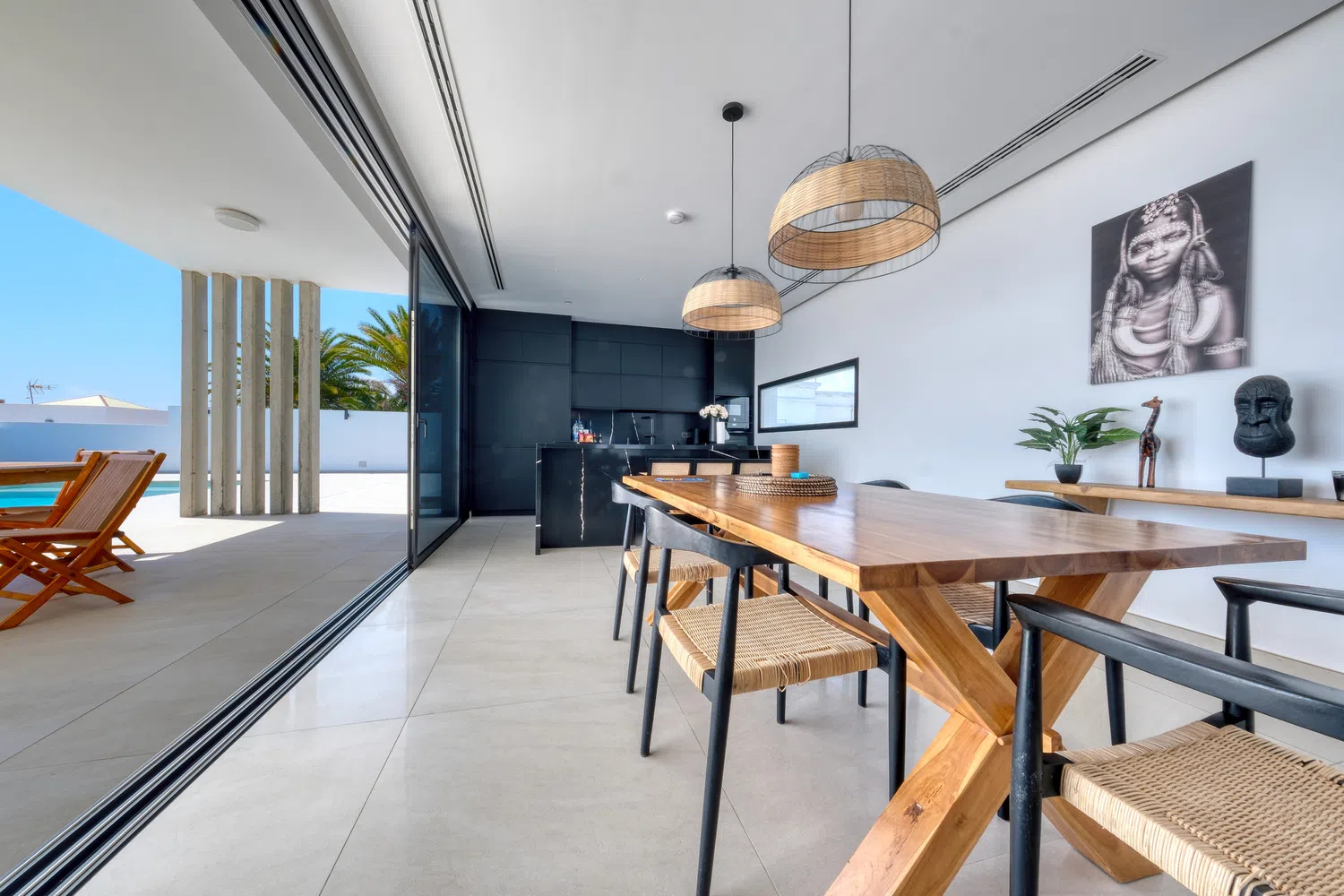 Descubre White House Villa, un refugio de diseño contemporáneo ubicado en Puerto Calero, uno de los enclaves más sofisticados y exclusivos de Lanzarote. Una villa pensada para quienes buscan una experiencia de lujo, privacidad absoluta y una conexión única con el entorno natural de la isla. Con una arquitectura moderna y líneas puras, esta propiedad ha sido diseñada para seducir desde el primer instante. Sus espacios interiores se abren al exterior, integrando luz, mar y naturaleza en cada estancia. Descubre un elegante salón donde el confort y el estilo se encuentran, y con aire acondicionado centralizado para los días calurosos. Los cómodos sofás y chaise longues invitan al descanso, mientras que los detalles en diseño moderno completan una atmósfera relajante y acogedora. Con una amplia zona de estar abierta al exterior, este espacio se baña en luz natural gracias a sus puertas correderas de cristal que conectan perfectamente con una terraza privada y una espectacular piscina. Como detalle especial, bajo la televisión de pantalla plana se encuentra una elegante hoguera artificial, perfecta para aportar un toque acogedor en las noches más frescas o simplemente para ambientar con estilo. La villa dispone de cuatro elegantes habitaciones dobles con camas de matrimonio y tres baños completos con ducha. Uno de ellos cuenta además con una bañera con vistas al exterior, donde cada detalle ha sido cuidadosamente seleccionado. La cocina, totalmente equipada con todo lo necesario, transmite un ambiente de lujo relajado, comodidad y practicidad, ideal para disfrutar de unas vacaciones sin renunciar al estilo y al buen gusto. Es un espacio pensado tanto para cocinar como para socializar y compartir momentos en un entorno sofisticado. El corazón de White House Villa es su espectacular zona exterior: un impresionante solárium rodea la piscina climatizada, cuya singularidad reside en la hoguera central creando un ambiente mágico al caer la noche. La zona chill out completa este espacio pensado para el relax y el disfrute de los sentidos. La piscina cuenta además con una cubierta automática que garantiza la temperatura ideal y mayor seguridad. En la planta alta, un segundo solárium ofrece espectaculares vistas al mar, a la isla de Fuerteventura y a las montañas de Lanzarote. Esta terraza superior se convierte en el rincón perfecto para contemplar el amanecer o despedir el día con una copa al atardecer, rodeado de belleza natural en todas direcciones. Para una experiencia aún más completa, la villa está equipada con un sistema de sonido envolvente tanto en el interior como en el área exterior de la piscina, con conectividad Bluetooth para disfrutar de tu música favorita en todo momento. Además, esta espectacular Villa, cuenta con un apartamento extra en la planta baja. Está compuesto de un salón con cocina estilo americana totalmente equipada con todo lo necesario, un baño extra y dos dormitorios aumentando así la capacidad de la villa a 12 personas. La reserva de este apartamento está sujeta a un suplemento extra. Desde cualquier rincón de la villa se puede contemplar uno de los mayores privilegios de esta propiedad: unas vistas incomparables al horizonte y atardeceres de ensueño, donde el cielo se tiñe de colores cálidos sobre el Atlántico. Puerto Calero, con su exclusivo puerto deportivo, restaurantes gourmet y boutiques selectas, se encuentra a tan solo unos minutos, ofreciendo lo mejor de la vida costera con la tranquilidad de un entorno reservado y sofisticado. White House Villa no es solo un lugar donde alojarse, es un estilo de vida. Un oasis moderno en Lanzarote diseñado para quienes entienden que el lujo reside en los pequeños grandes detalles. La piscina es climatizada y está incluida. Ropa de cama y toallas de piscina incluidas.