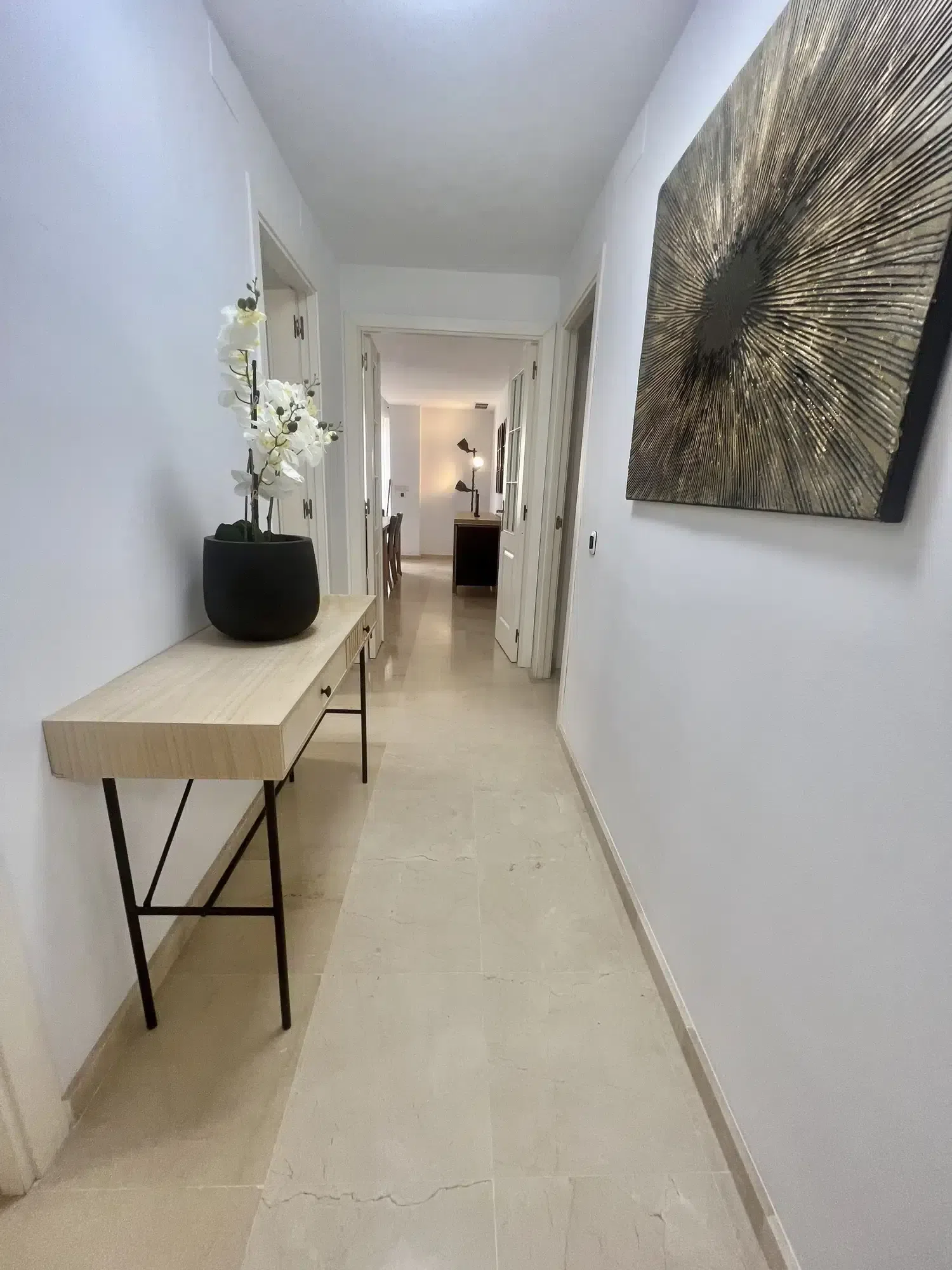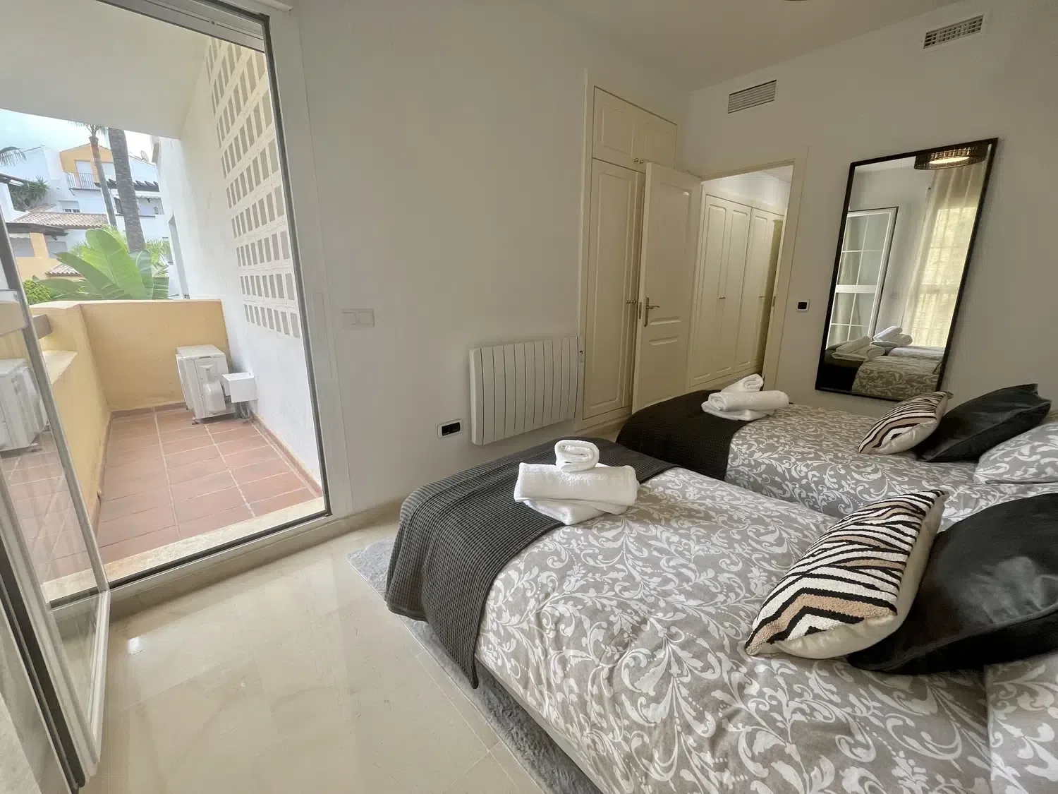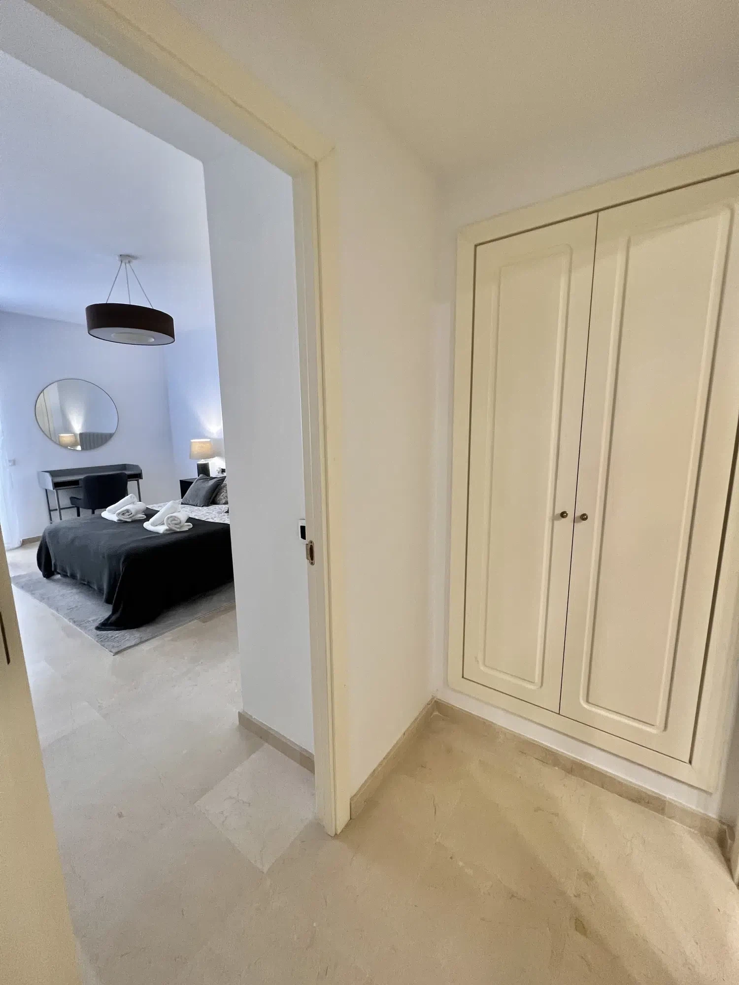 El apartamento se encuentra en la zona de Bahía de Marbella, a menos de 5 minutos en coche del centro de Marbella y su casco antiguo. Como está directamente en la playa, en un minuto tendra los pies en la arena, y en pocos minutos andando por la playa encontrarás el chiringuito más cercano para disfrutar de un buen espeto. Puerto Banús está a unos diez minutos en coche y el aeropuerto de Málaga a unos 35 minutos.