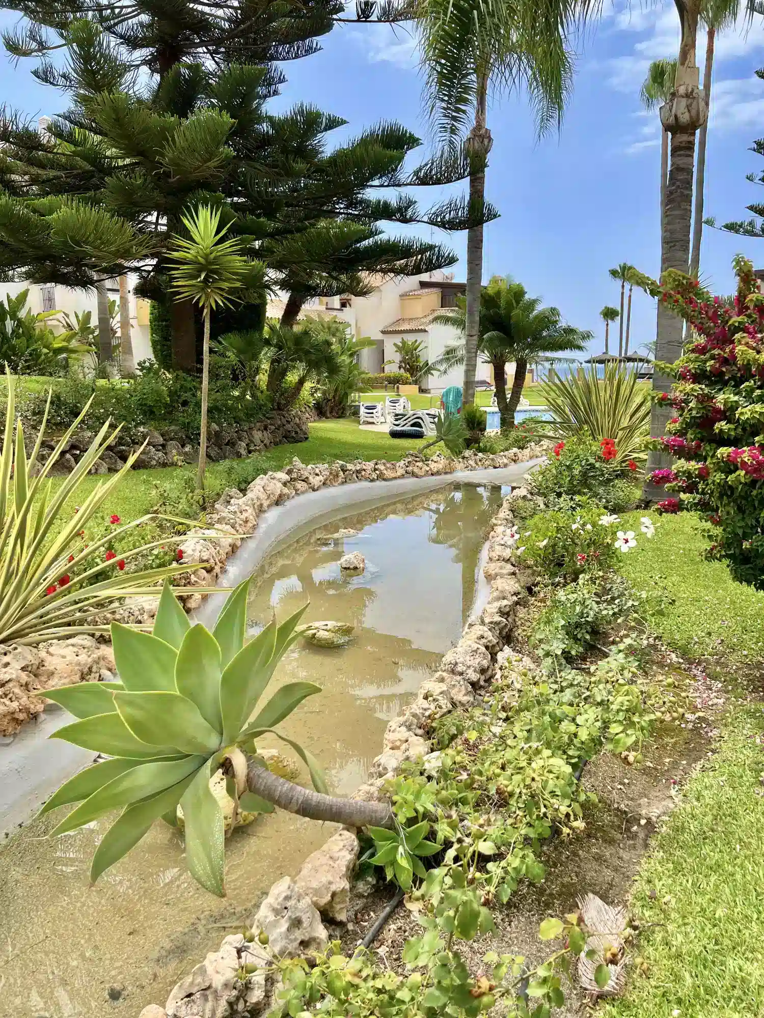 Comunidad cerrada con seguridad las 24 horas, que ofrece dos piscinas de buen tamaño unidas por un pequeño arroyo y acceso directo a la playa desde los jardines tropicales.