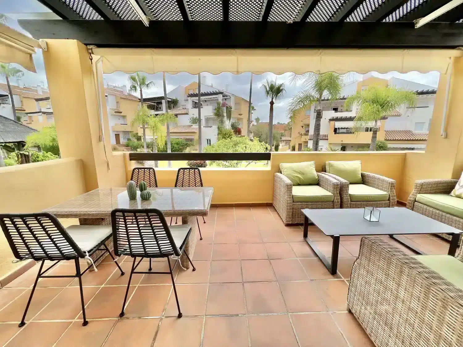 La hermosa terraza a la sombra le permitirá disfrutar de las suaves temperaturas andaluzas en cualquier momento del día.