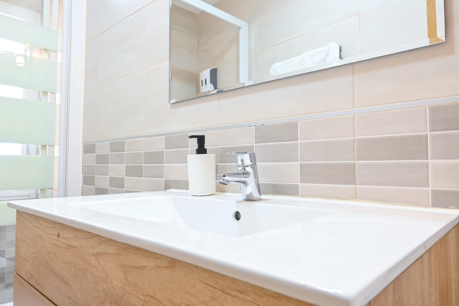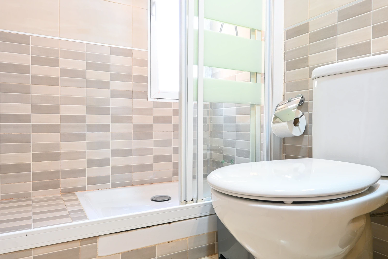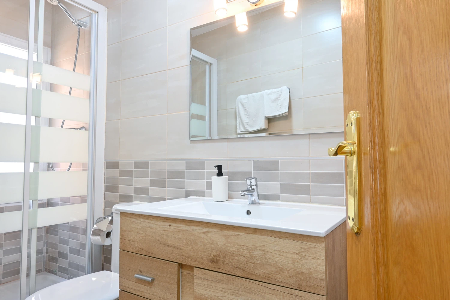 El baño cuenta con un plato de ducha amplio y todas las comodidades necesarias para tu higiene diaria.
