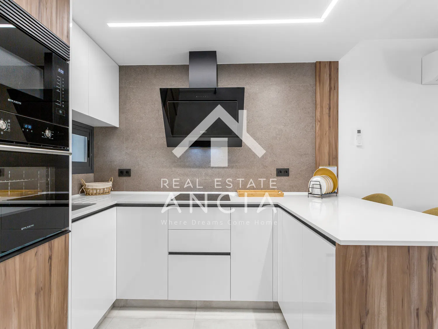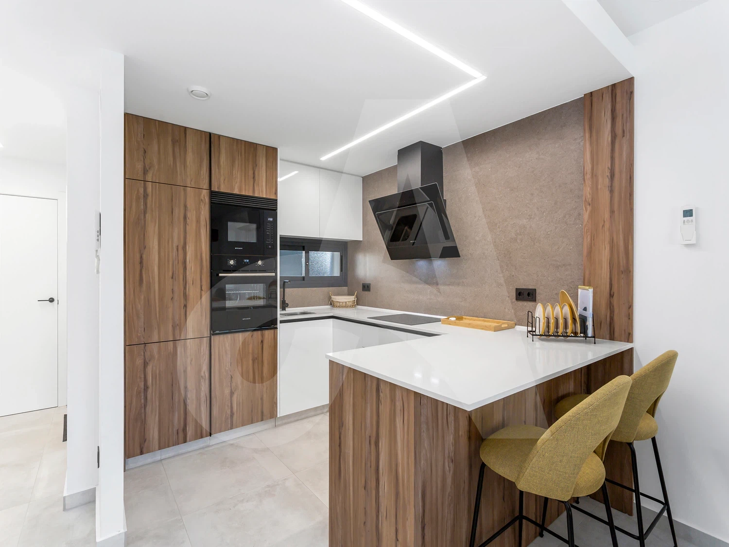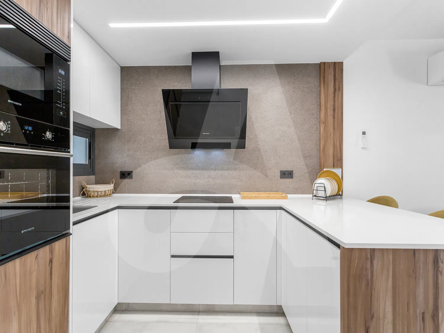 - Una moderna cocina abierta equipada con lavavajillas, congelador, cafetera nespresso, hervidor de agua, tostadora;