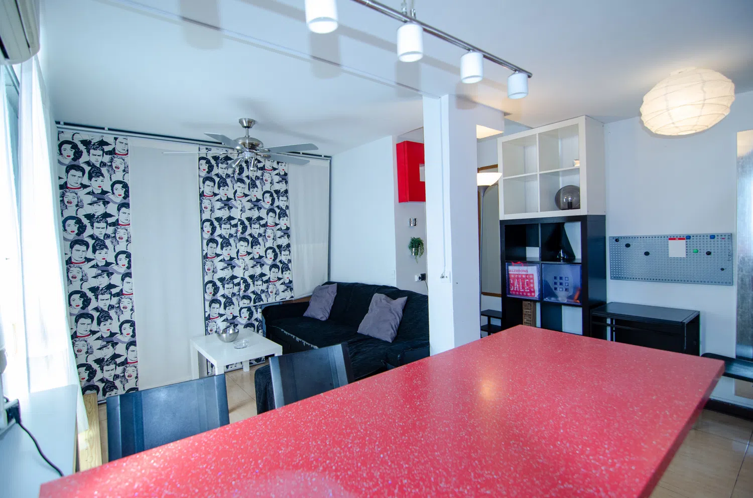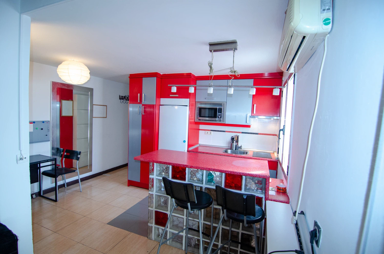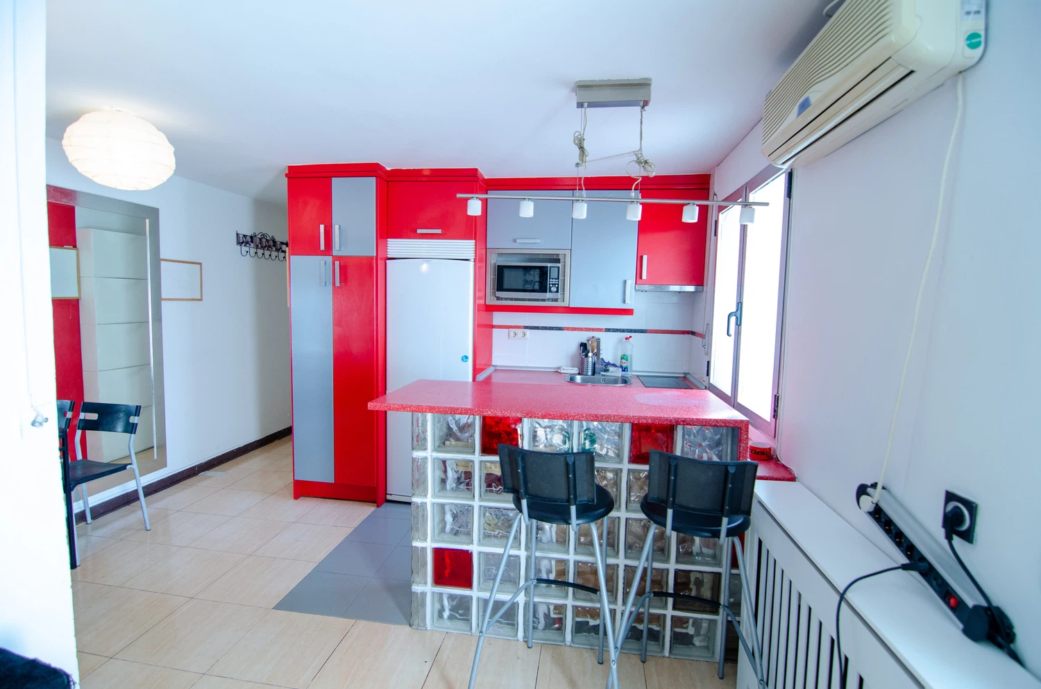 Exclusivo Atico, con terraza muy soleada de 15 m2. Piso de unos 45 m2 más la terraza, distribuidos en un dormitorio, coqueto salón con cocina integrada. Sofá cama por si se quedara algún invitado.