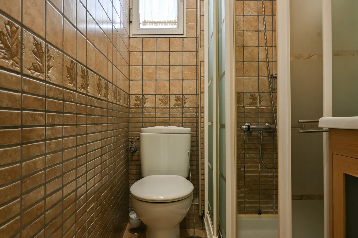 El baño completo, equipado con plato de ducha, te ofrece todo lo necesario para tu higiene personal.