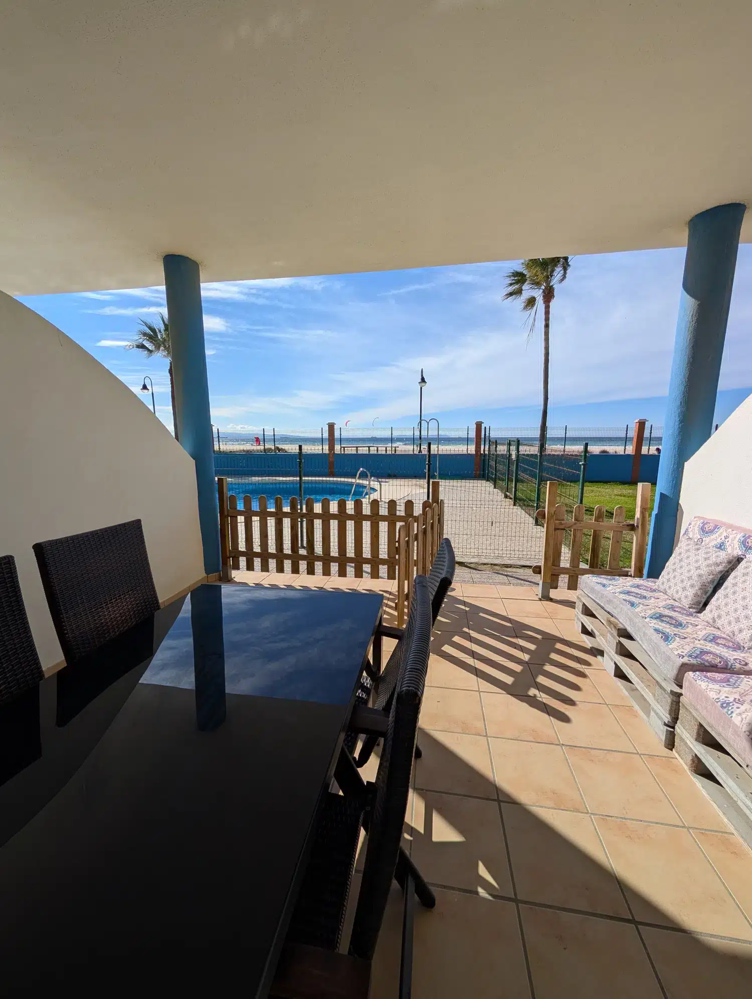 A pocos metros del apartamento, hay una puerta que da acceso directo al paseo marítimo de Tarifa y a las Playa de los Lances.