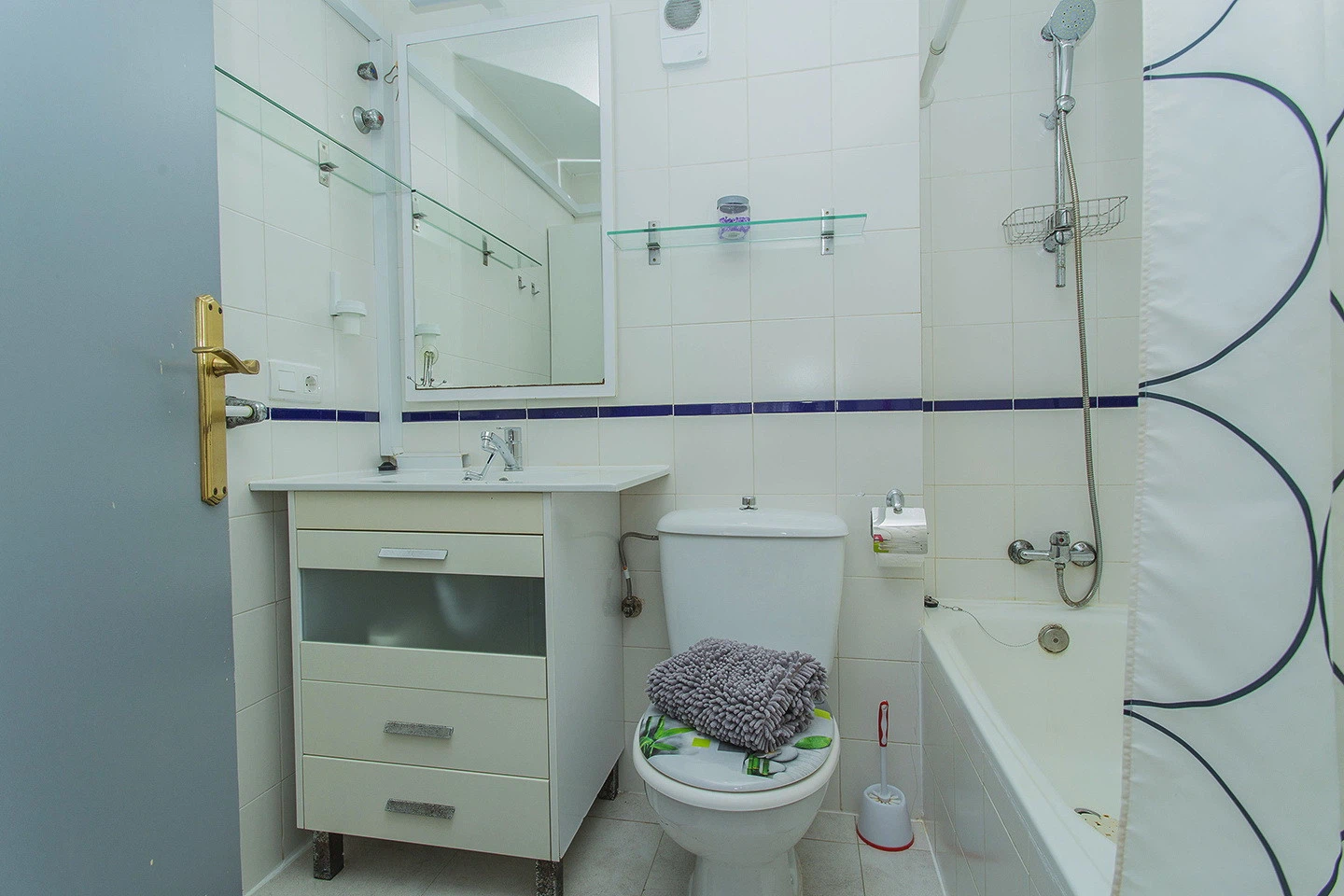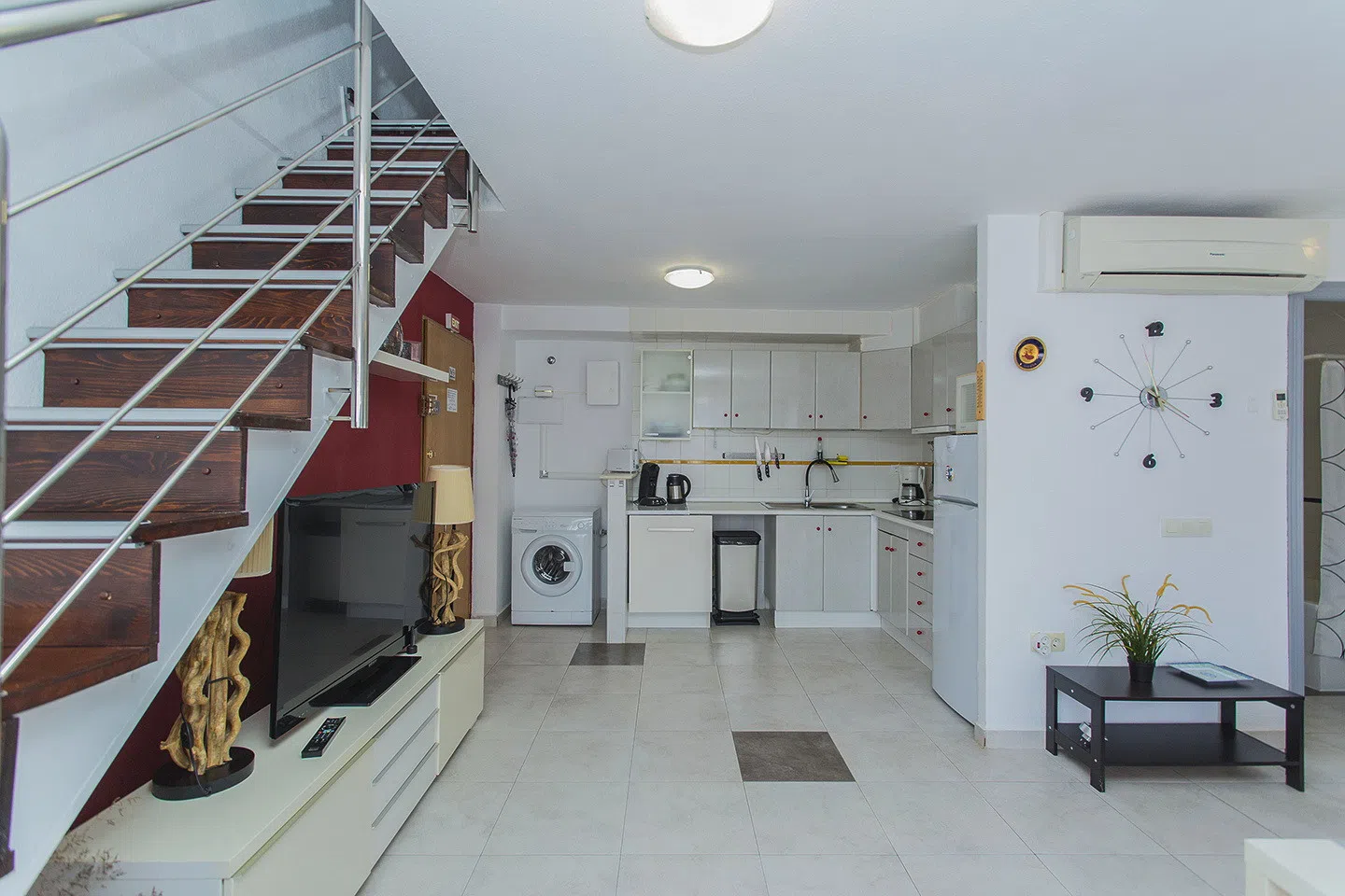 Dispone de 40 m² de terraza-solárium, plancha, acceso internet (wifi), secador, aire acondicionado en salón, 1 ventilador, 1 Televisor.