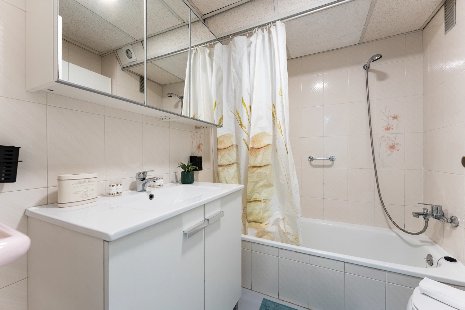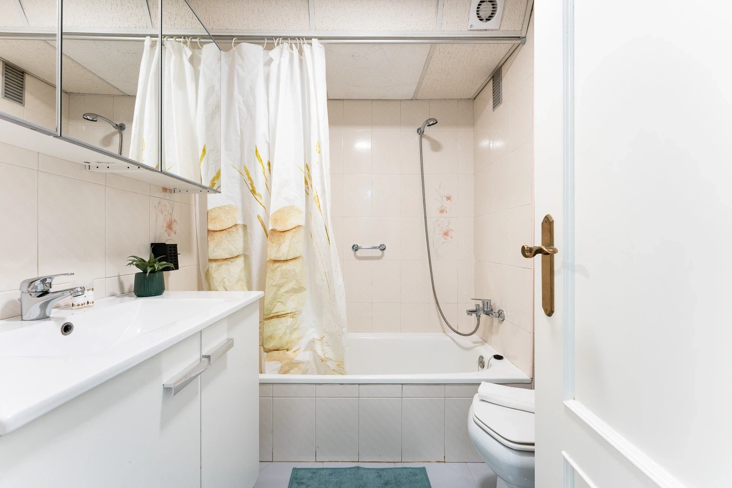 El apartamento ofrece aire acondicionado en todas las estancias y calefacción central para garantizar el máximo confort en cualquier época del año. Además, cuenta con una terraza de 10 metros cuadrados y acceso a una piscina compartida, perfecta para momentos de relajación.
