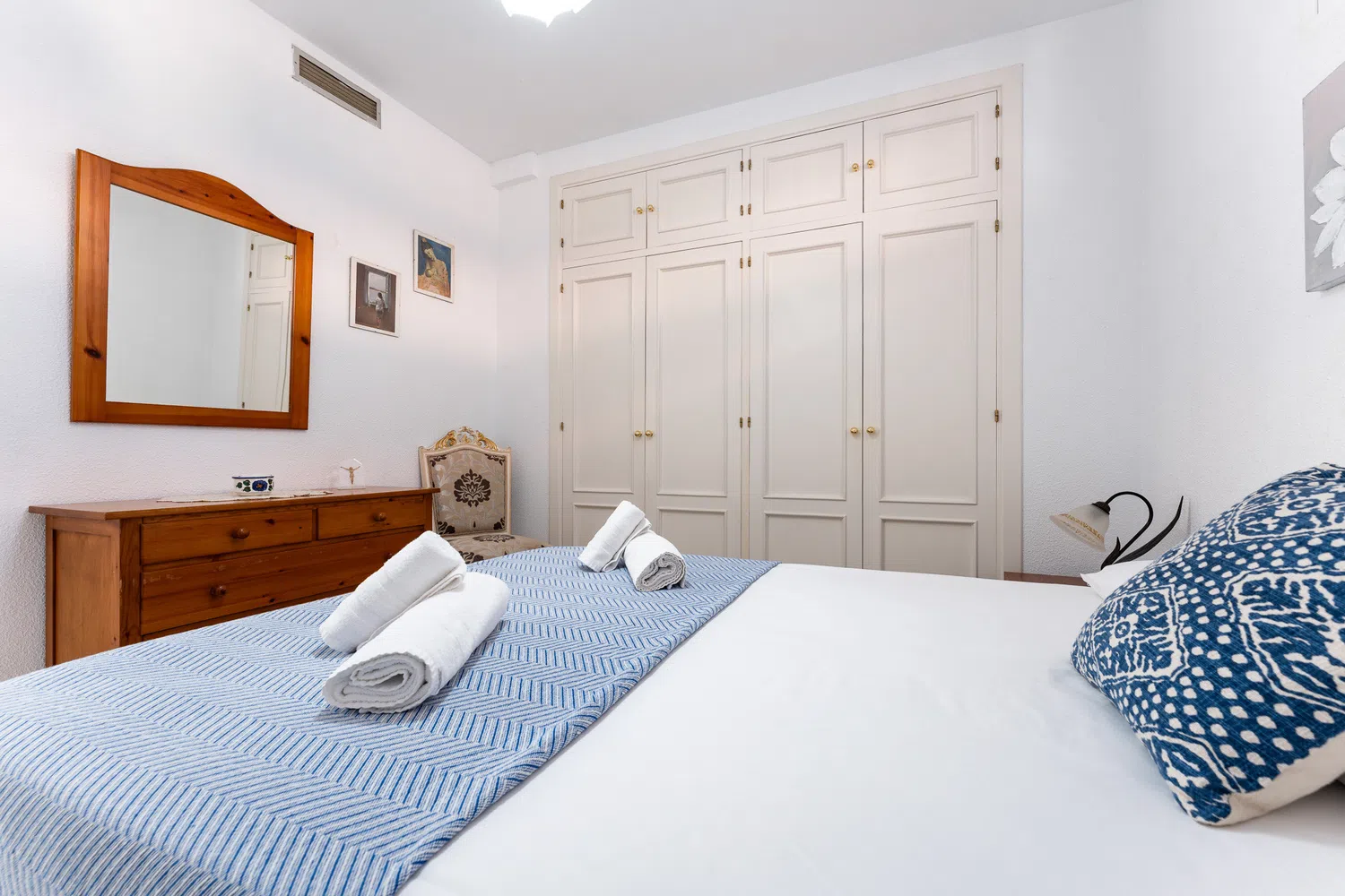 El apartamento incluye una habitación con cama matrimonial y otra con dos camas individuales, perfecta para familias o grupos de amigos. Dispone de un completo cuarto de baño con bañera, proporcionando un espacio relajante después de un día de actividades.