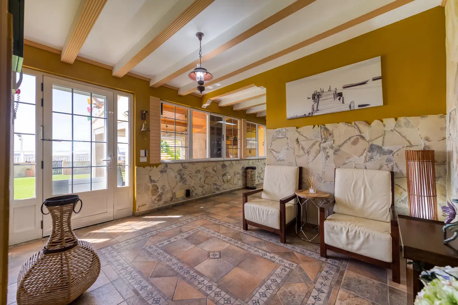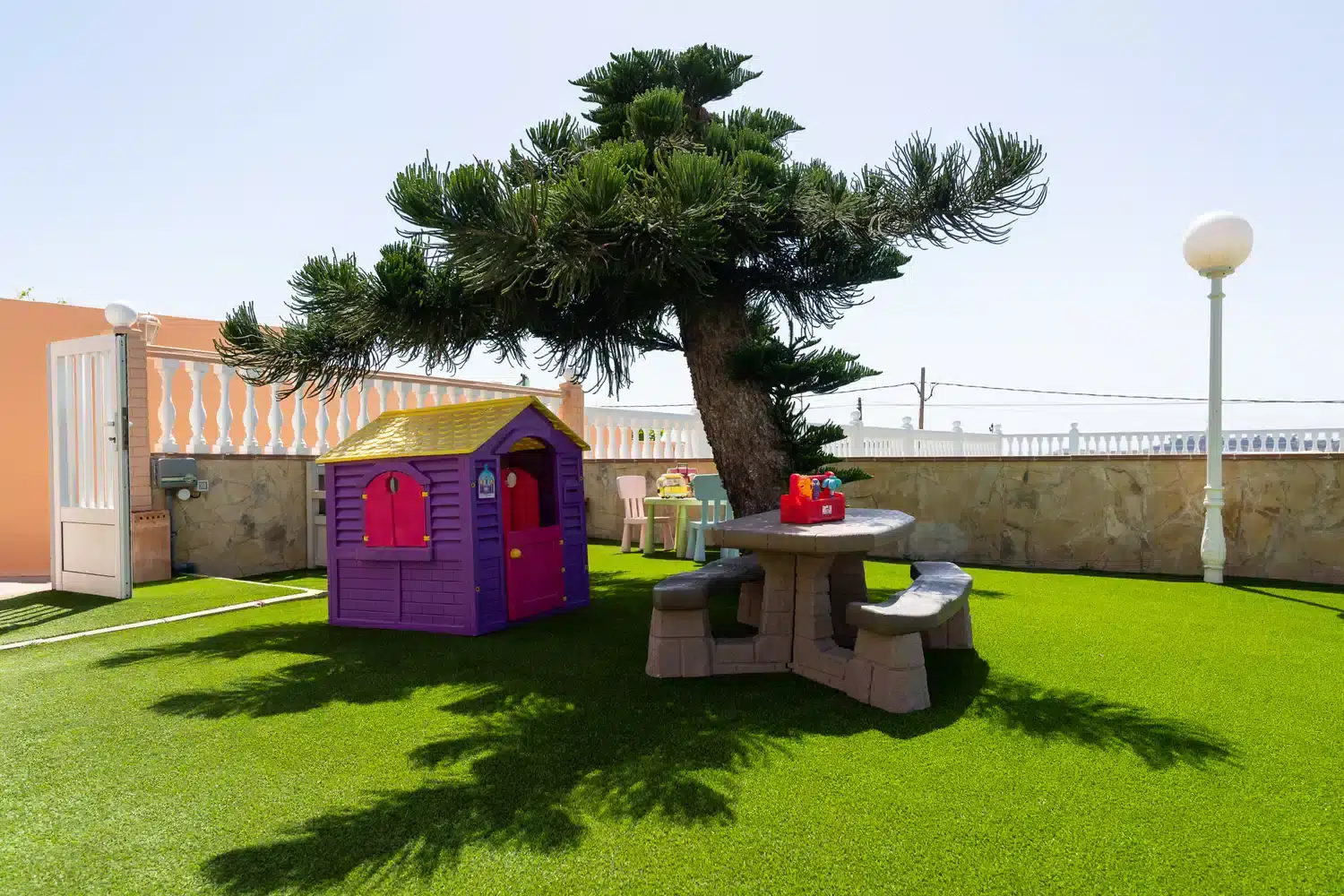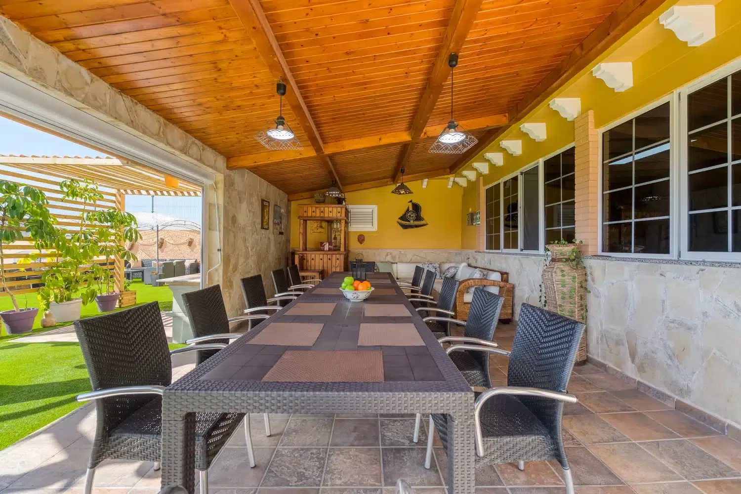 Cuenta con piscina privada (10m x 5m) con climatización incluida, barbacoa de obra, cancha de fútbol, pista de tenis, zona de juegos para niños... La zona exterior dispone de césped artificial en toda su superficie, muy agradable para el día a día. Wifi de alta velocidad e ilimitado en toda la casa.
