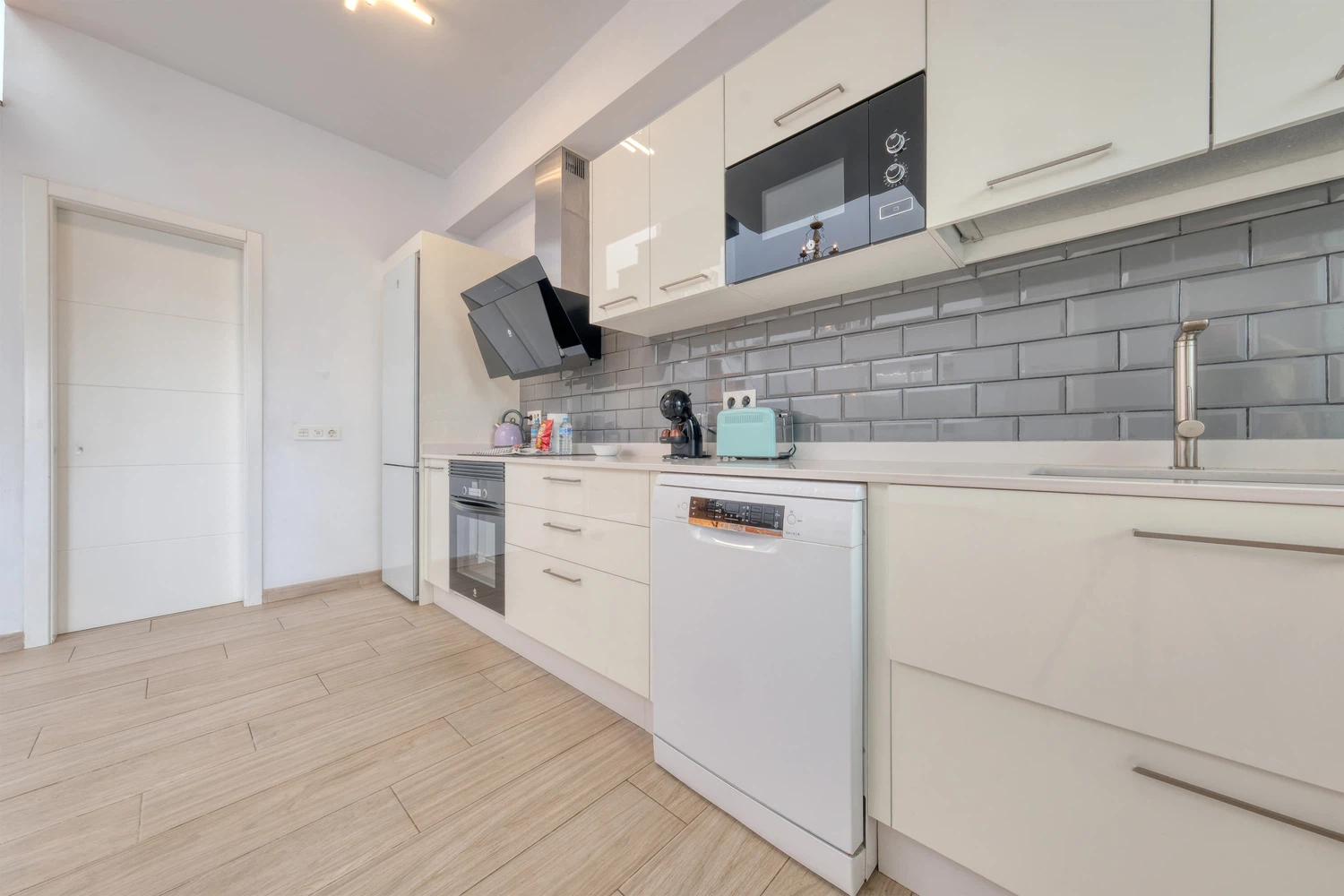 La cocina independiente está totalmente equipada con vitrocerámica, horno, microondas, lavavajillas, nevera, congelador, cafetera, tostadora, hervidor y menaje completo, para que puedas cocinar con total comodidad.