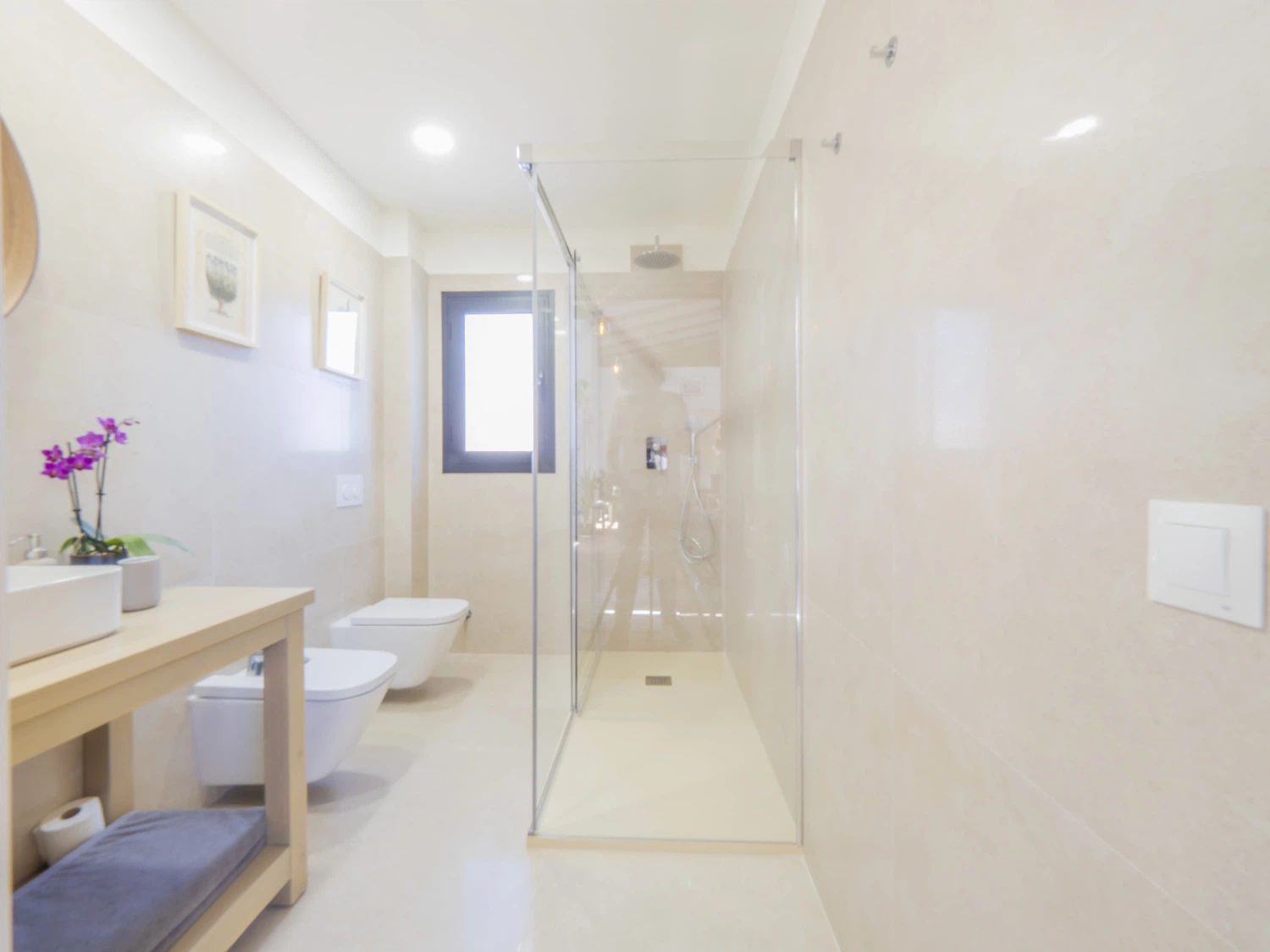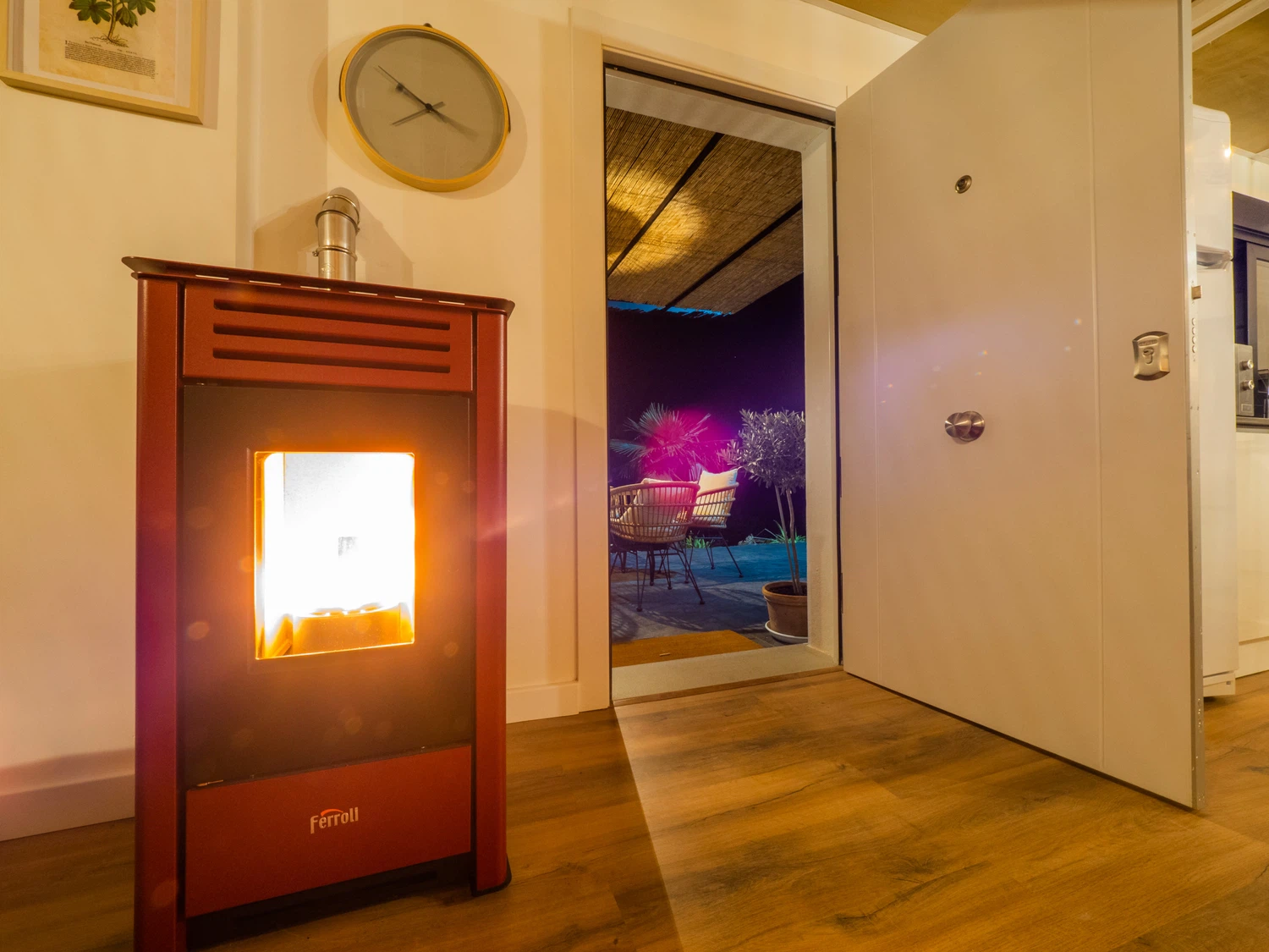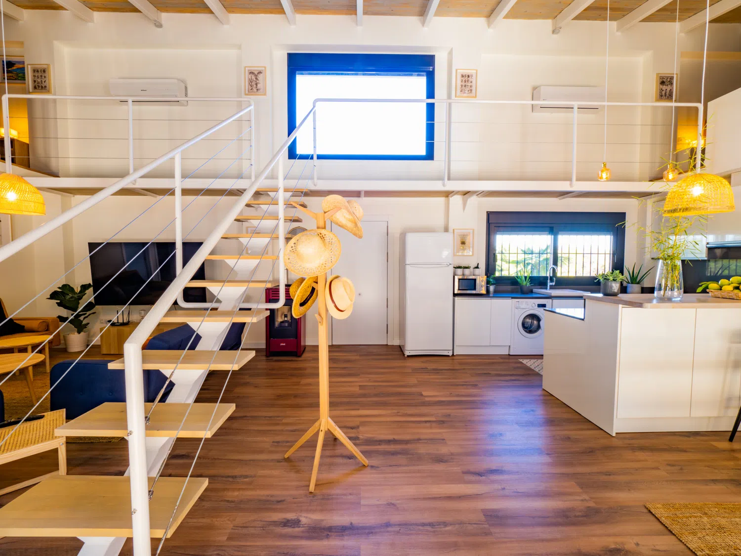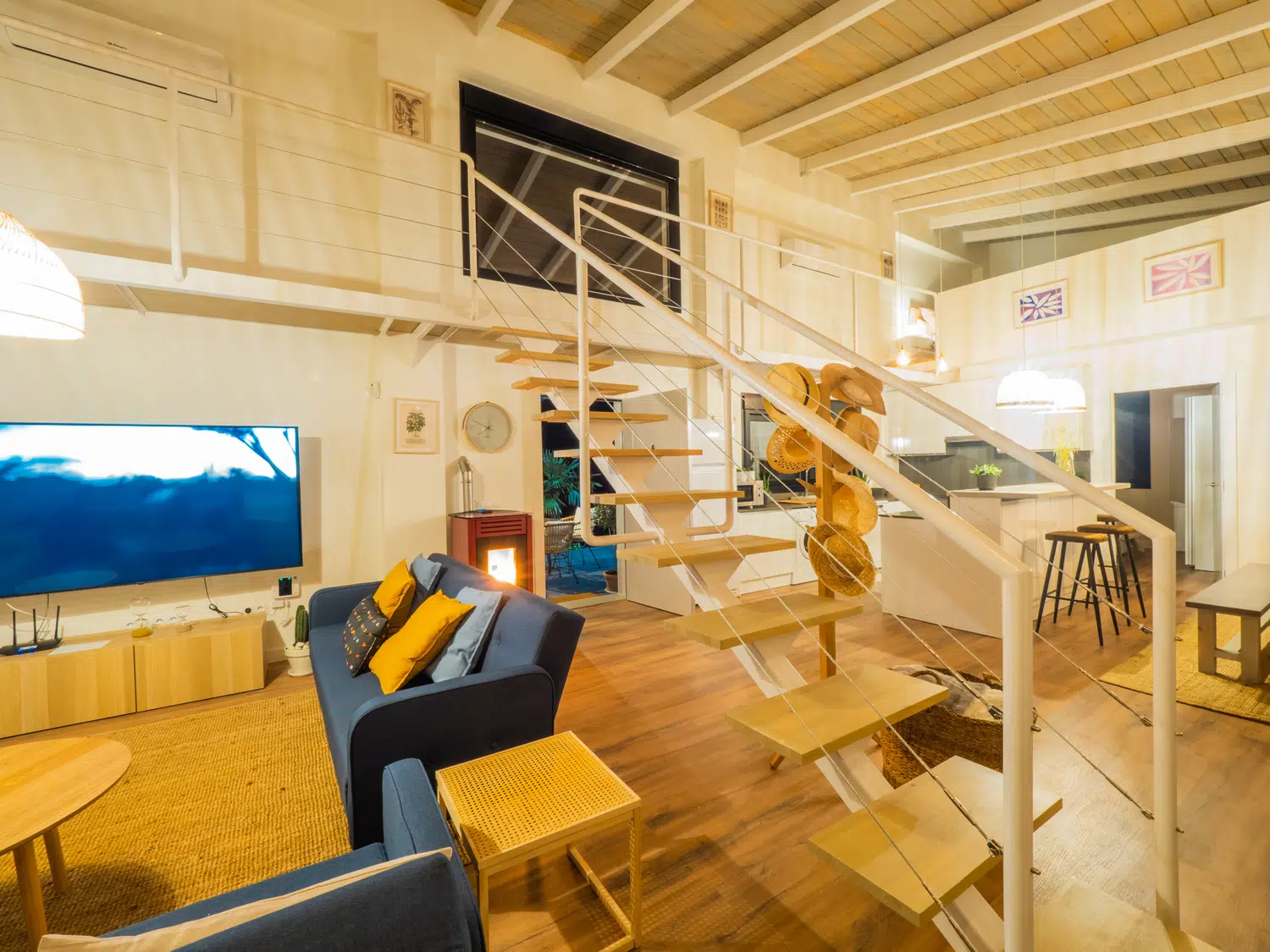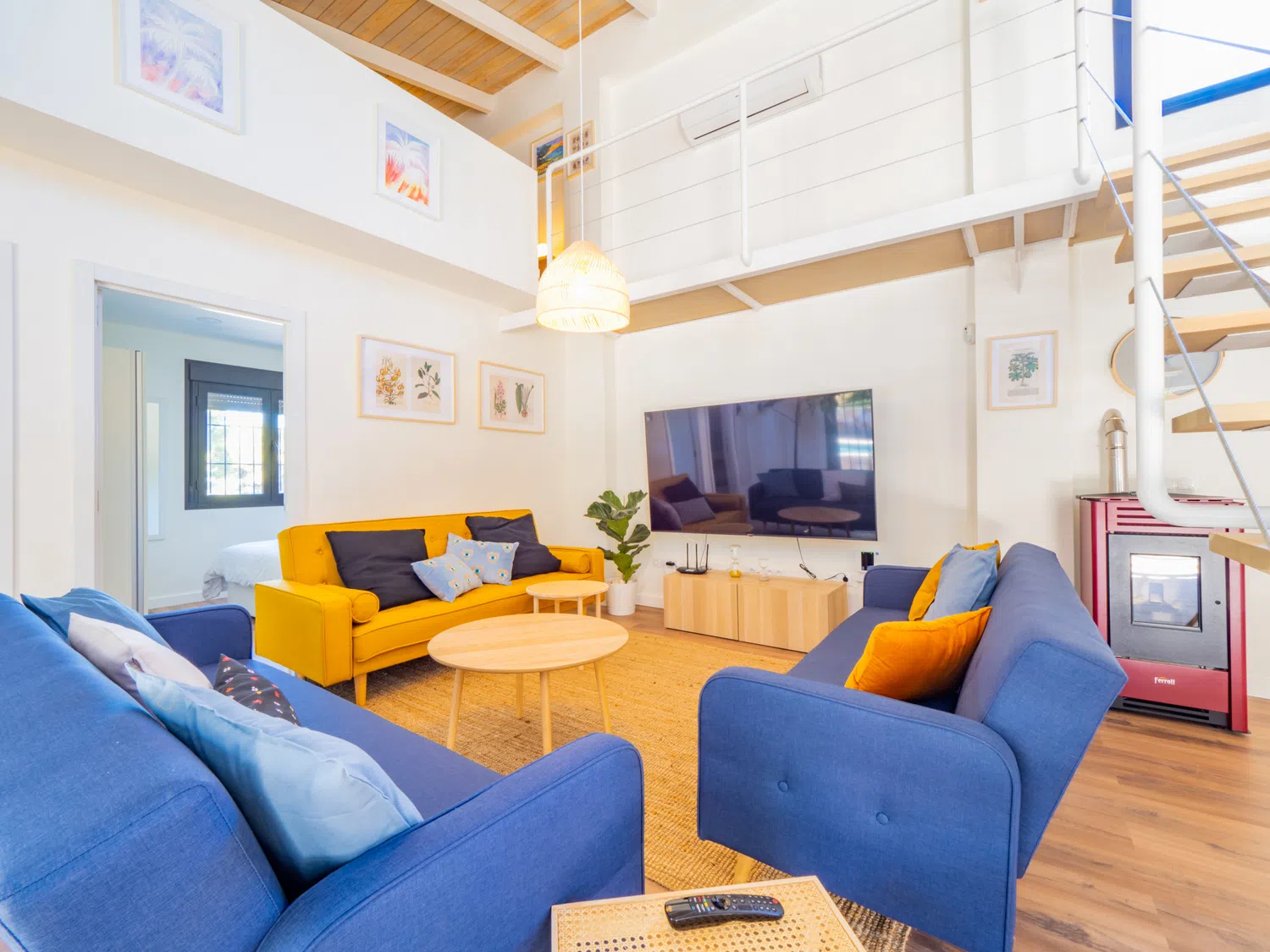 El interior de 150 m² es diáfano, con cocina, comedor y salón conectados para facilitar la convivencia. Cuenta con seis plazas en dormitorios juveniles en la planta superior y dos dormitorios en la planta baja, cada uno con baño completo y ducha. La decoración es cuidada y funcional, con aire acondicionado en todos los espacios, chimenea de pellet, electrodomésticos modernos y wifi de alta velocidad para streaming en la smart TV 📺❄️🔥.