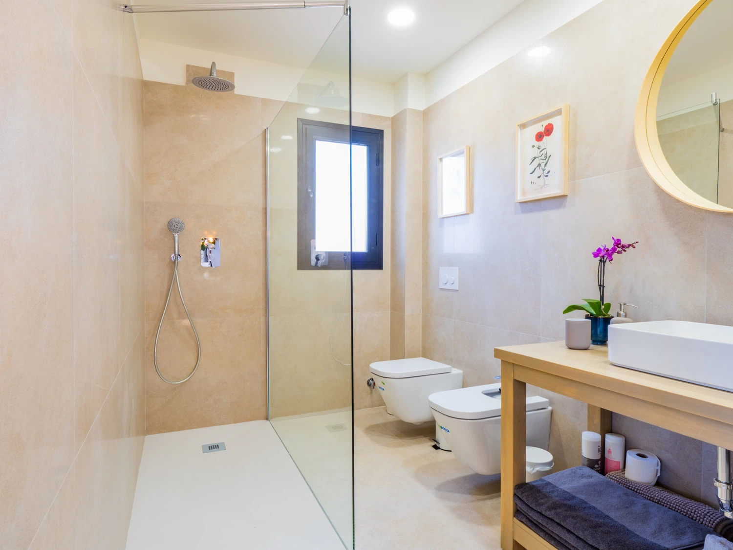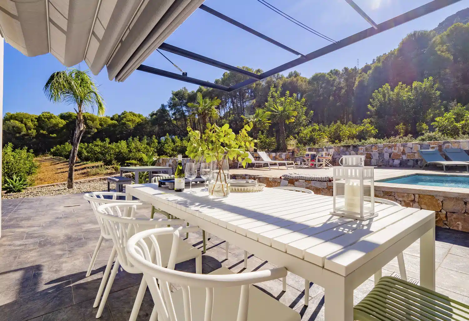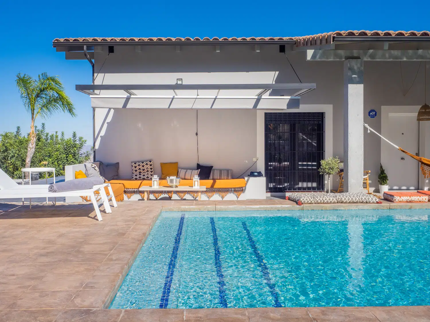 Rodeada de pinares y aguacates, la villa ofrece espacios exteriores con gran intimidad y una piscina cómoda y segura para los más pequeños 🏊♀️☀️. En el área exterior, podrá preparar almuerzos en plancha eléctrica (no se permiten barbacoas por la ubicación). Los tres espacios exteriores con vistas a la montaña y a la bahía de Málaga invitan a relajarse, leer un libro o disfrutar del cielo estrellado con toda la familia 🌟📚.