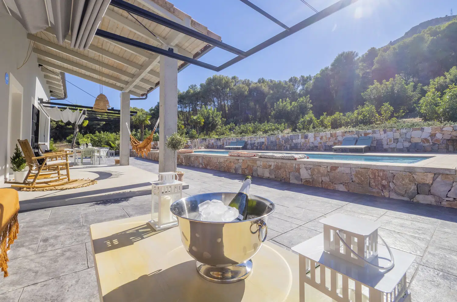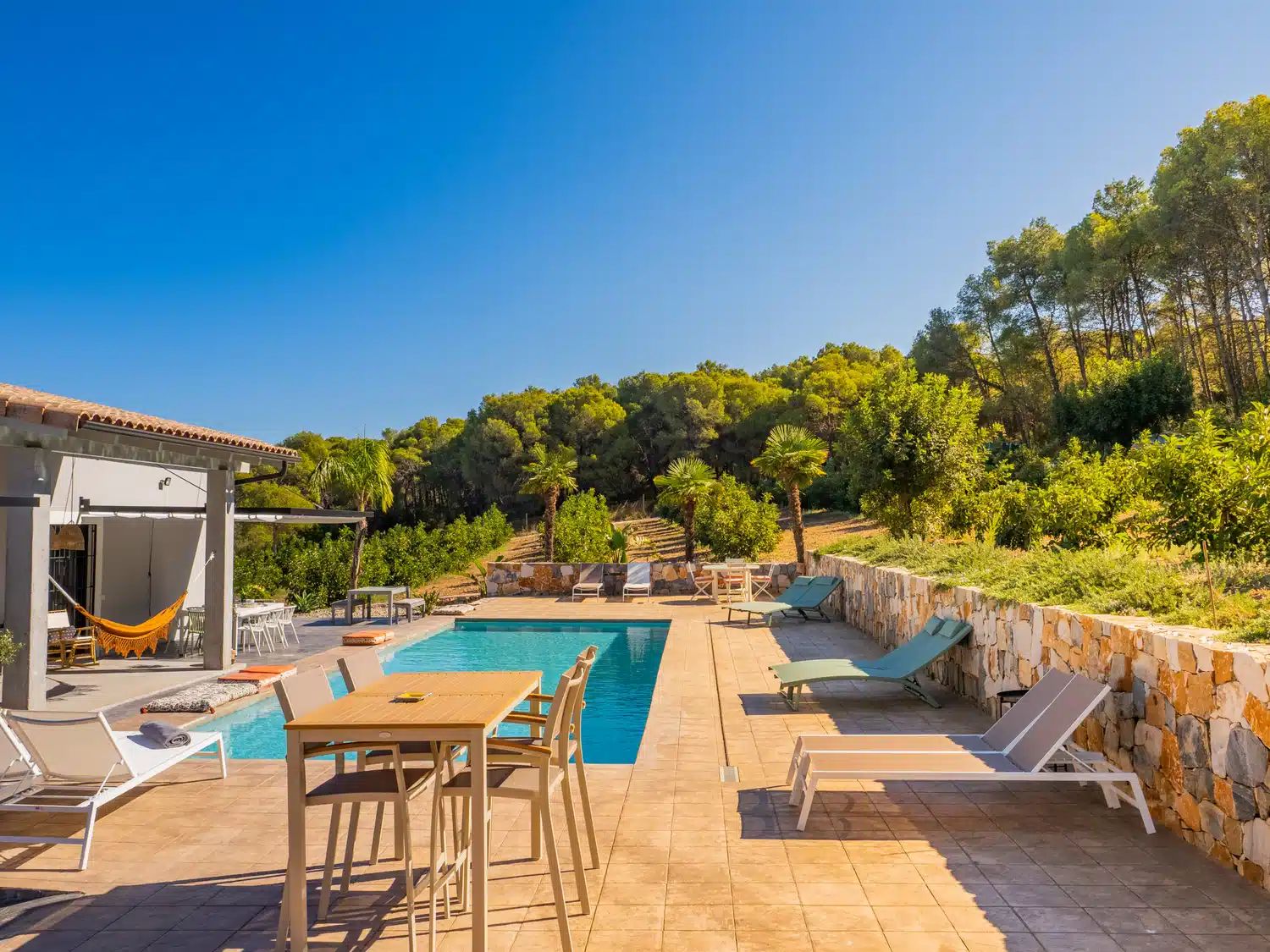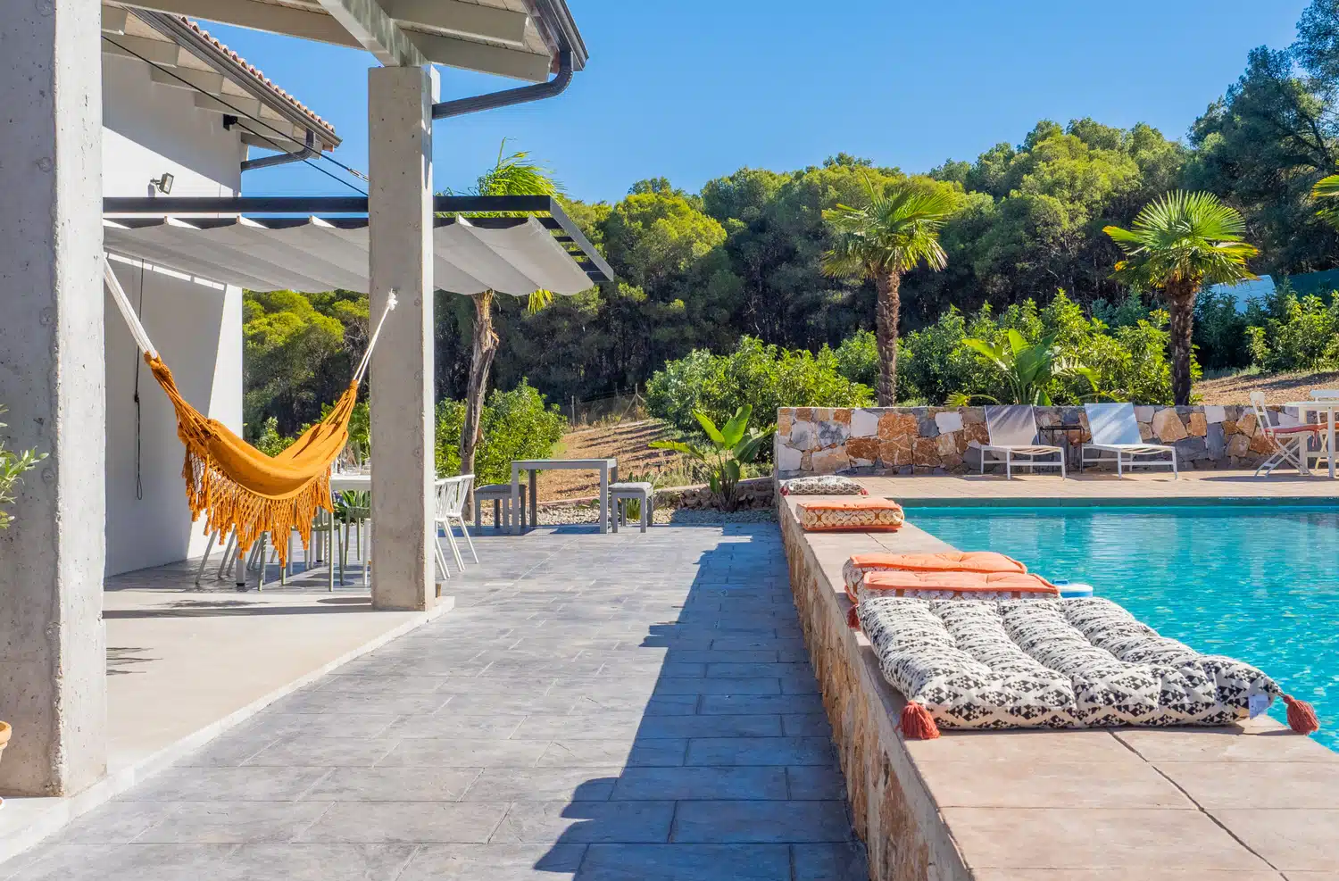 Rodeada de pinares y aguacates, la villa ofrece espacios exteriores con gran intimidad y una piscina cómoda y segura para los más pequeños 🏊♀️☀️. En el área exterior, podrá preparar almuerzos en plancha eléctrica (no se permiten barbacoas por la ubicación). Los tres espacios exteriores con vistas a la montaña y a la bahía de Málaga invitan a relajarse, leer un libro o disfrutar del cielo estrellado con toda la familia 🌟📚.