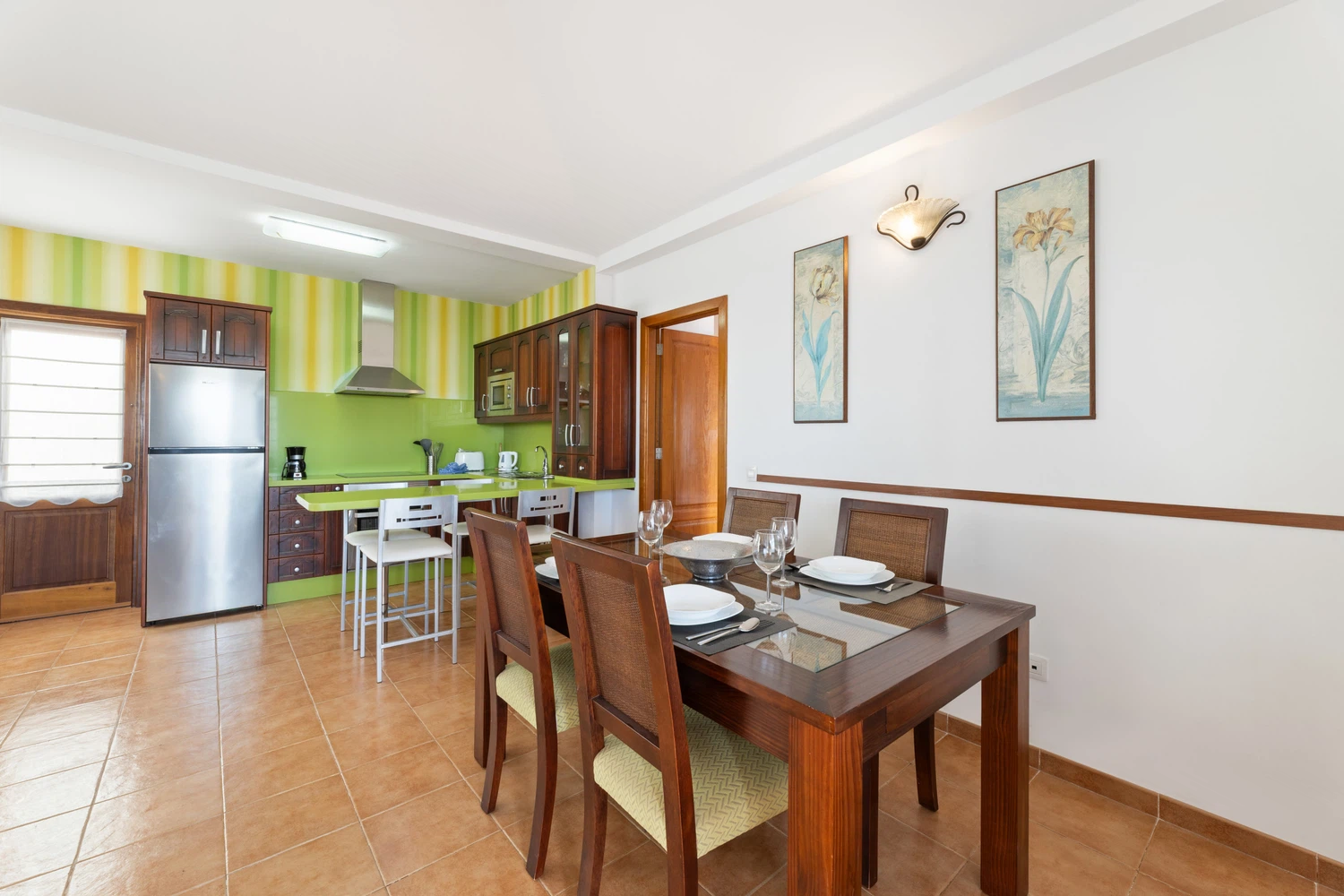 consta de cómodos sofá, Smart TV, wifi, mesa y sillas para seis comensales. Una