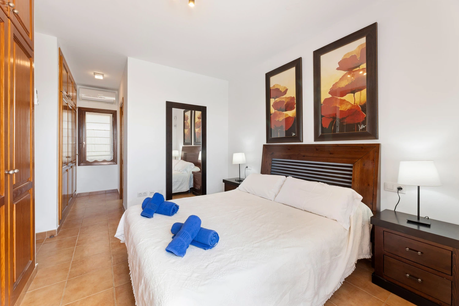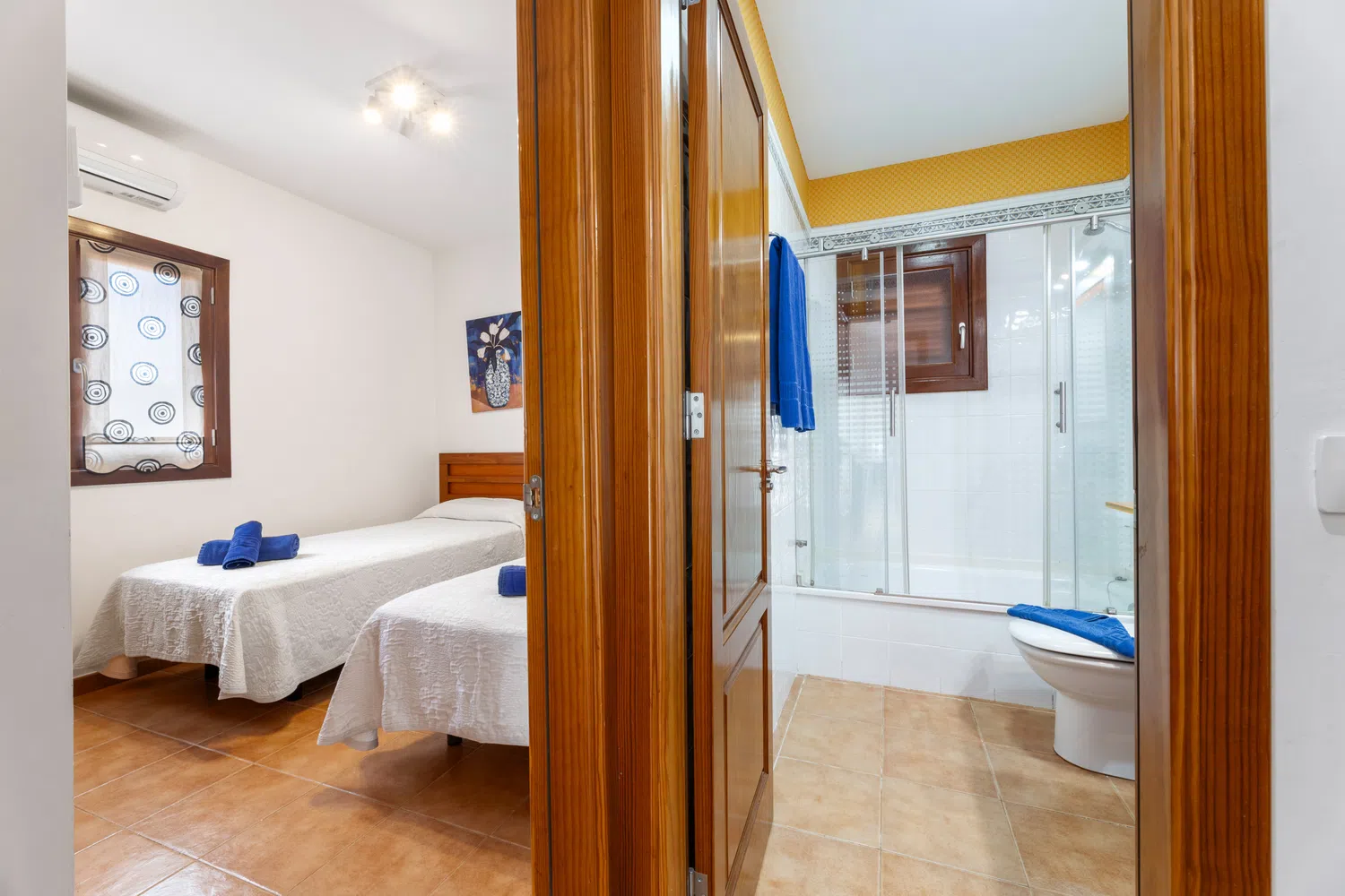 uno con cama de matrimonio y otro con dos camas individuales, comparten baño con