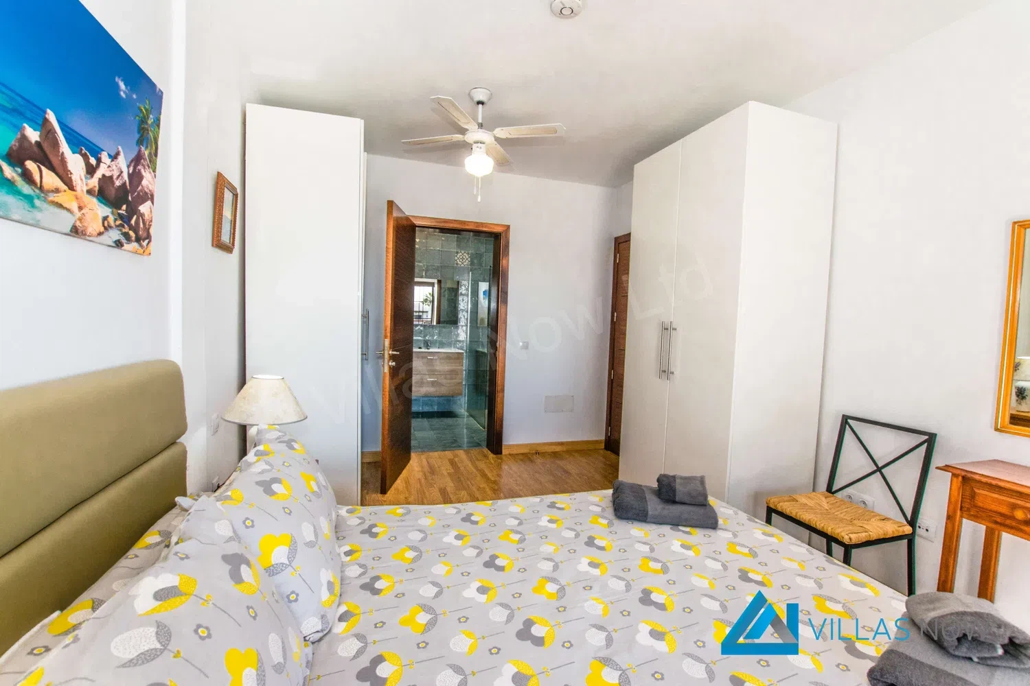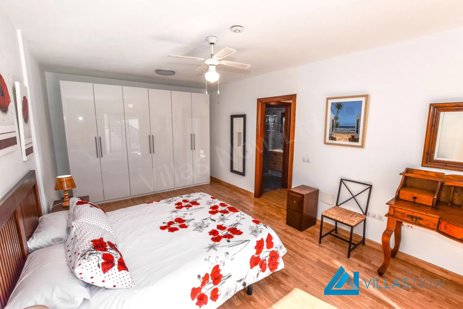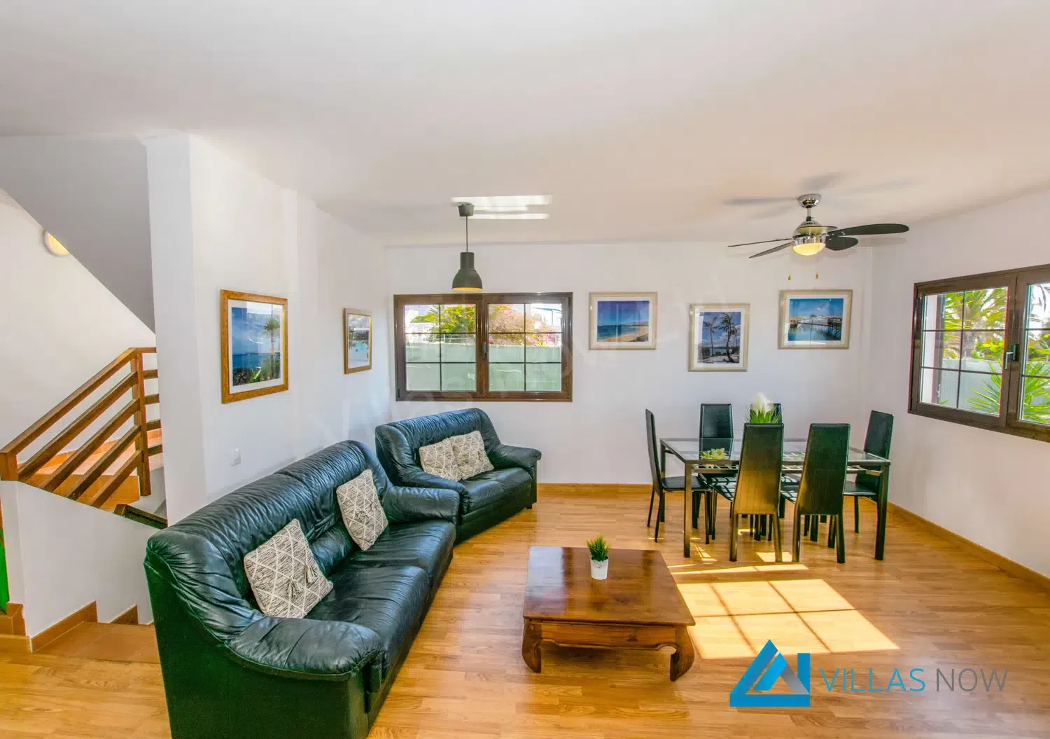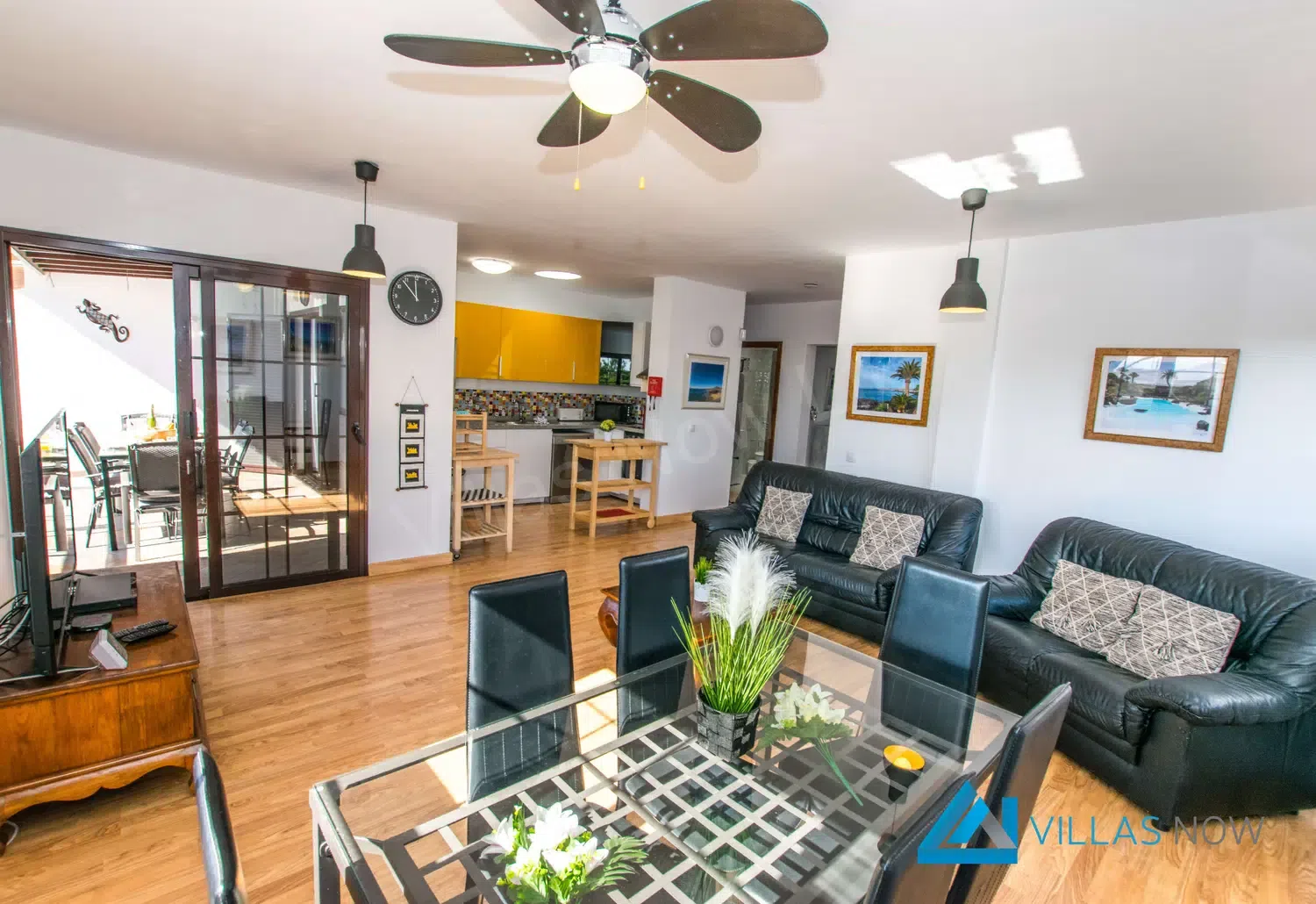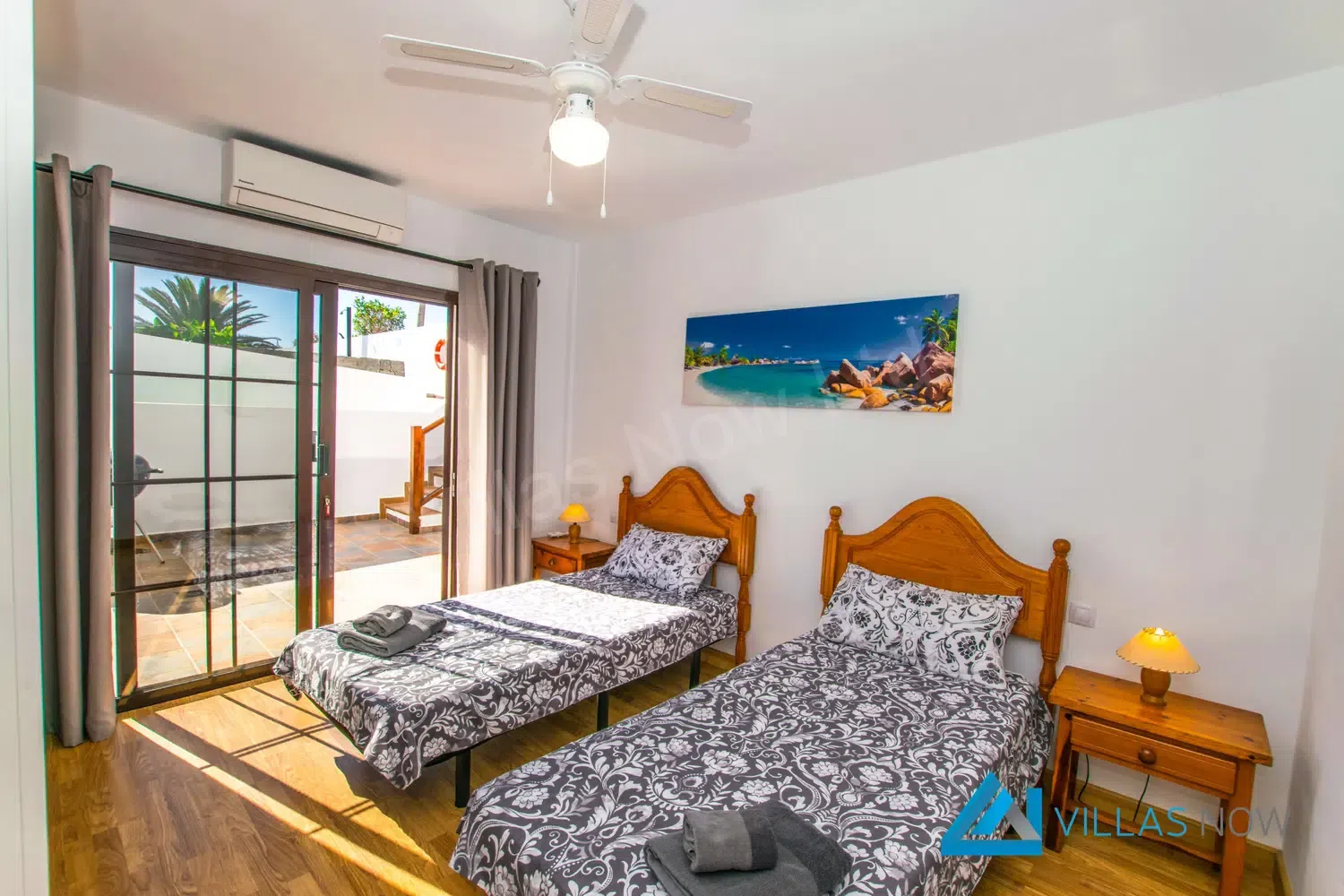 Bienvenido a "Little Paradise", una nueva villa ubicada en la popular ciudad de Playa Blanca en Lanzarote. La villa está distribuida en dos niveles: en la planta baja, al entrar a la casa, hay un amplio salón de planta abierta, un comedor, un área de cocina, el salón tiene 2 sofás de cuero, TV con canales completos del Reino Unido y Europa y reproductor de DVD. Hay 2 mesas de comedor modernas, cada una con capacidad para 6 personas. La cocina está bien equipada con lavavajillas, horno, vitrocerámica, frigorífico de buen tamaño, microondas, tostadora y cafetera. En el mismo nivel, hay una habitación doble con cama King Size y puertas que dan a la terraza superior, esta habitación tiene un baño con ducha grande. Hay un baño familiar justo al lado del pasillo.