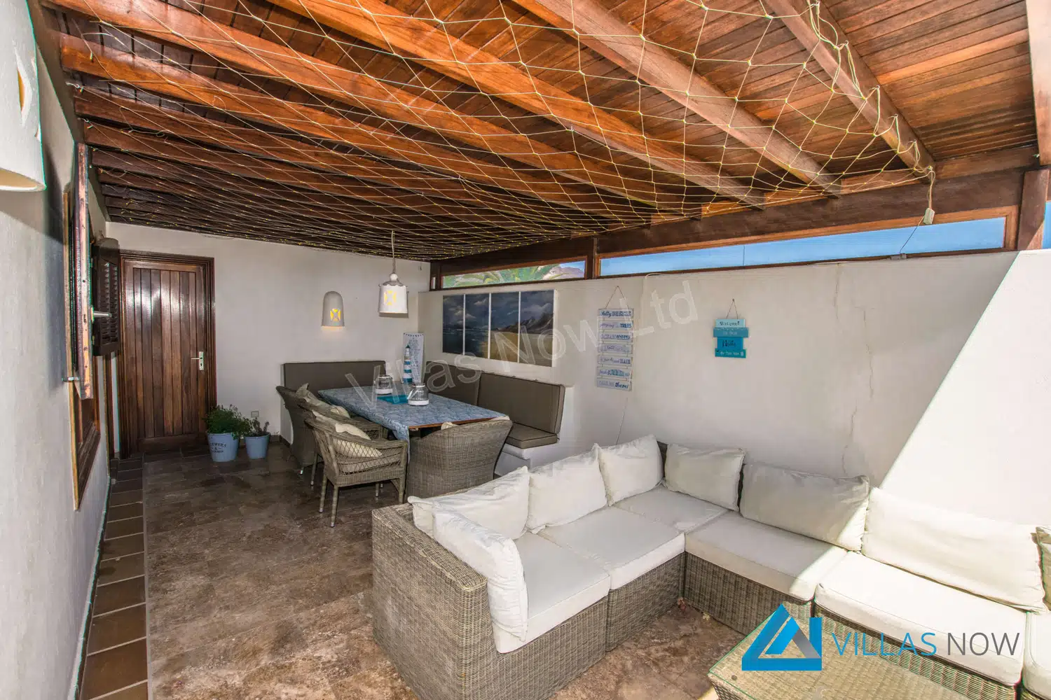 En el interior, Villa Valentina cuenta con suelos de mármol fresco y una decoración canaria auténtica. Con ventanas francesas que dan a la terraza exterior, el salón es el lugar perfecto para momentos de relajación frente al televisor para que te sientas como en casa. La cocina de planta abierta tiene todas las comodidades modernas que necesitas, incluyendo un lavavajillas y una lavadora.