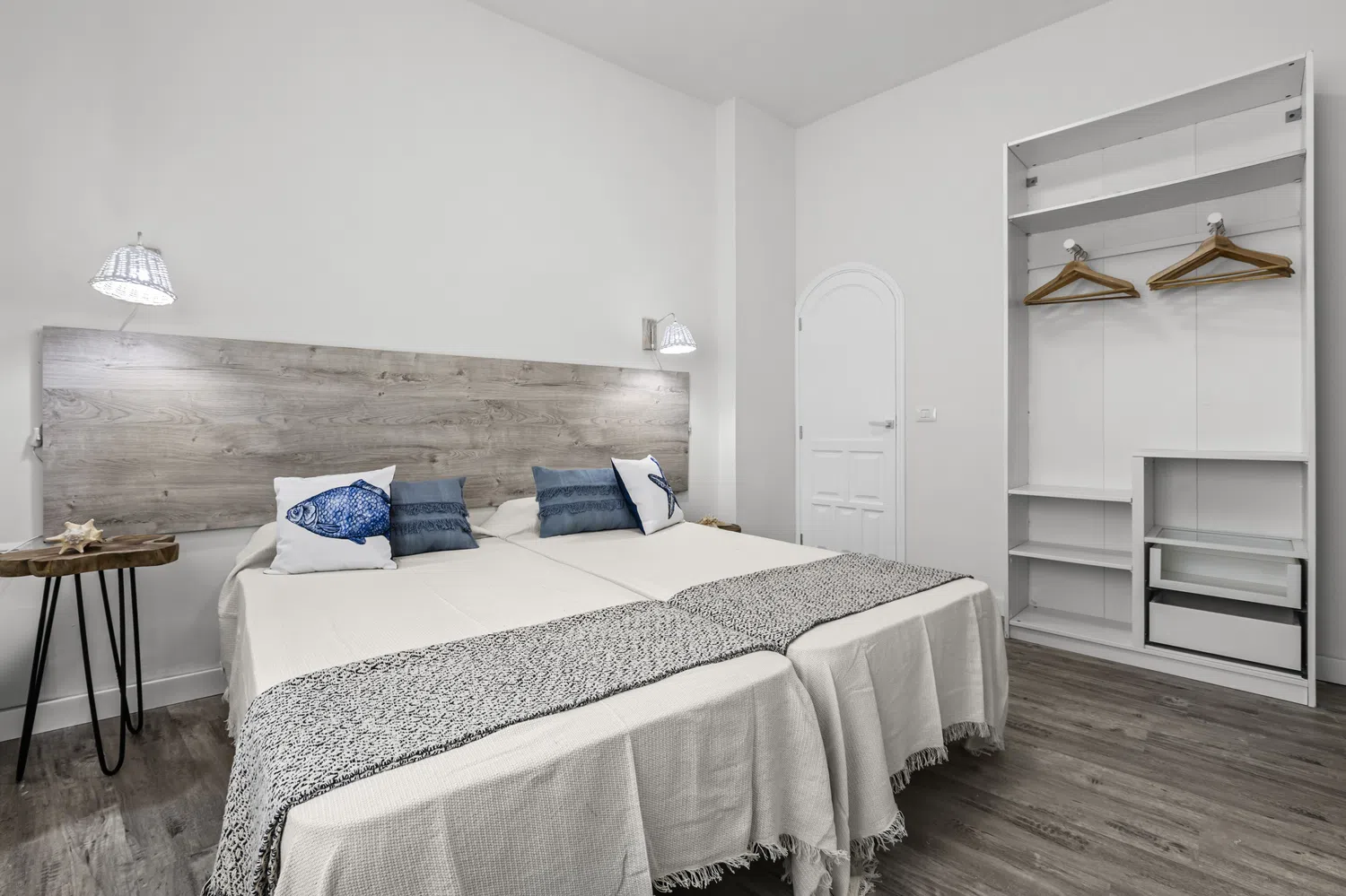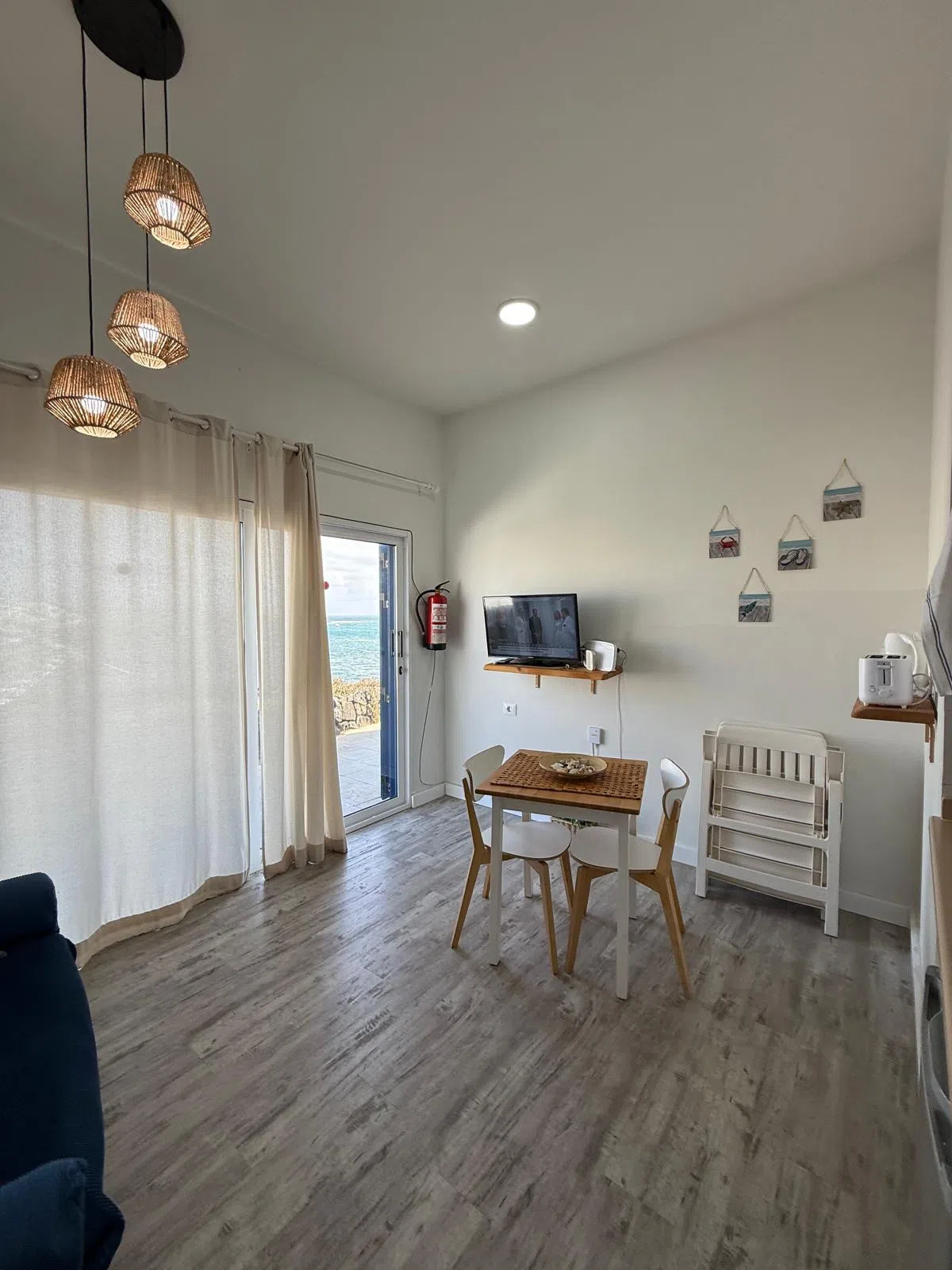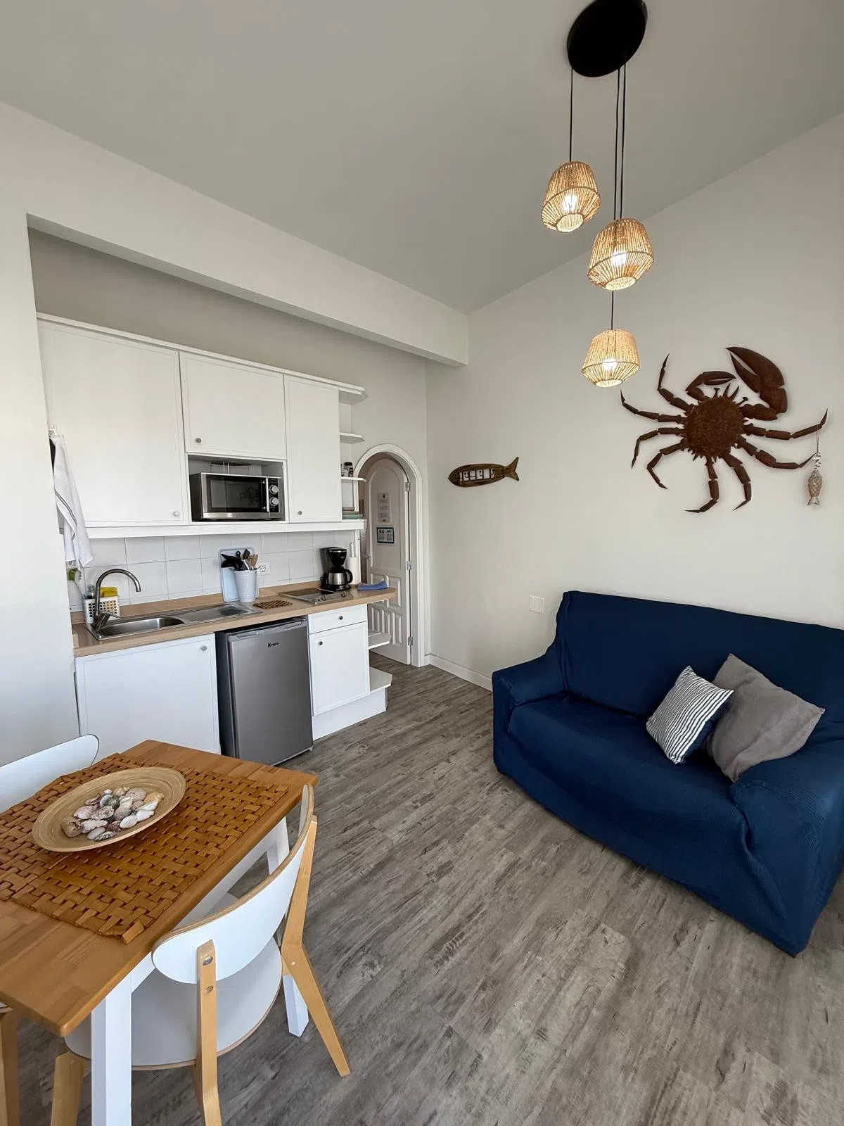 El apartamento cuenta con una habitación equipada con dos camas individuales, ideal para amigos o parejas que prefieren dormir separados. Dispone de un baño completo con ducha, lo que garantiza comodidad y privacidad durante tu estancia. La cocina, aunque pequeña, está bien equipada con nevera, microondas, tostadora, hervidor y menaje básico, permitiéndote preparar comidas sencillas.