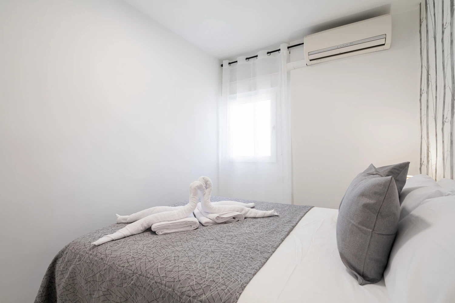 Dispone de 3 amplias habitaciones dobles con camas de matrimonio, una de las habitaciones en suite y 2 cuartos de baño. Cocina independiente con todos las comodidades y por supuesto el apartamento cuenta con aire acondicionado.
