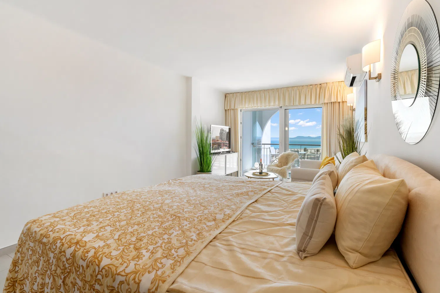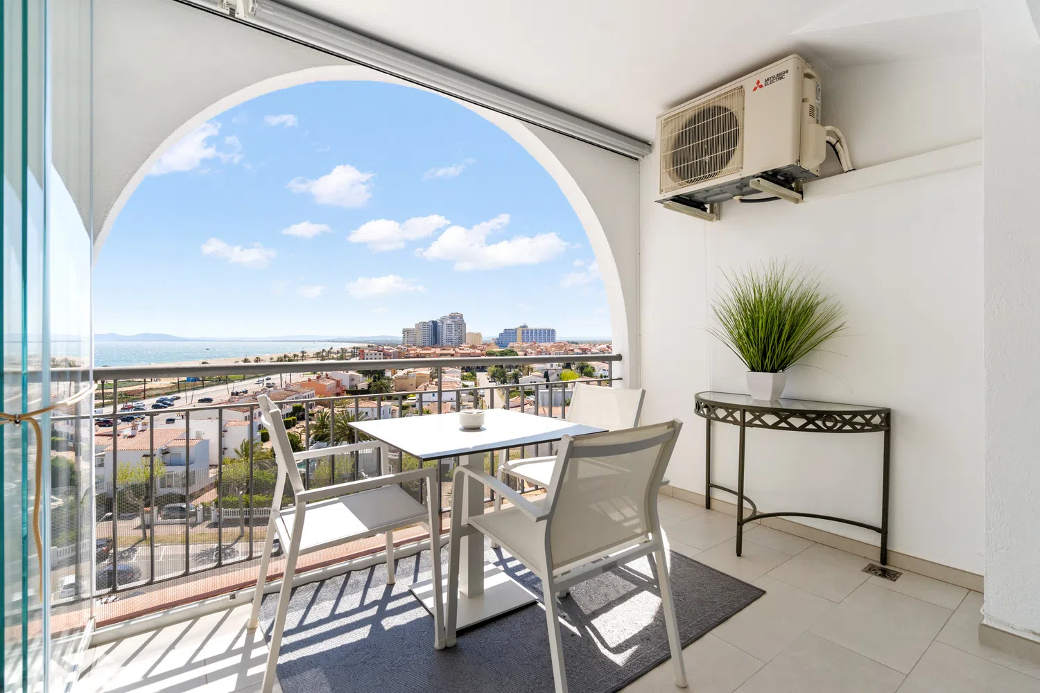 Este estudio completamente Renovado con capacidad para 2 huéspedes, es un apartamento ideal para conocer y disfrutar de la famosa ciudad de Empuriabrava. Se encuentra en la 7 planta de la primera línea de la playa y tiene unas inmejorables vistas .En la terraza podéis se encuentran mesa y sillas para disfrutar de una cena frente al mar y para tomar el sol a la orilla del mar sin salir del apartamento. El apartamento cuenta con un salón comedor con sillas y una mesa. La cocina está equipada con todo lo necesario para preparar platos para cada gusto.