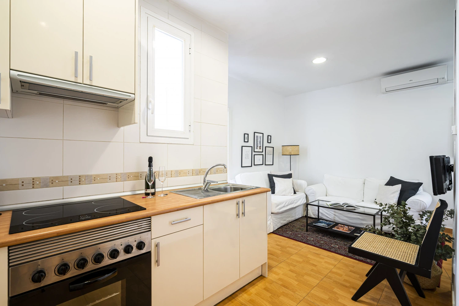 Se distribuye en dos estancias que incluye cocina equipada con frigorífico, placa vitrocerámica, microondas y menaje de hogar, zona de estar/comedor, baño privado con ducha, calefacción, agua caliente, TV y red wifi disponible, la otra estancia es el dormitorio con cama de matrimonio o doble, con un buen armario guardarropa.