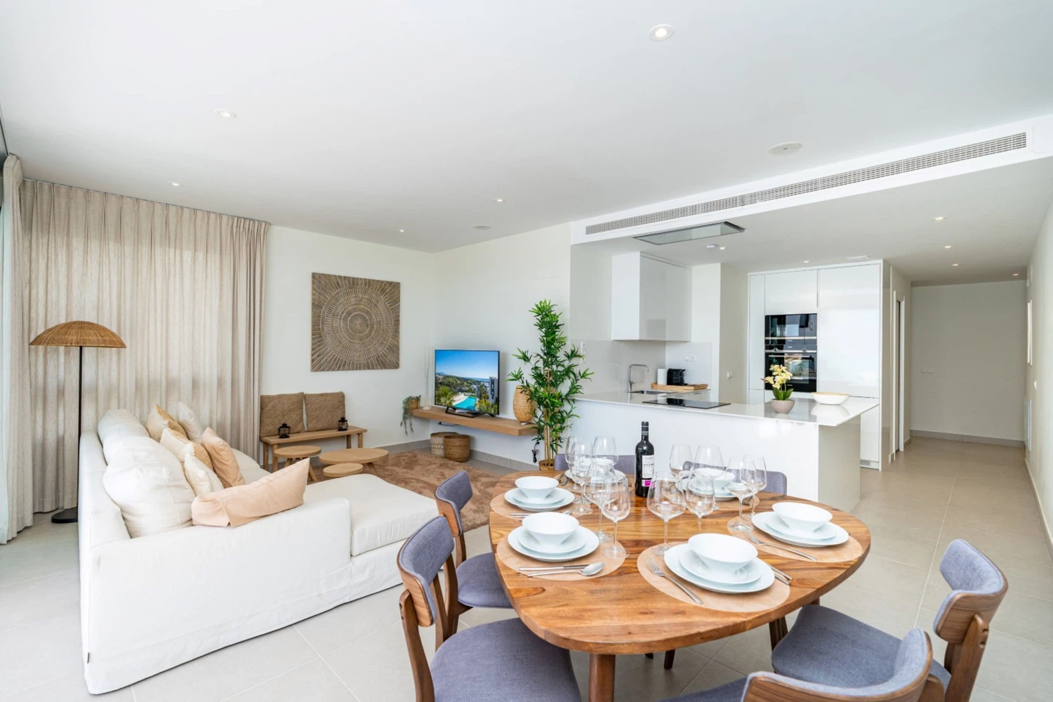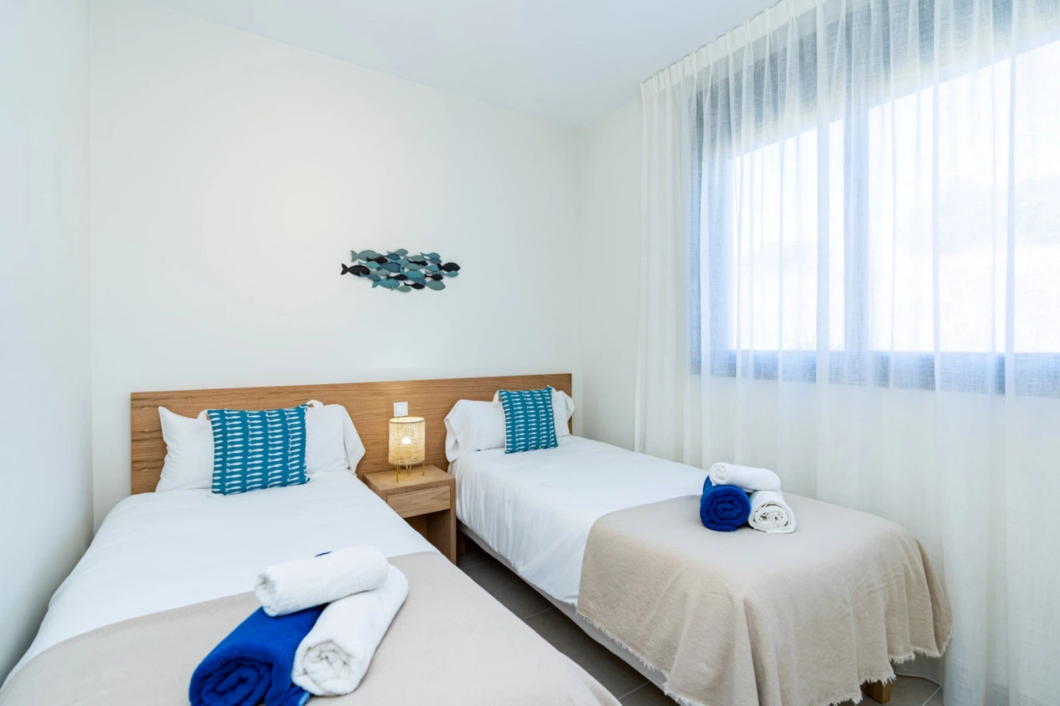Bienvenido a tu retiro junto a la costa. Este meticulosamente diseñado apartamento de 3 dormitorios puede alojar hasta 6 huéspedes, ofreciendo una combinación de elegancia y comodidad. Completamente amueblado con comodidades modernas, incluyendo internet de alta velocidad, está diseñado para garantizar una experiencia sin problemas durante tu estancia. Desde la invitadora terraza con vistas a exuberantes jardines hasta las piscinas comunitarias perfectas para la relajación, cada detalle está diseñado para mejorar tu disfrute.