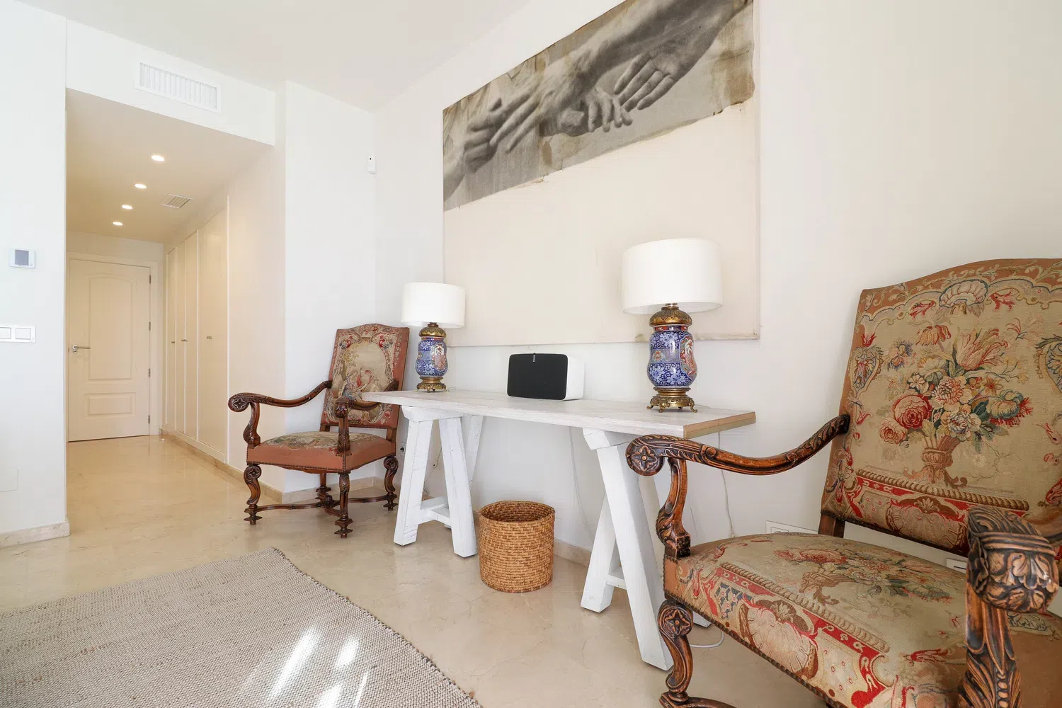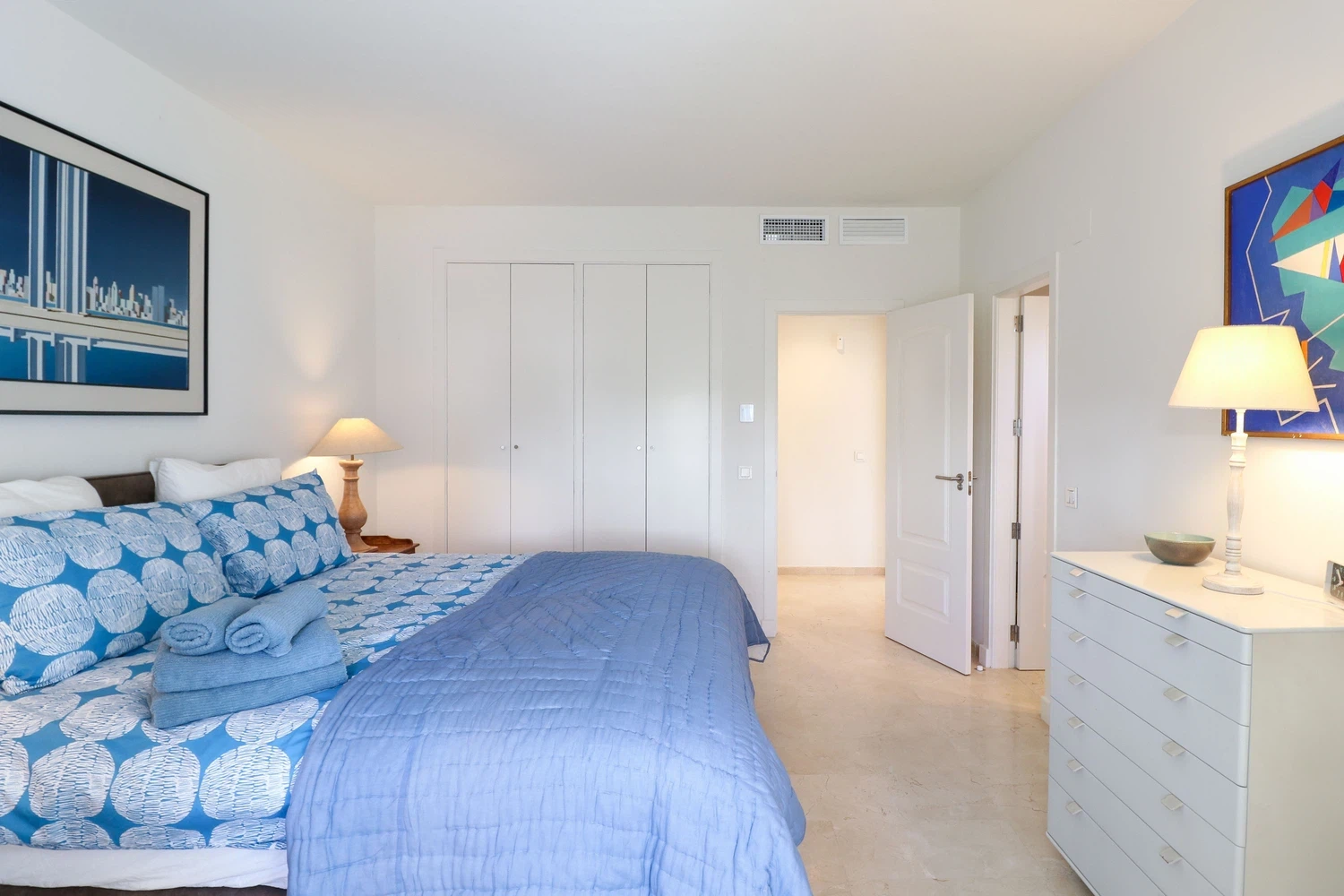 El apartamento ubicado en un complejo de lujo Los Monteros Palm Beach vigilado 24 horas con jardines cuidados y 2 grandes piscinas con numerosas tumbonas. A solo unos pasos del apartamento encontrará un acceso directo al paseo marítimo, a las mejores playas de Marbella y las dunas de arena (reserva ecológica - Dunas de Marbella). Restaurante Palm Beach justo al lado del complejo sirviendo excelentes comidas y bebidas durante la temporada de verano. Famoso restaurante de playa Trocadero Arena, así como instalaciones de kitesurf y windsurf a solo 5 minutos caminando. Marbella está a solo 30 minutos caminando por la playa.