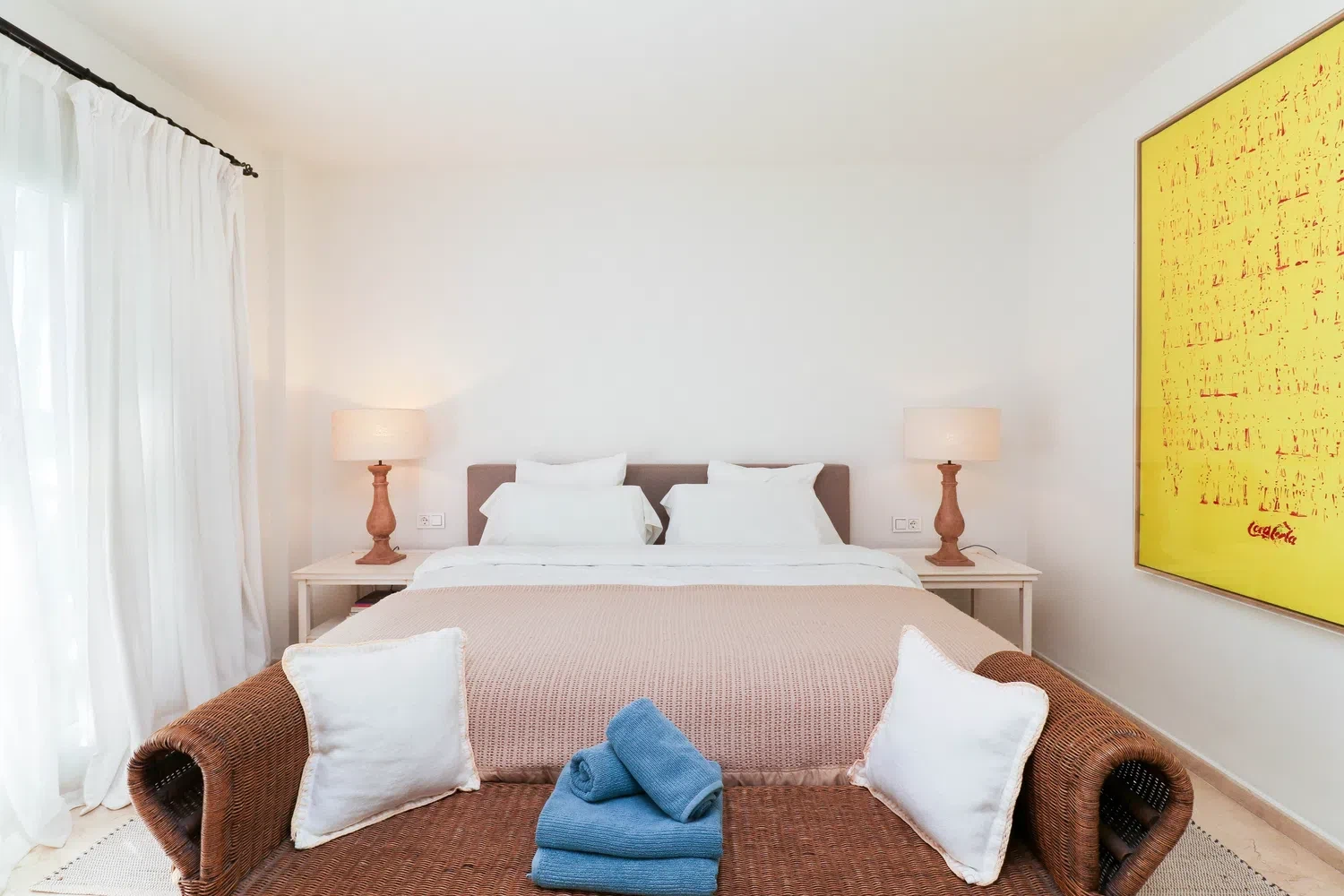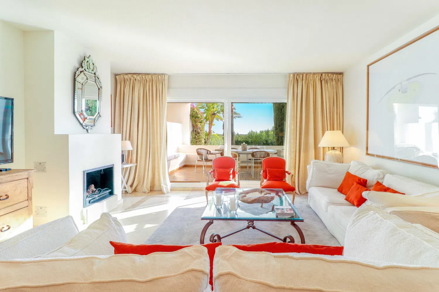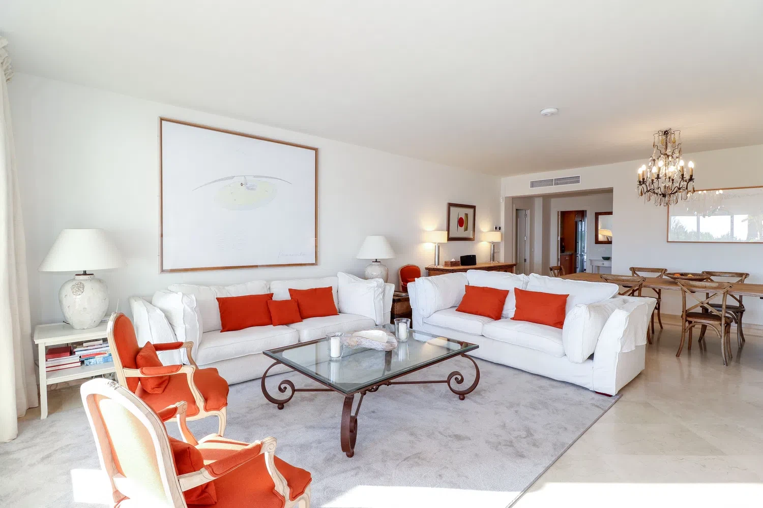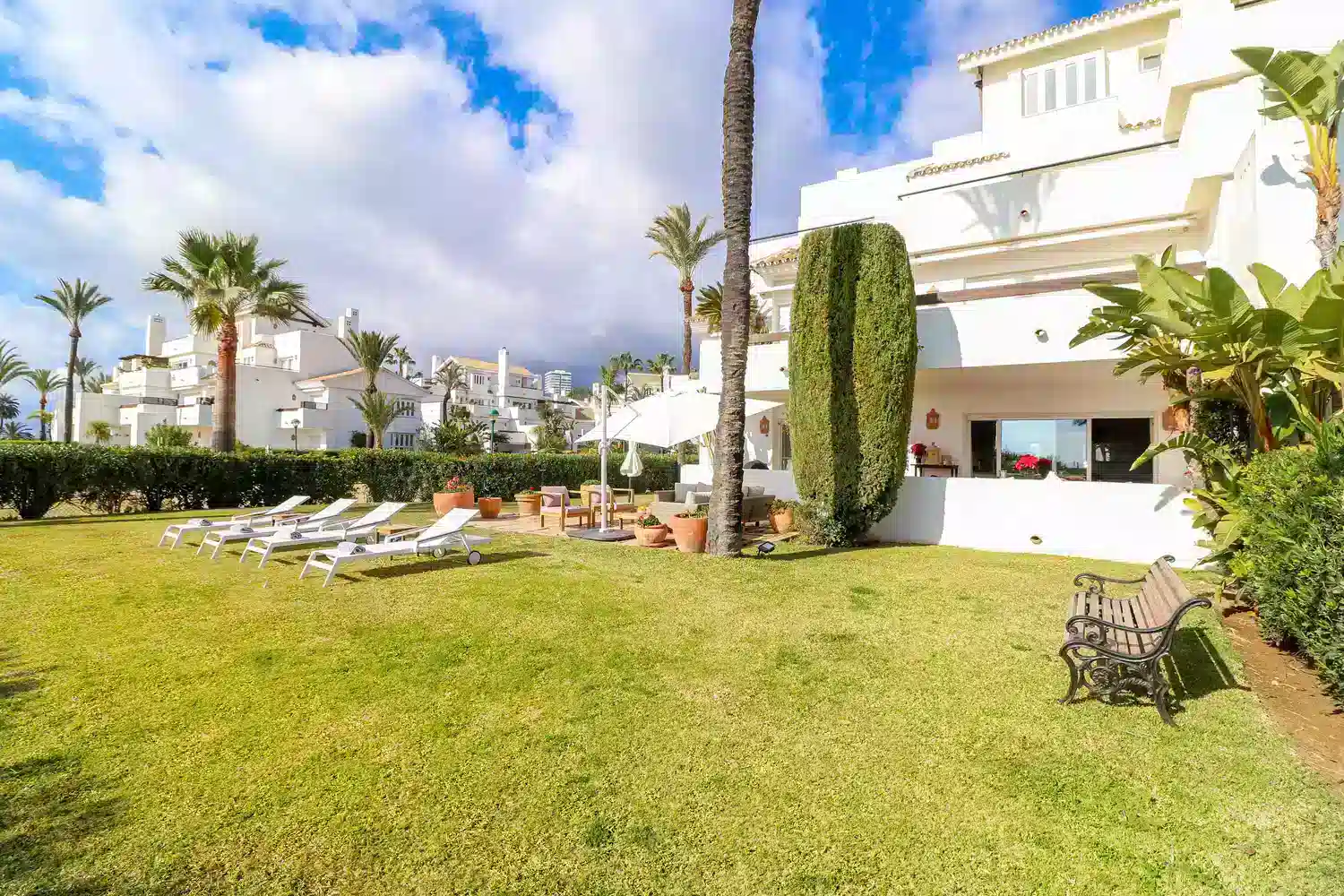 Apartamento espacioso y moderno que ofrece 3 hermosos dormitorios en suite con camas muy cómodas (tamaño super king) y una sala de estar bellamente decorada con acceso a la terraza y un gran jardín privado con muebles de exterior de alta calidad y magníficas vistas al mar.